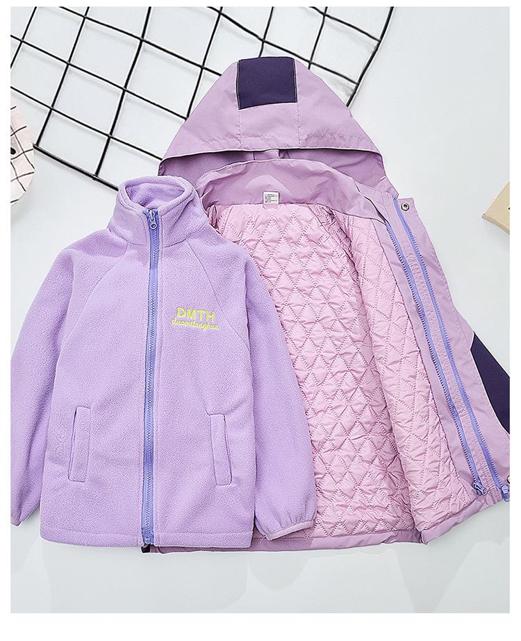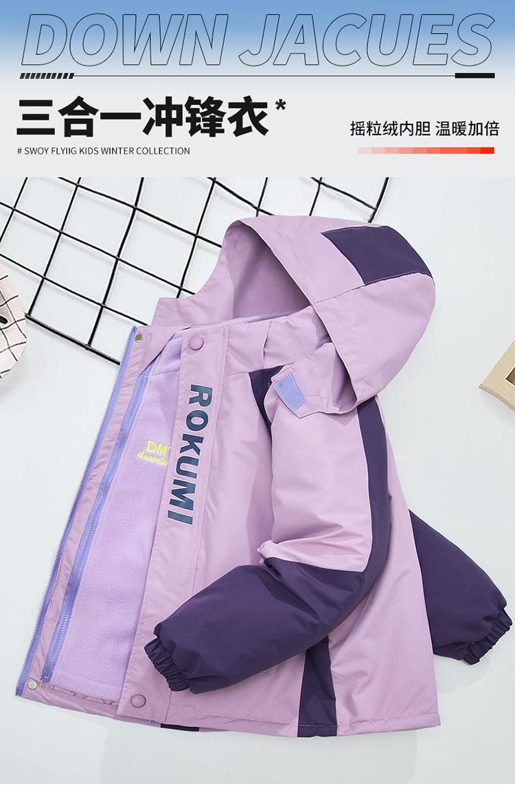 女童冲锋衣三合一可拆卸秋冬装新款加厚外套两件套装女大童加棉服