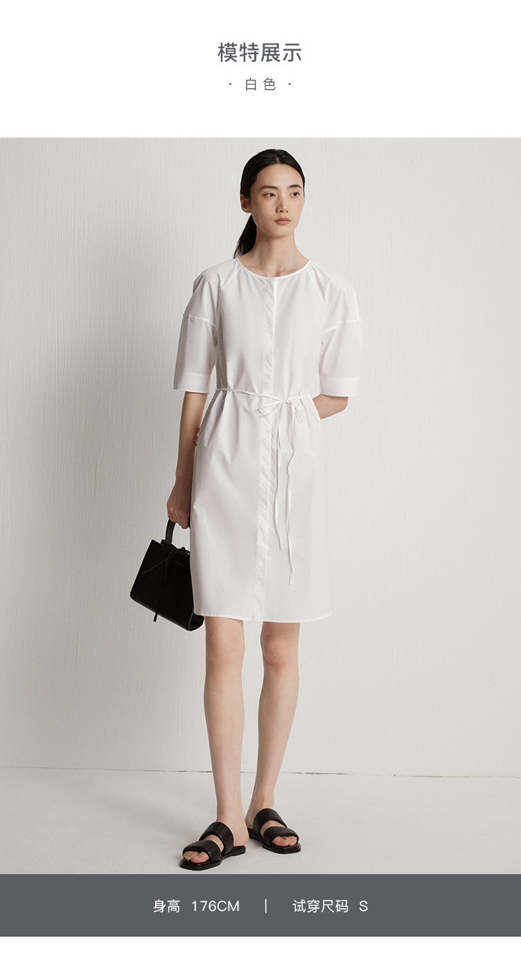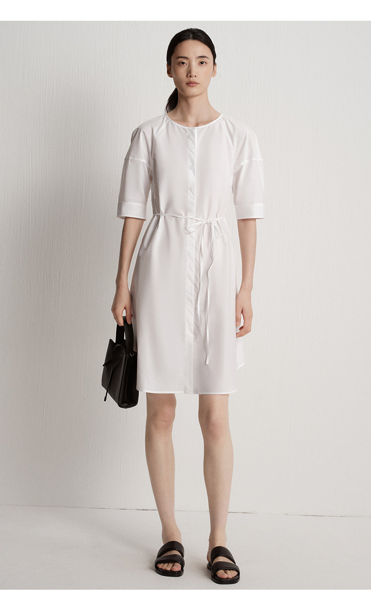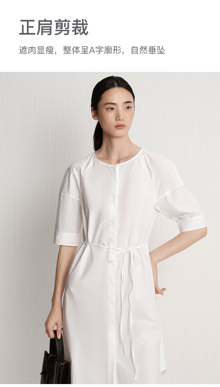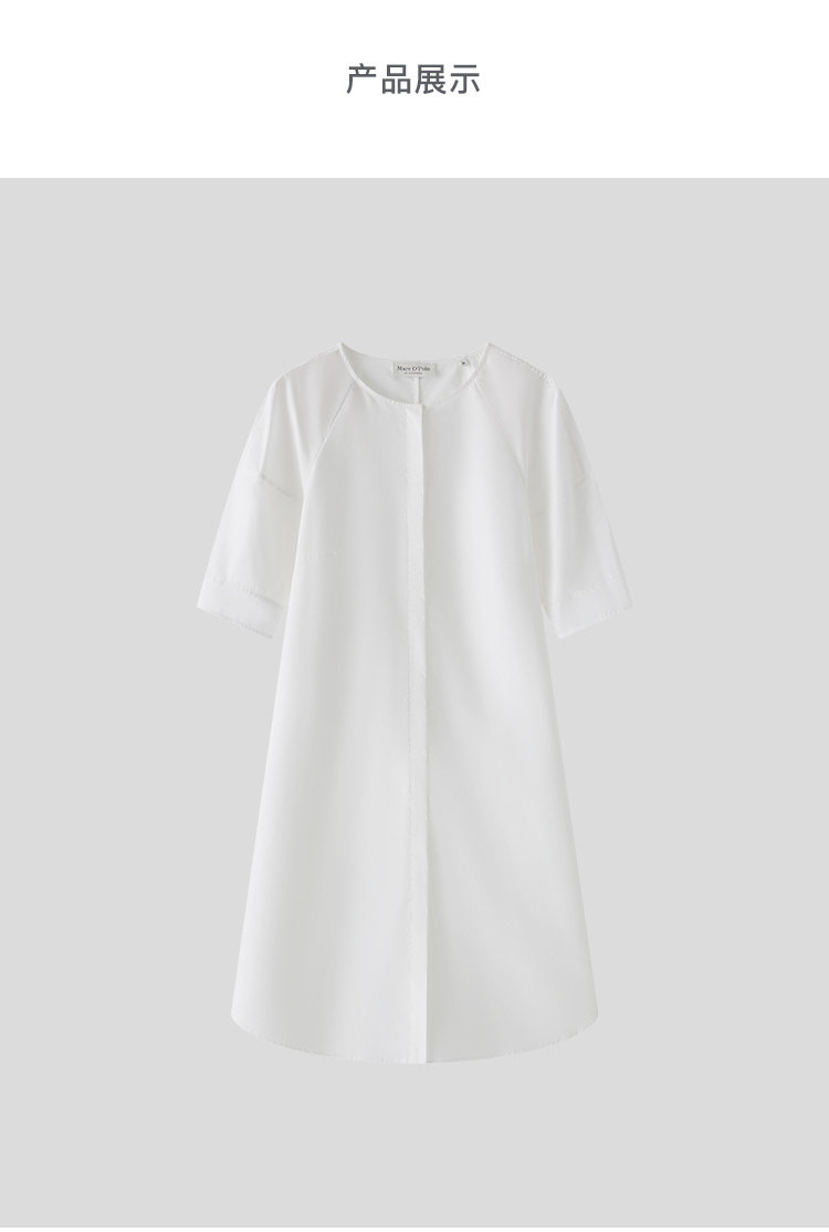 Marc O'Polo/MOP夏季新款好看白色圆领时尚设计廓形七分袖连衣裙