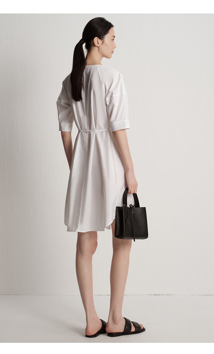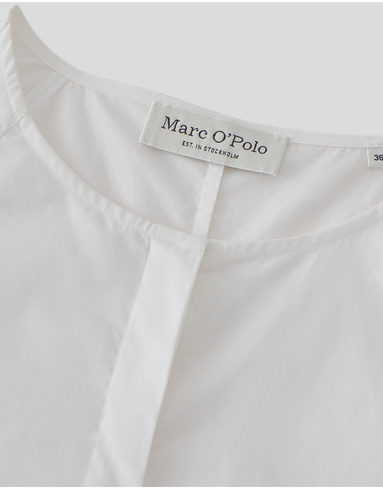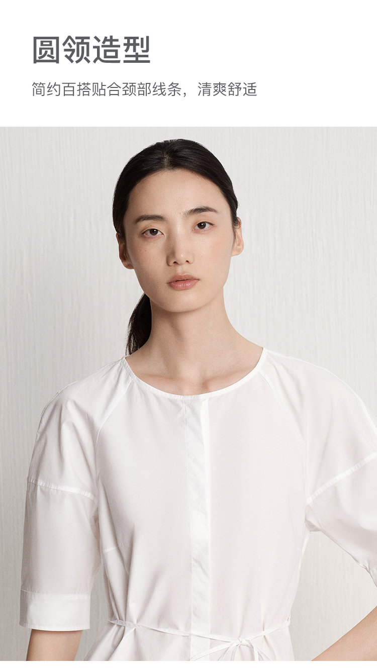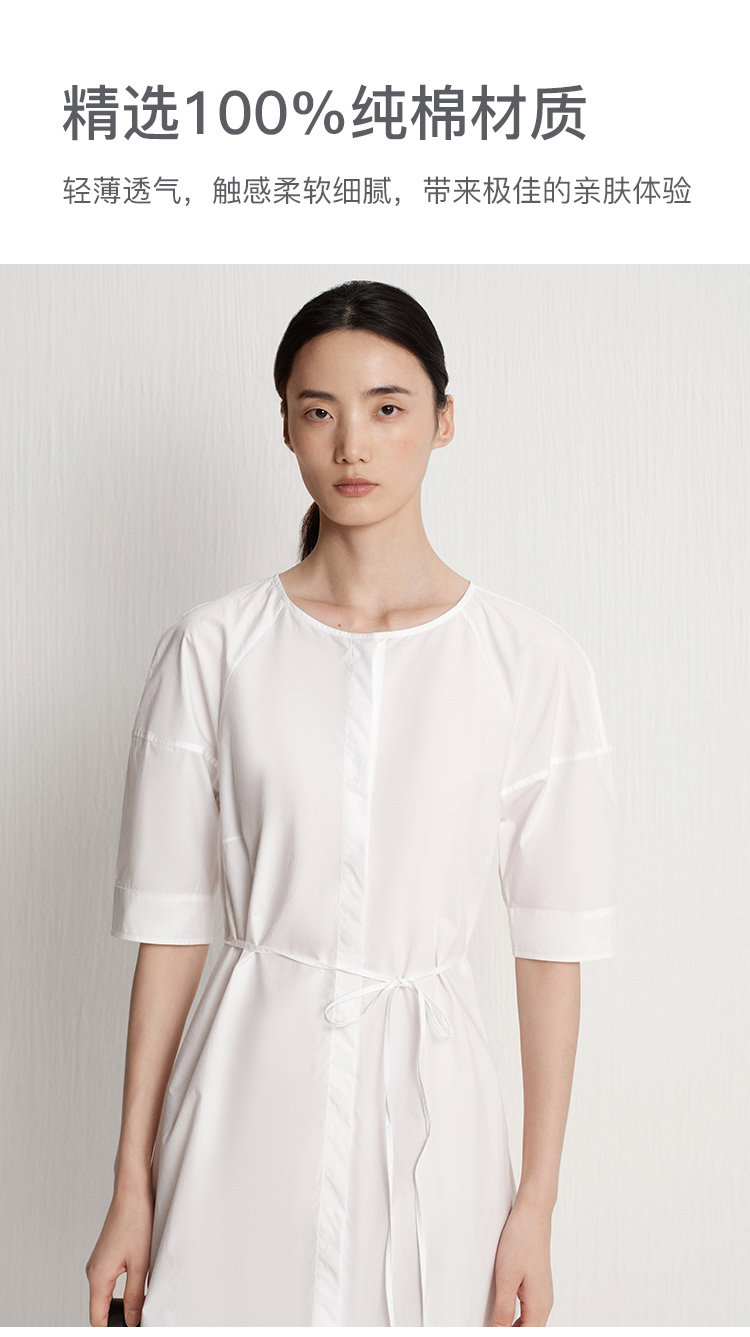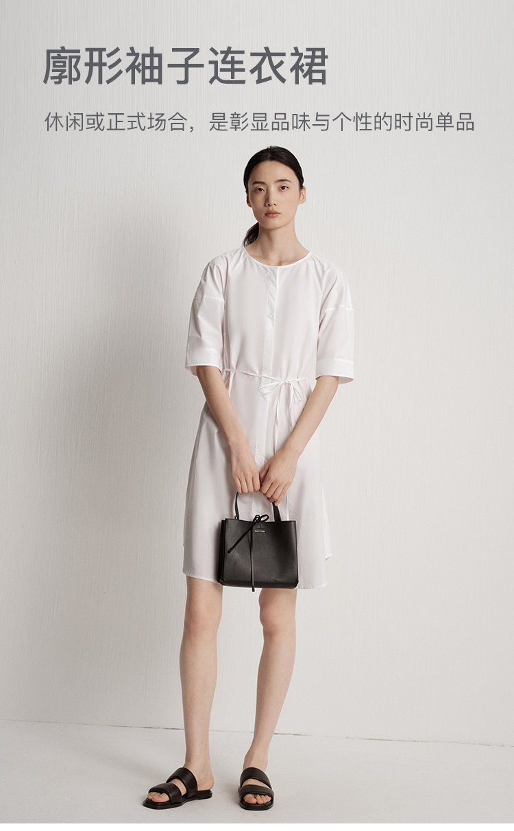 Marc O'Polo/MOP夏季新款好看白色圆领时尚设计廓形七分袖连衣裙