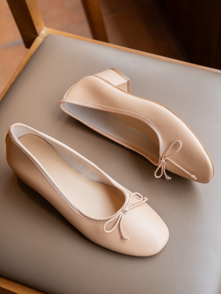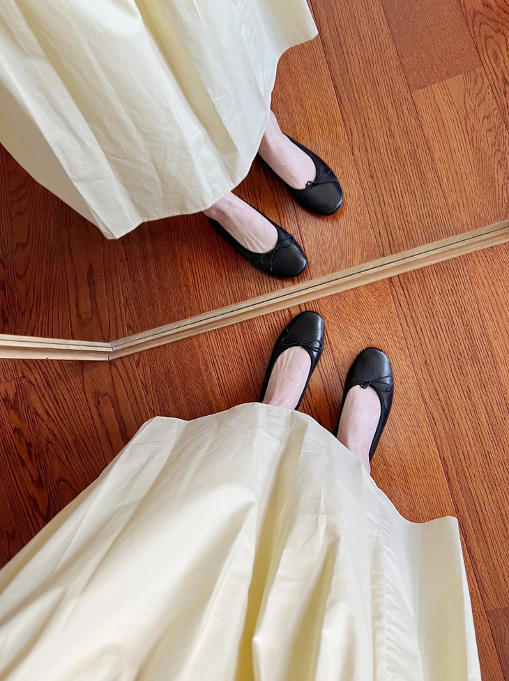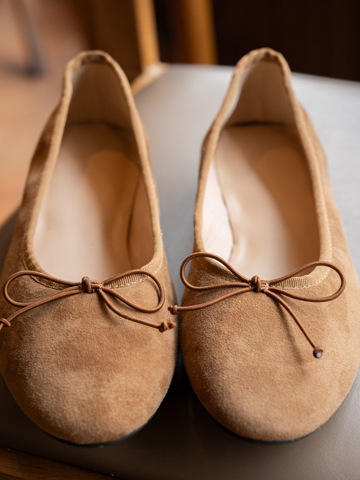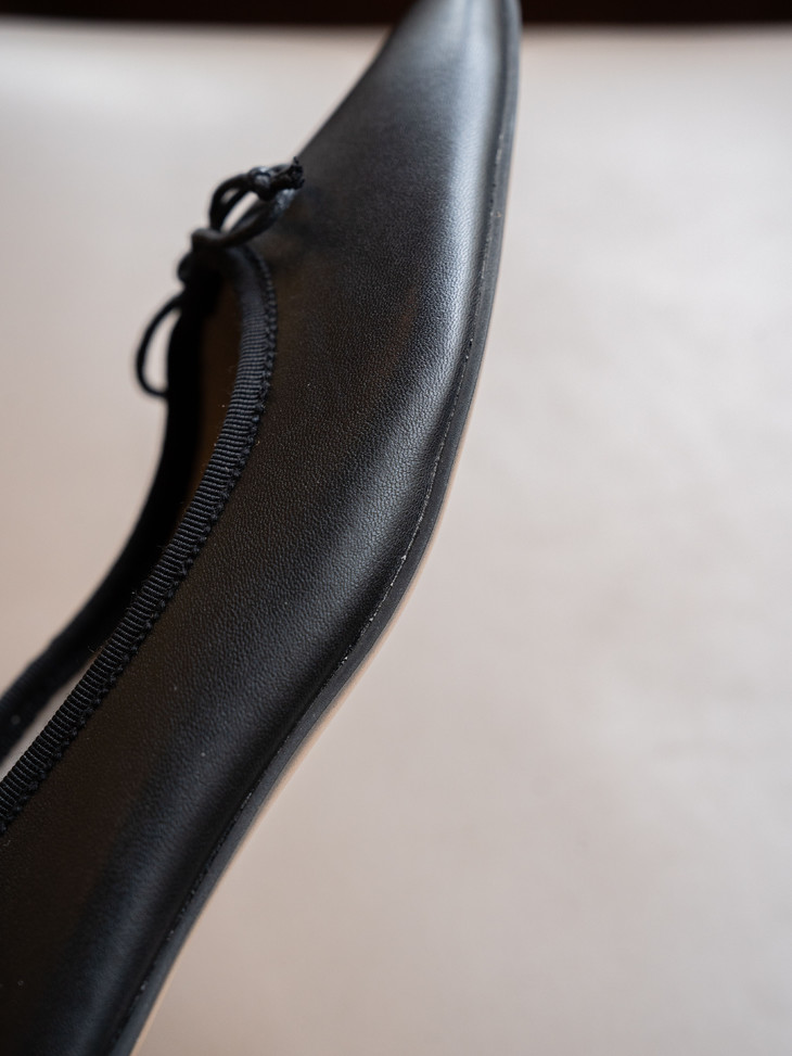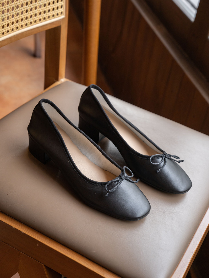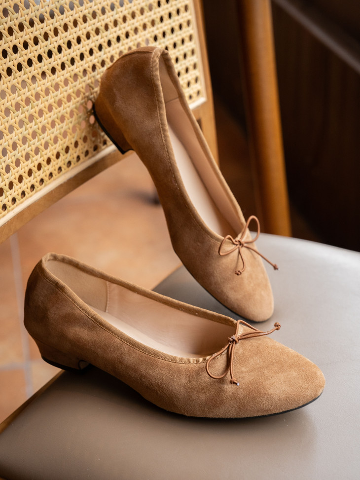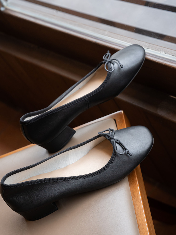 圆润又有点修长的鞋头 打上甜美的蝴蝶结! 既灵动秀气又可爱!奶乎乎的! 鞋面用的是羊皮 质感贼好,细腻有光泽!
