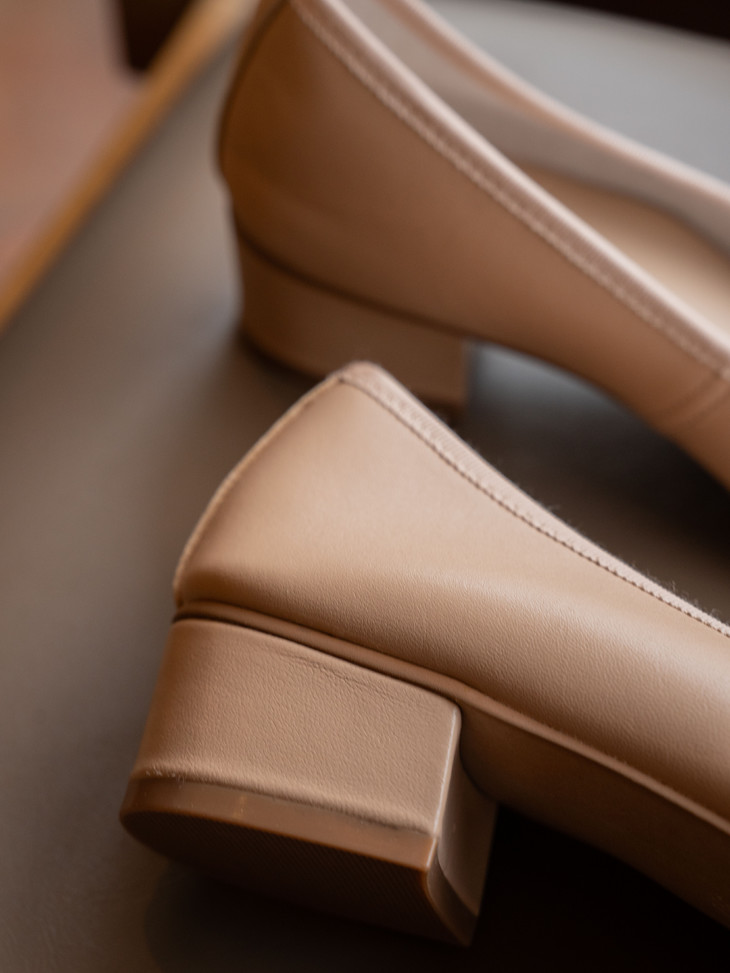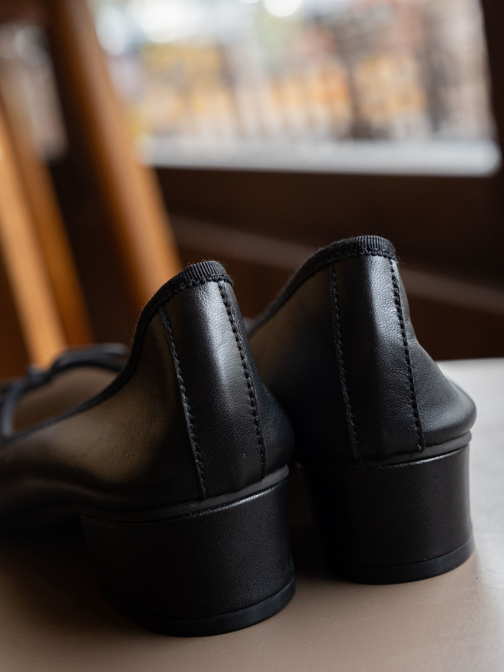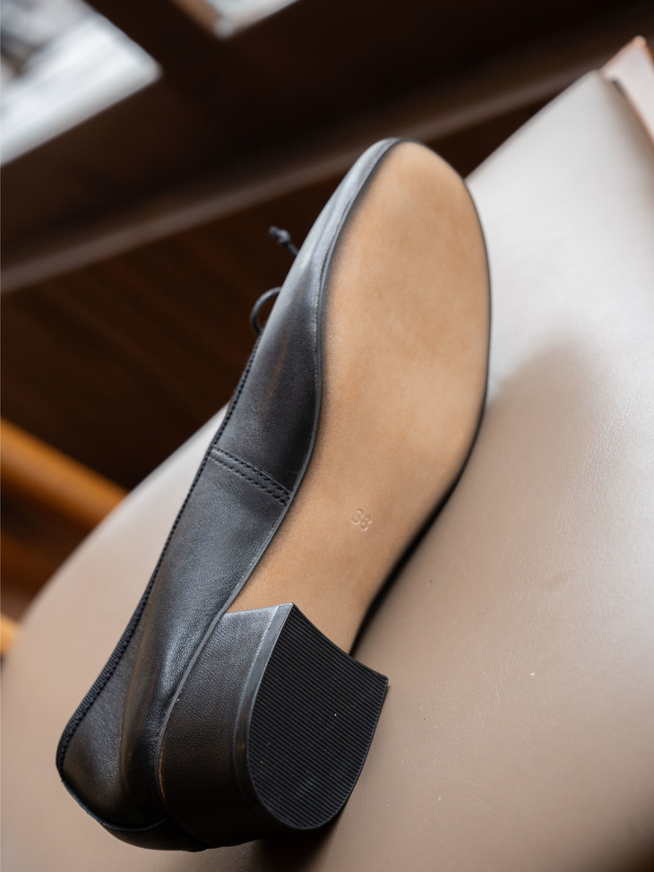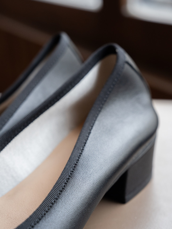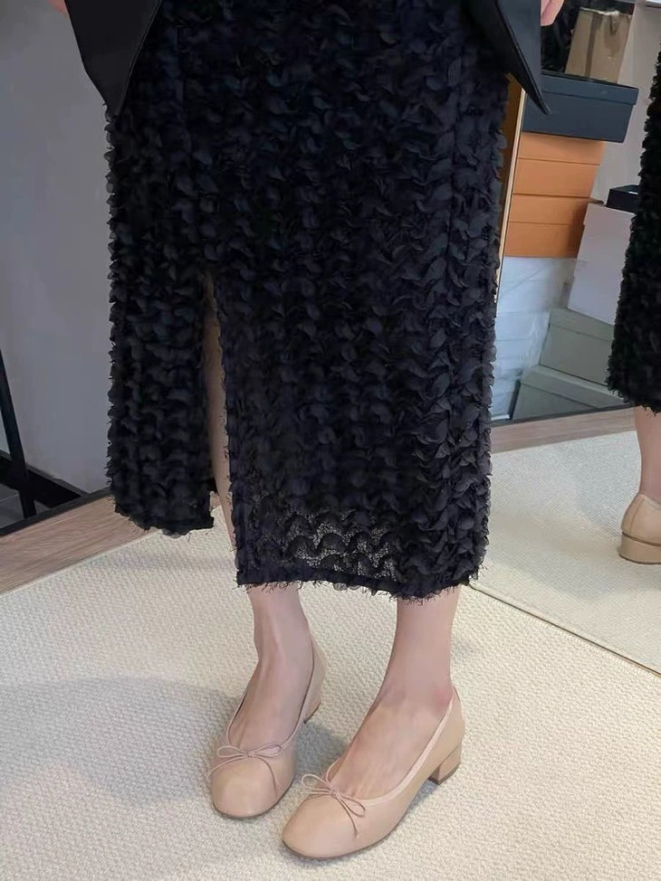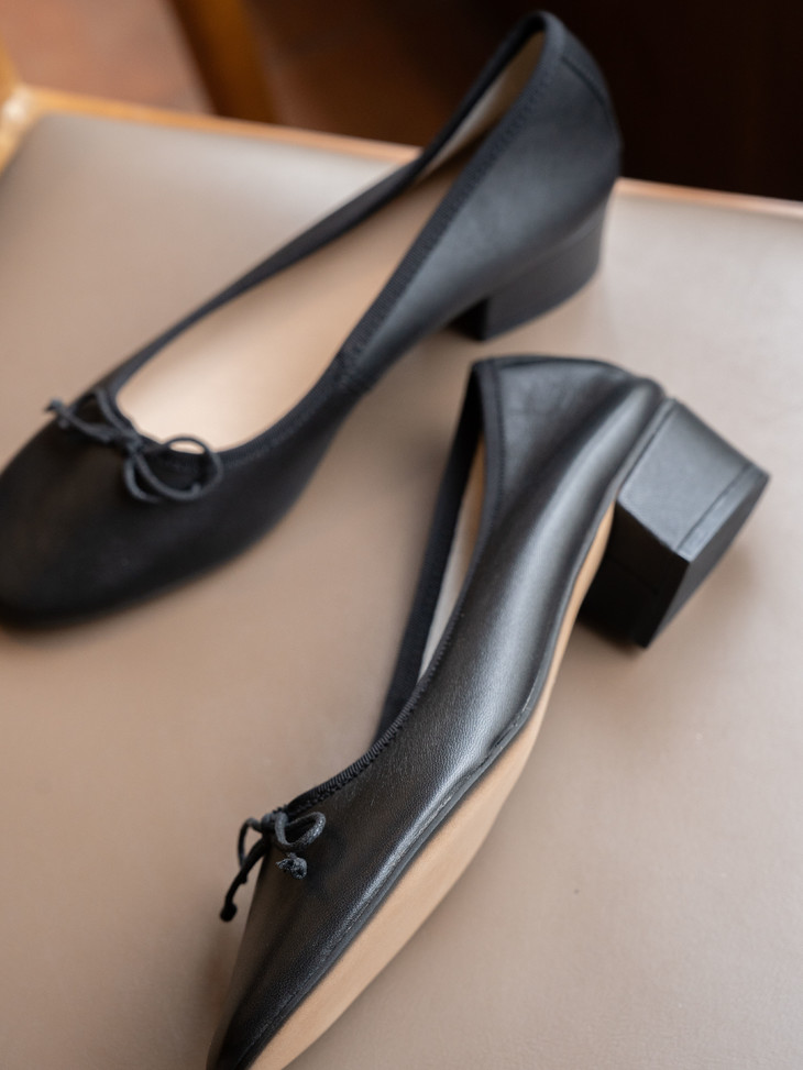 圆润又有点修长的鞋头 打上甜美的蝴蝶结! 既灵动秀气又可爱!奶乎乎的! 鞋面用的是羊皮 质感贼好,细腻有光泽!