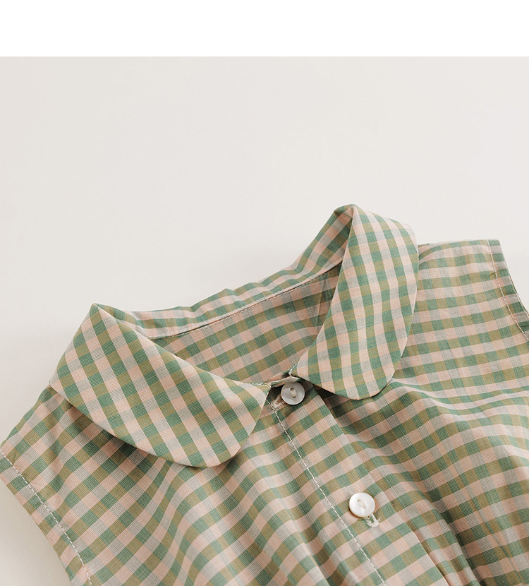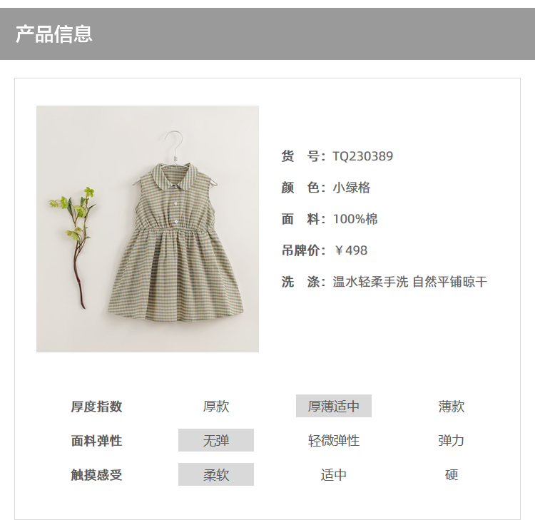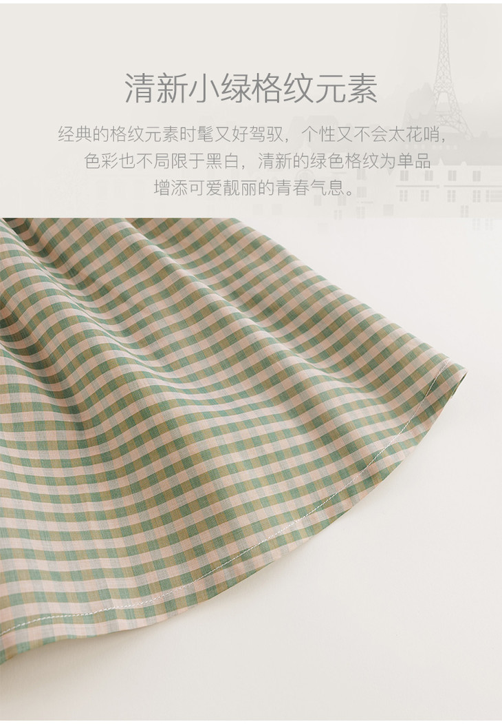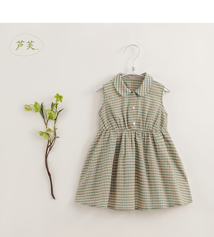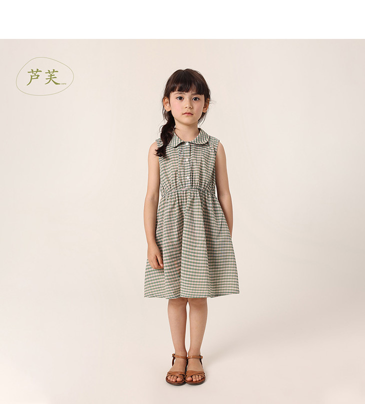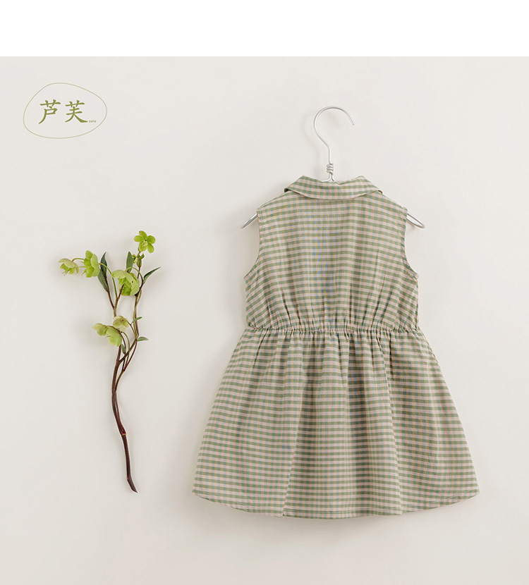 【马克珍妮 芦芙】夏装新款 女童小绿格无袖纯棉连衣裙230389