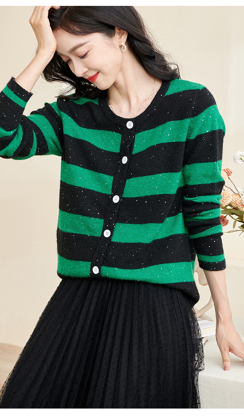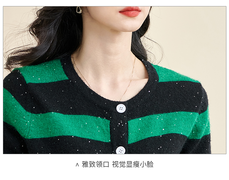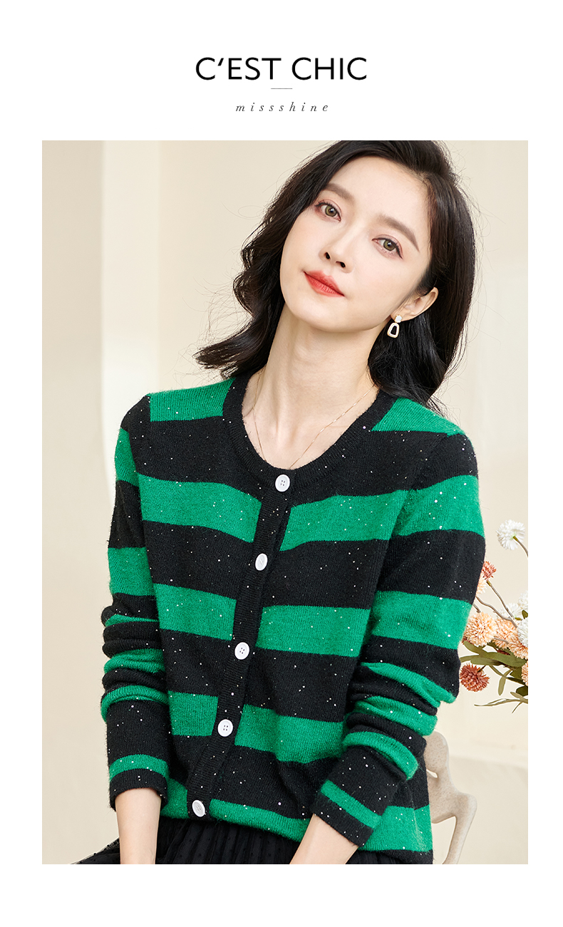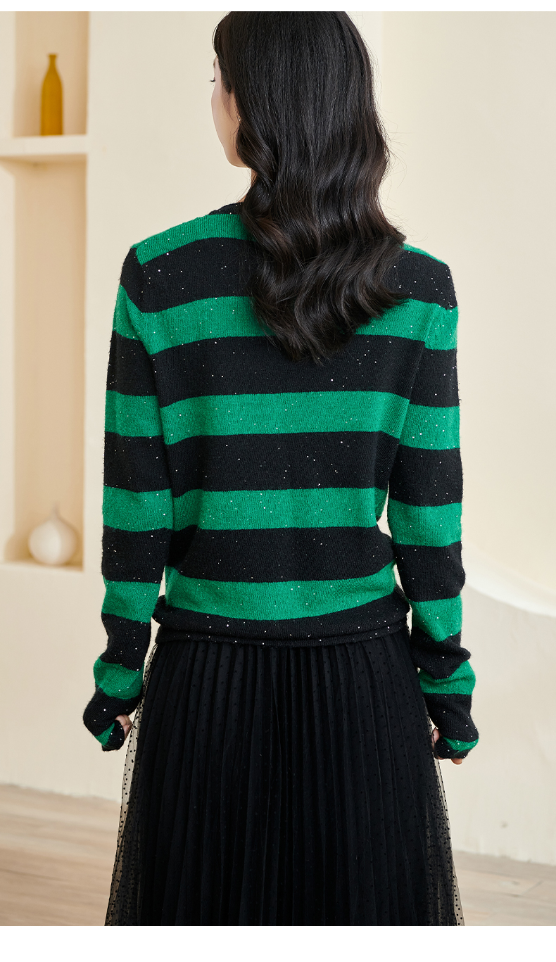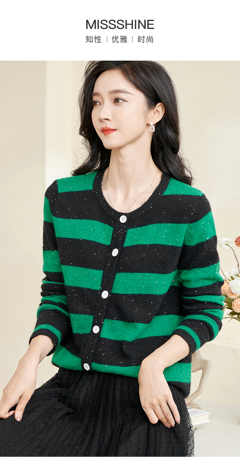 剩M 米思阳2025春季新款时尚撞色条纹上衣通勤百搭宽松女式针织衫3288