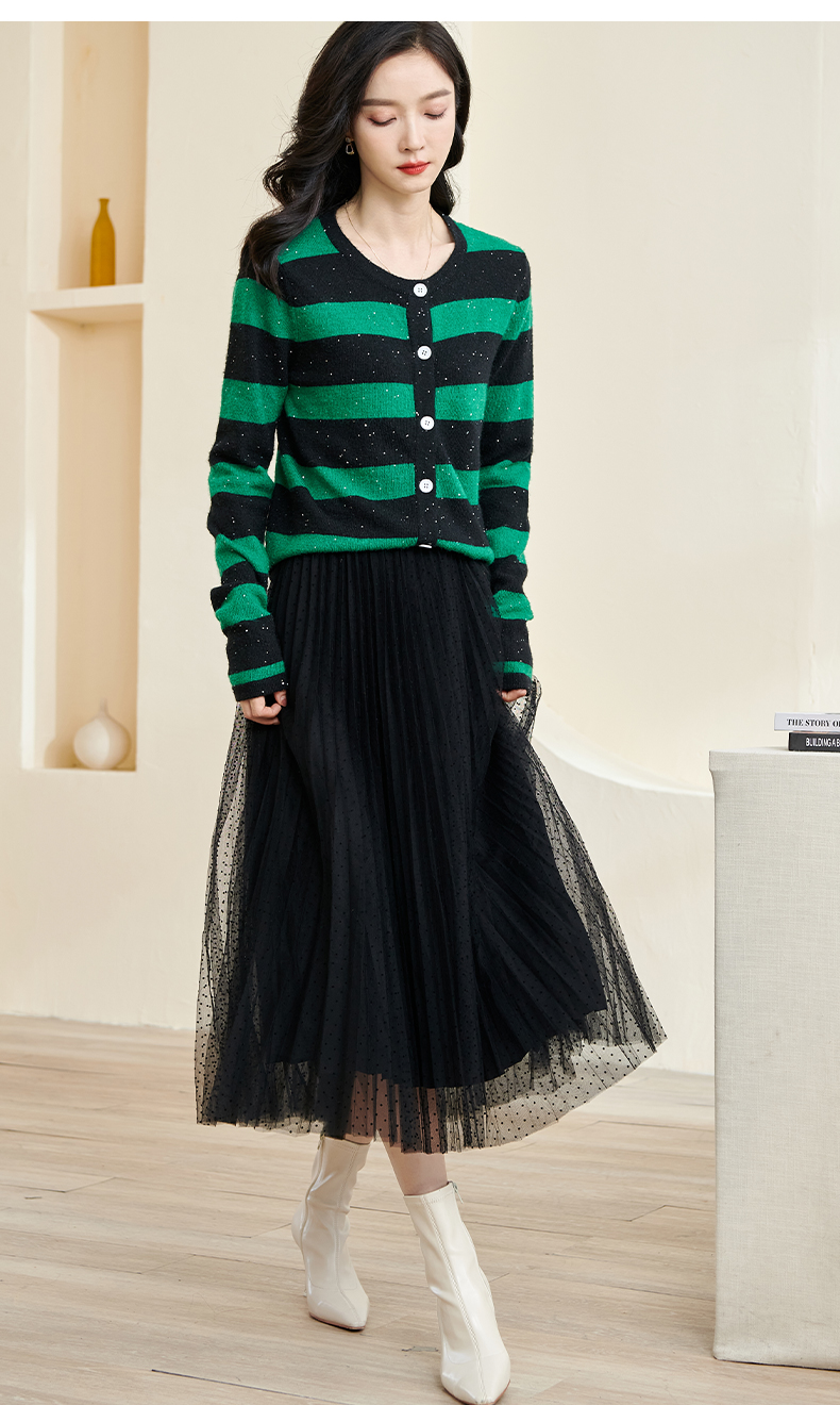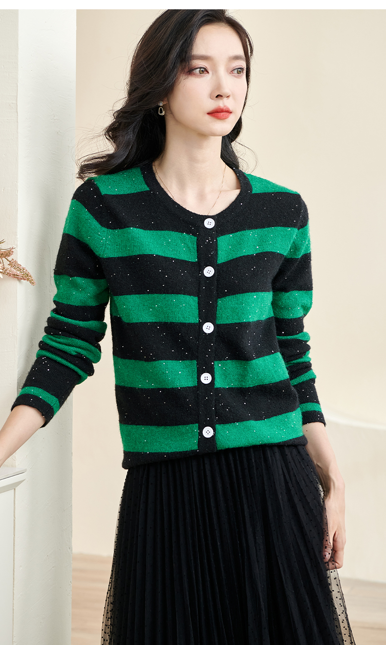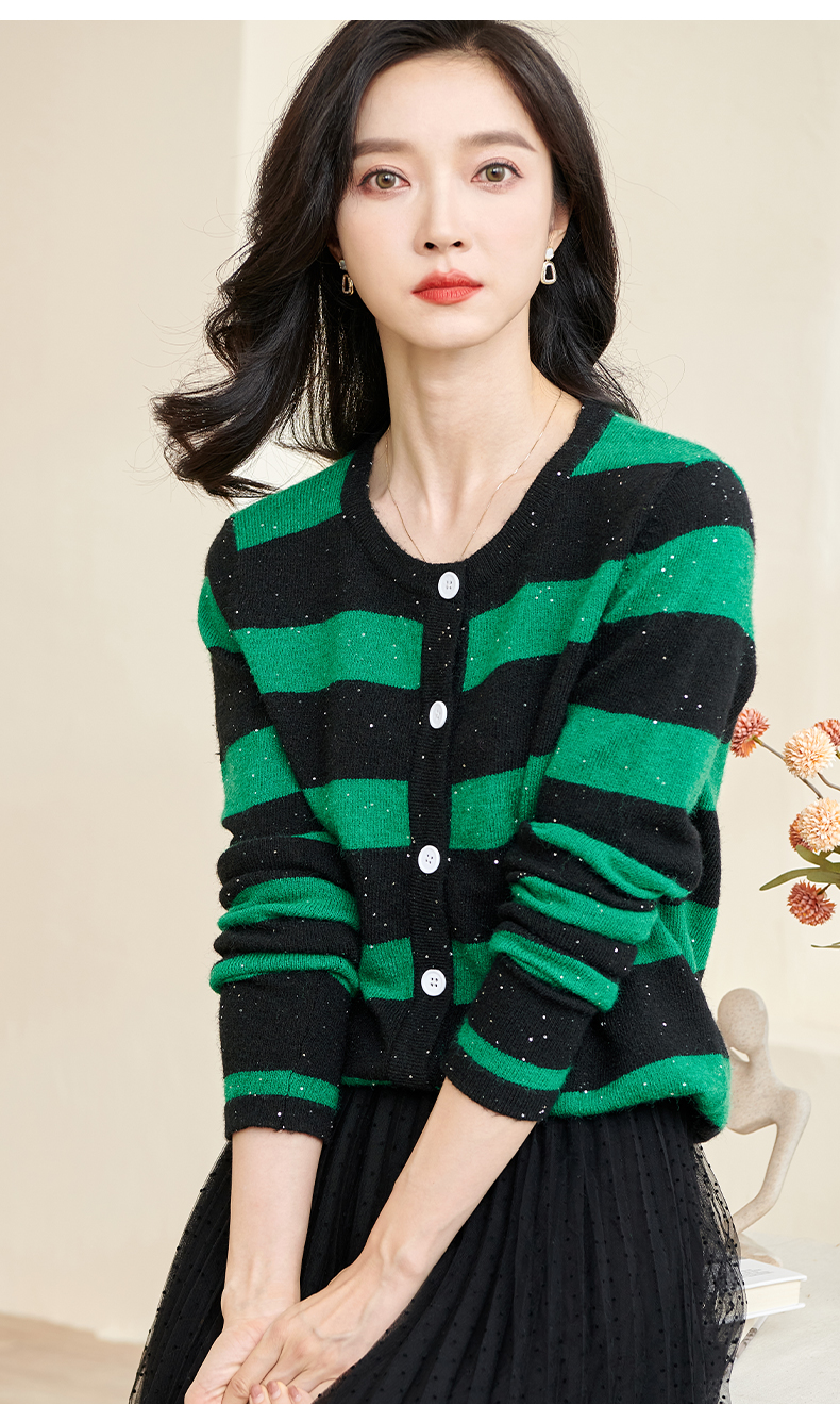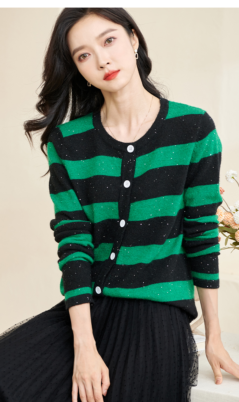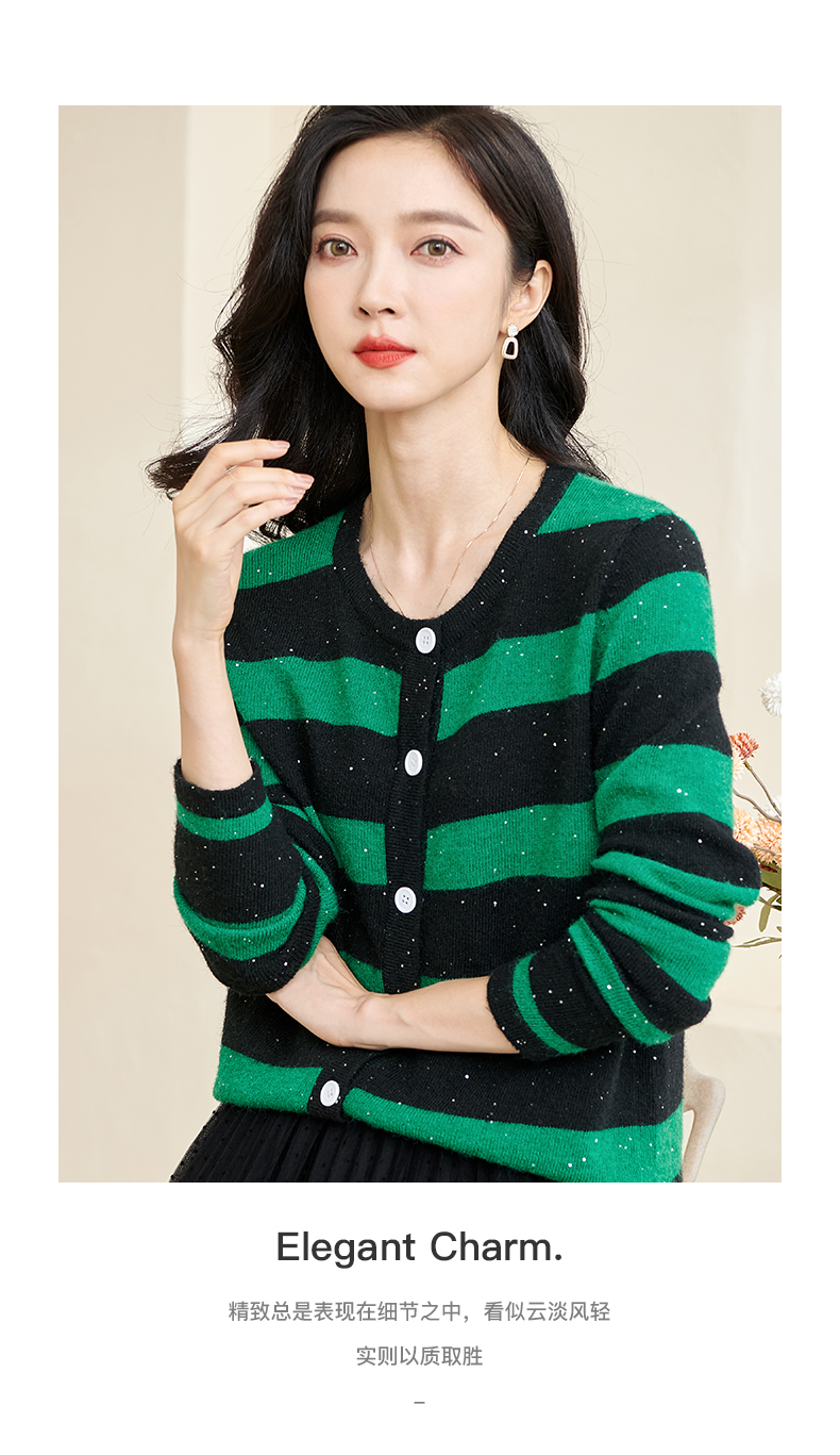 剩M 米思阳2025春季新款时尚撞色条纹上衣通勤百搭宽松女式针织衫3288