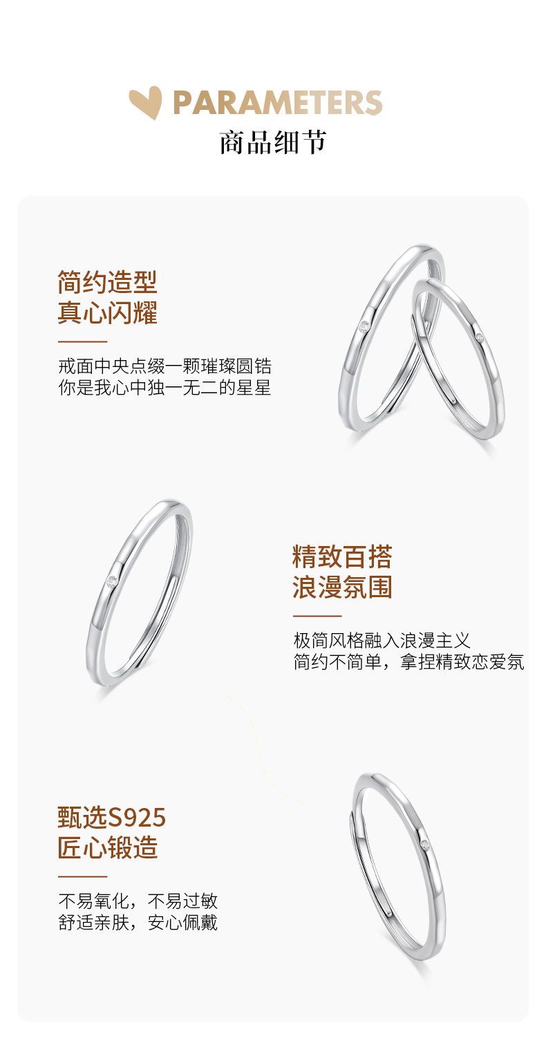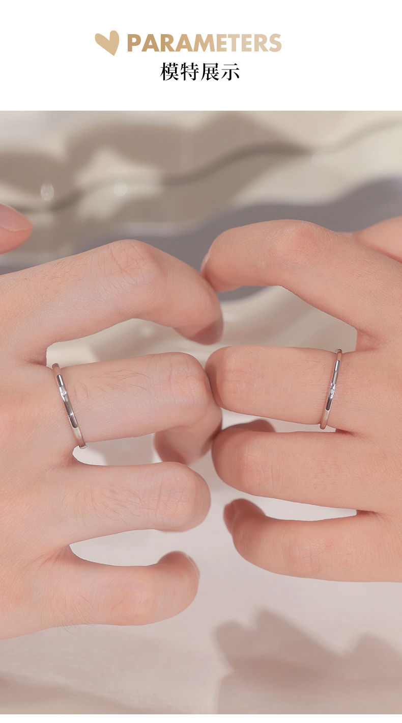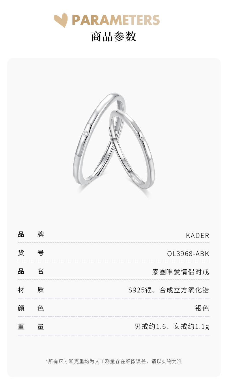 卡蒂罗KADER 素圈唯爱情侣对戒 925银极简风经典百搭大气开口可调节设计表白纪念日 闪耀吸睛甜蜜饰爱