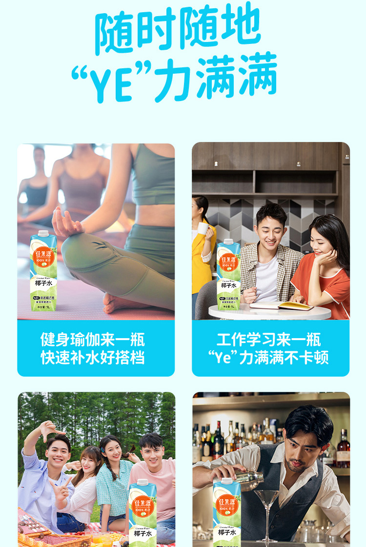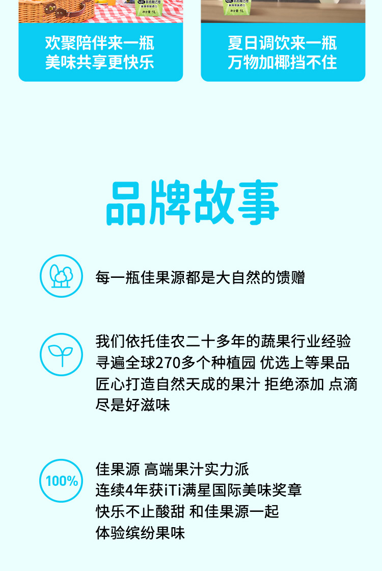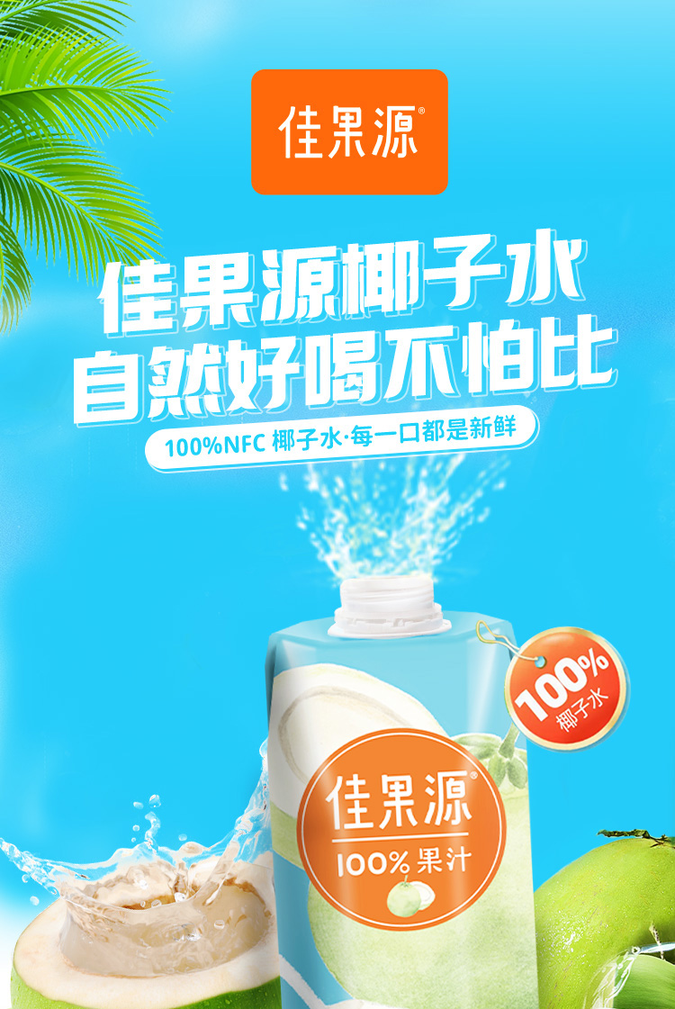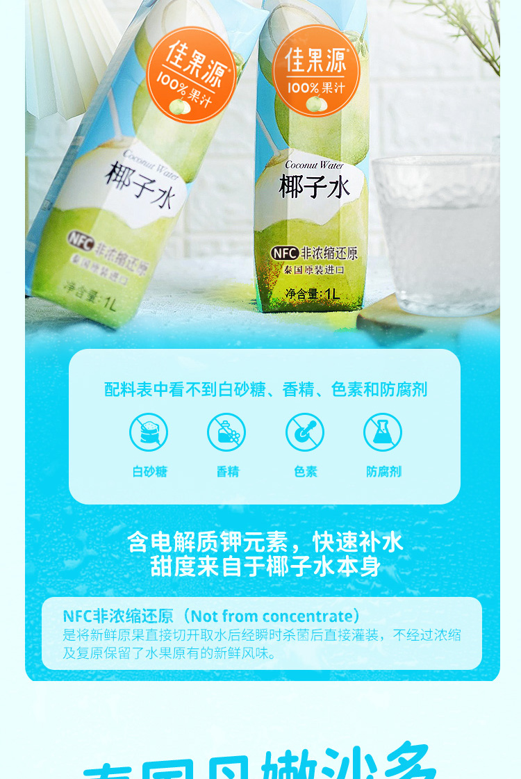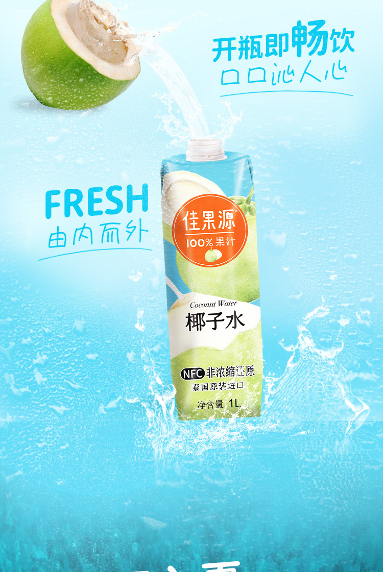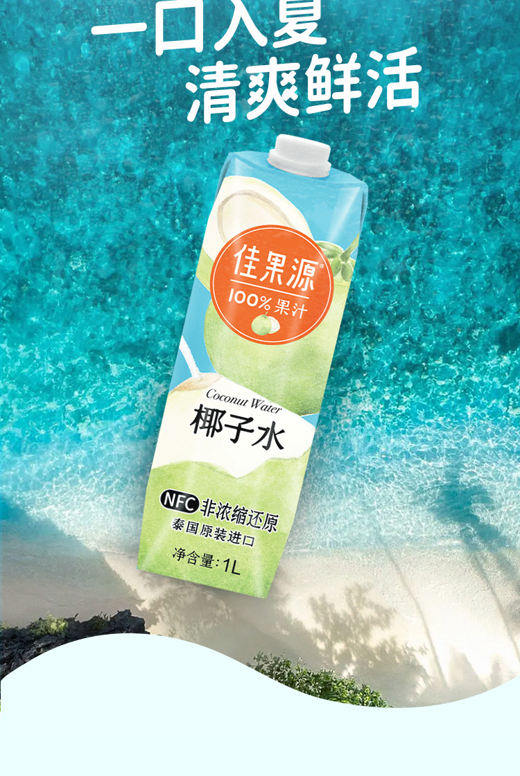 佳果源泰国原装进口椰子水孕妇NFC饮料整箱大瓶装1L*4瓶