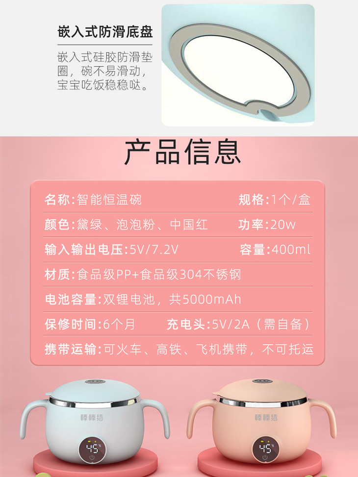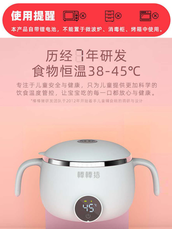 (超值)棒棒猪宝宝45°C智能恒温碗儿童餐具辅食碗吃饭保温防摔防烫防水