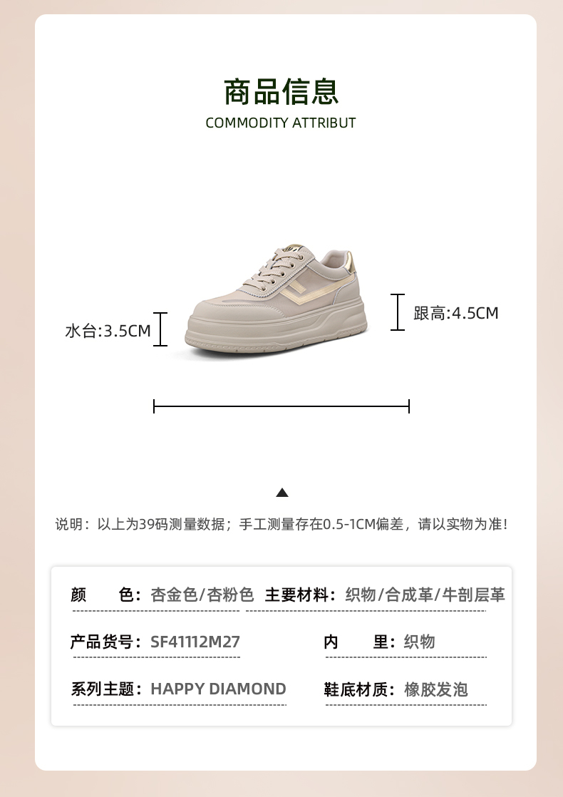 Safiya/索菲娅2024春夏潮流拼色网面透气厚底休闲百搭运动板鞋 SF41112M27