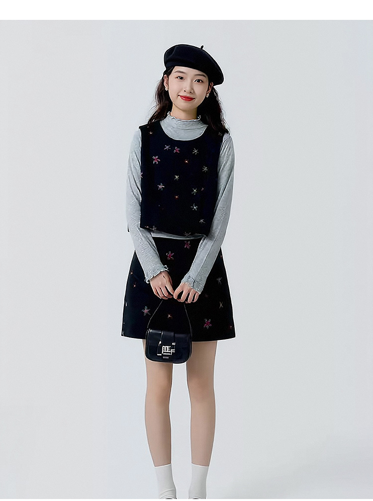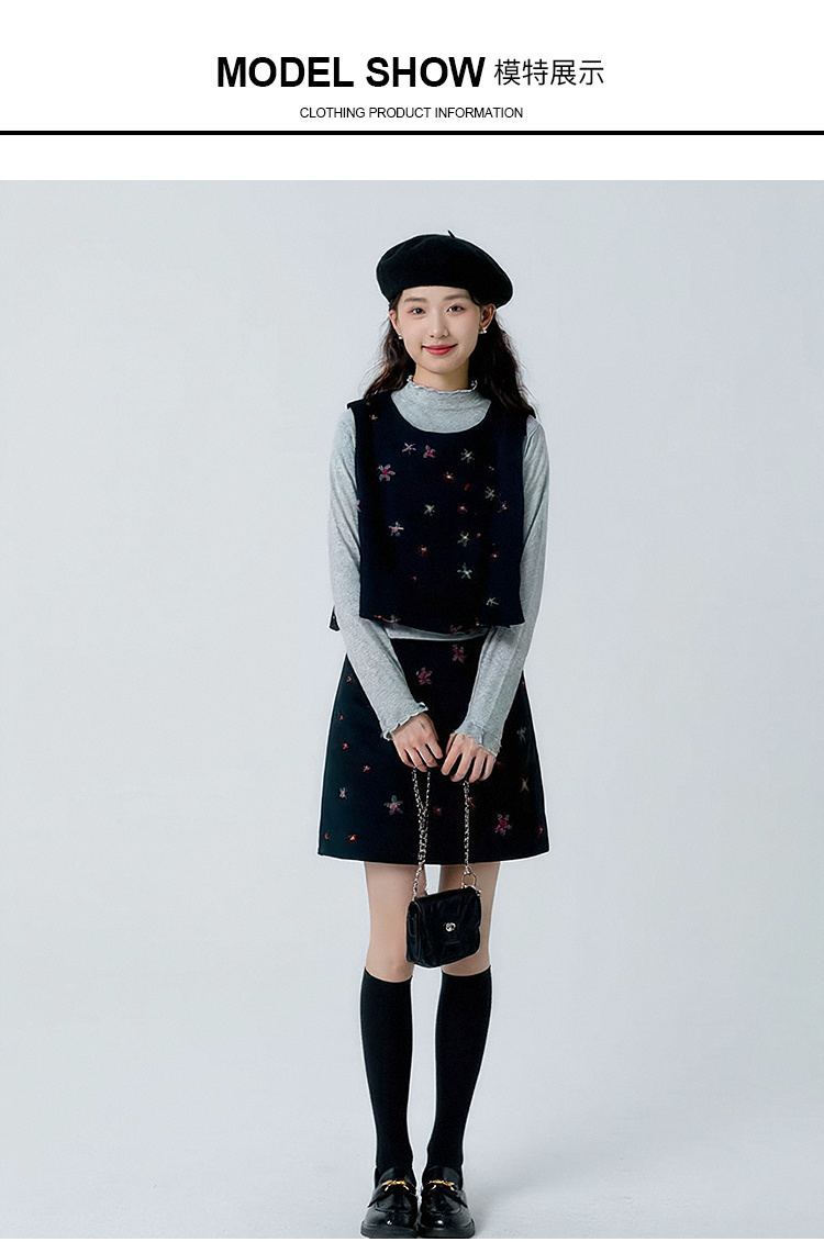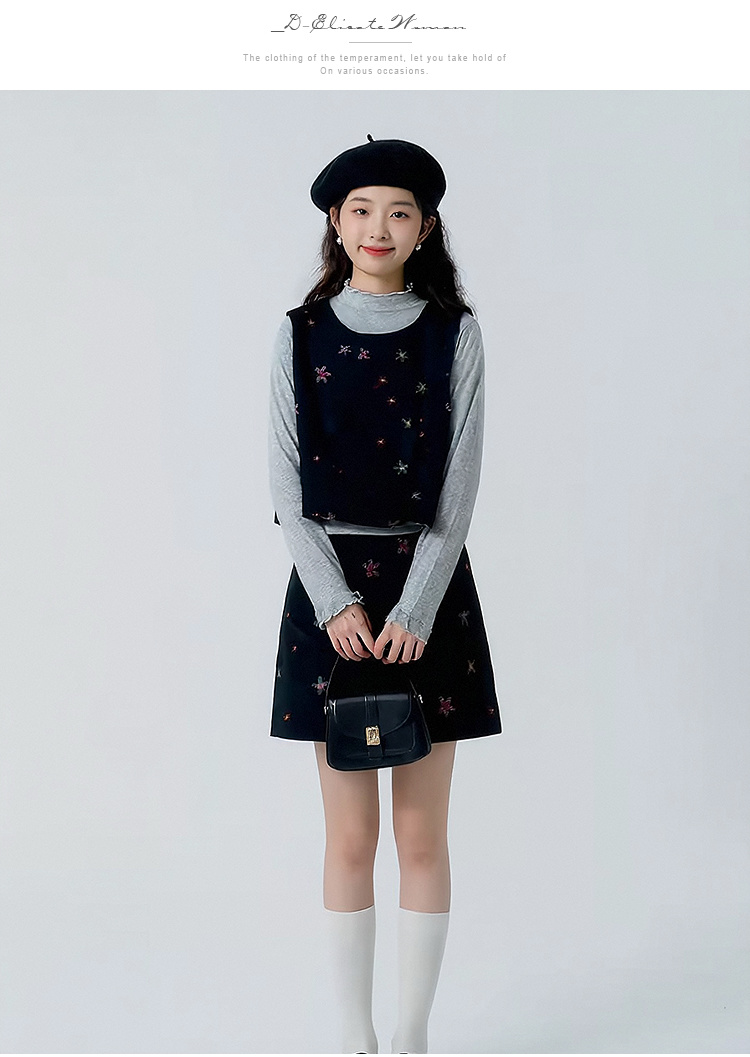 奢姿大码女装2026春季小花图案减龄三件套胖妹妹半高领时尚套装9961991196AB