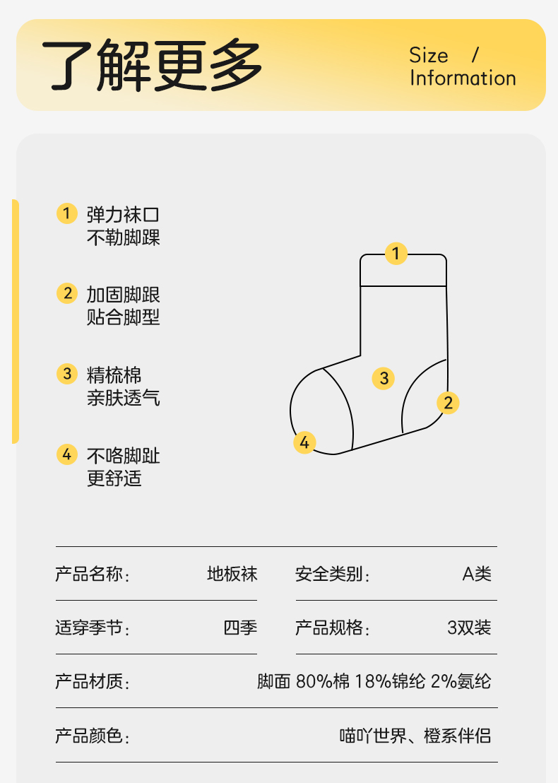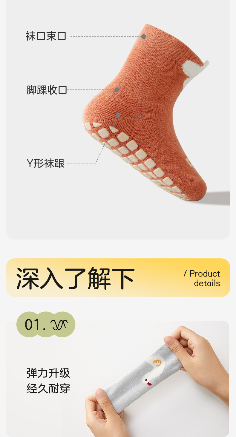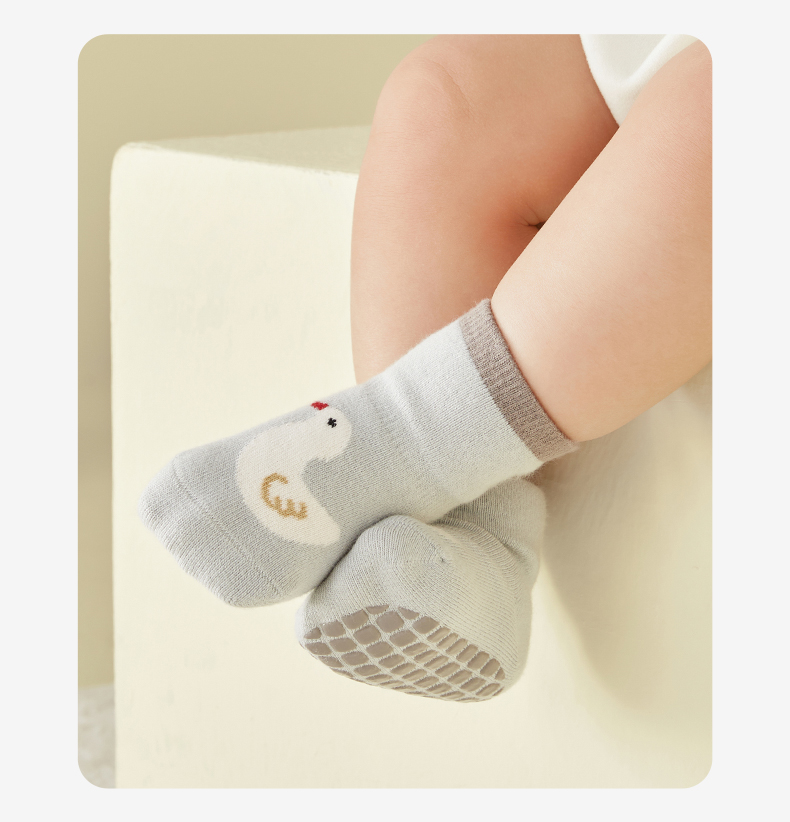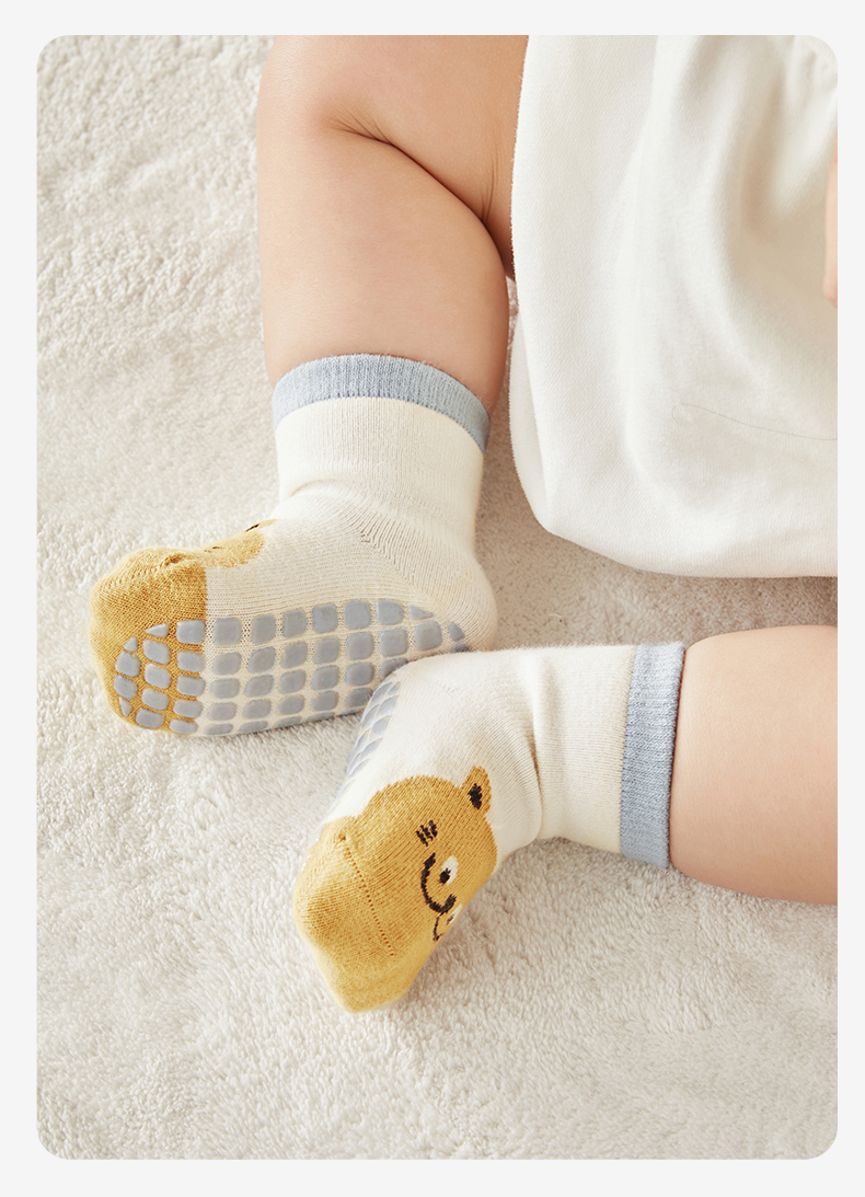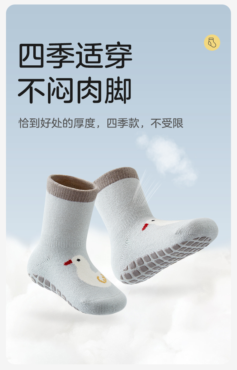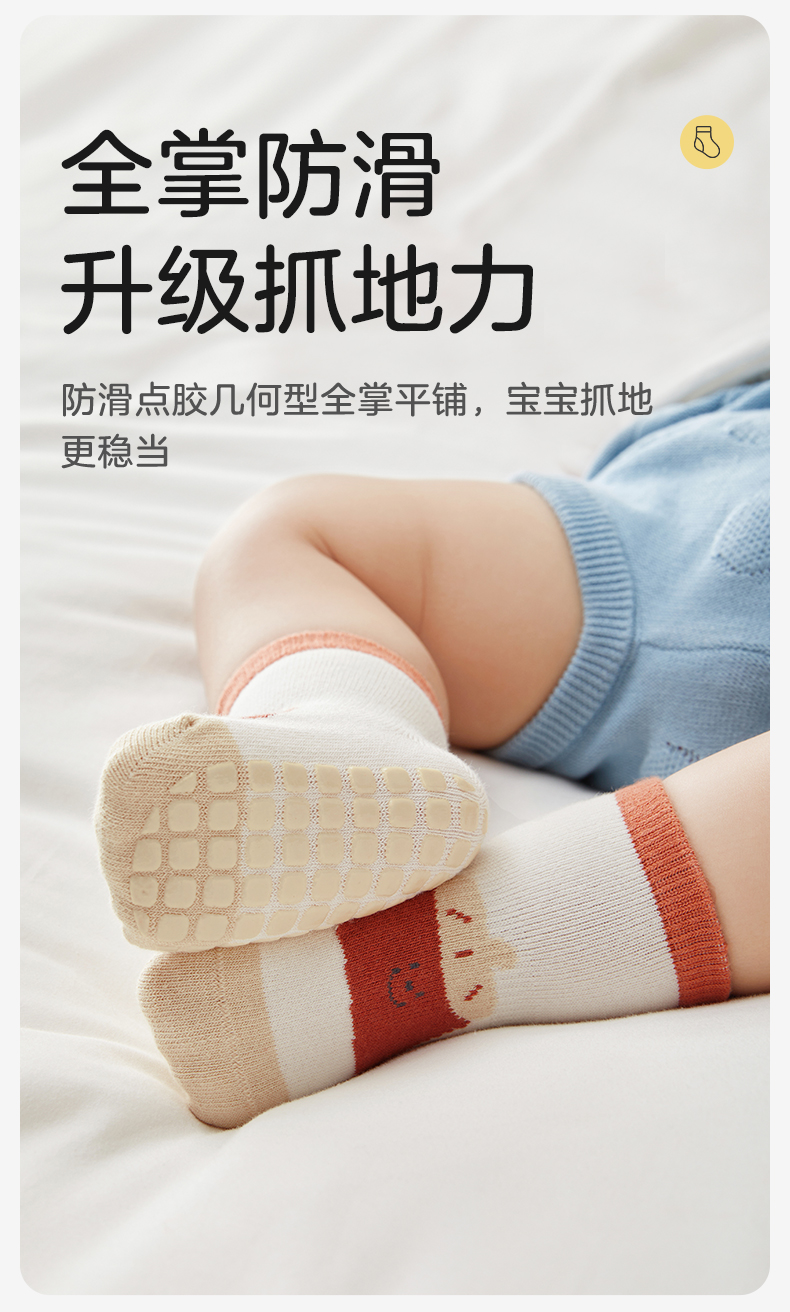 婴儿袜地板袜男女童春秋袜子新生宝宝棉袜防滑学步袜3双