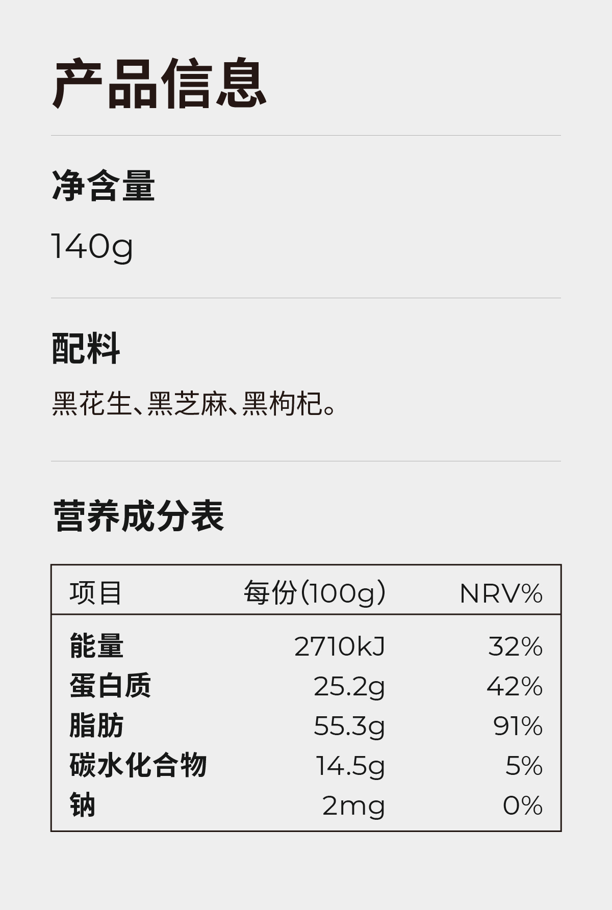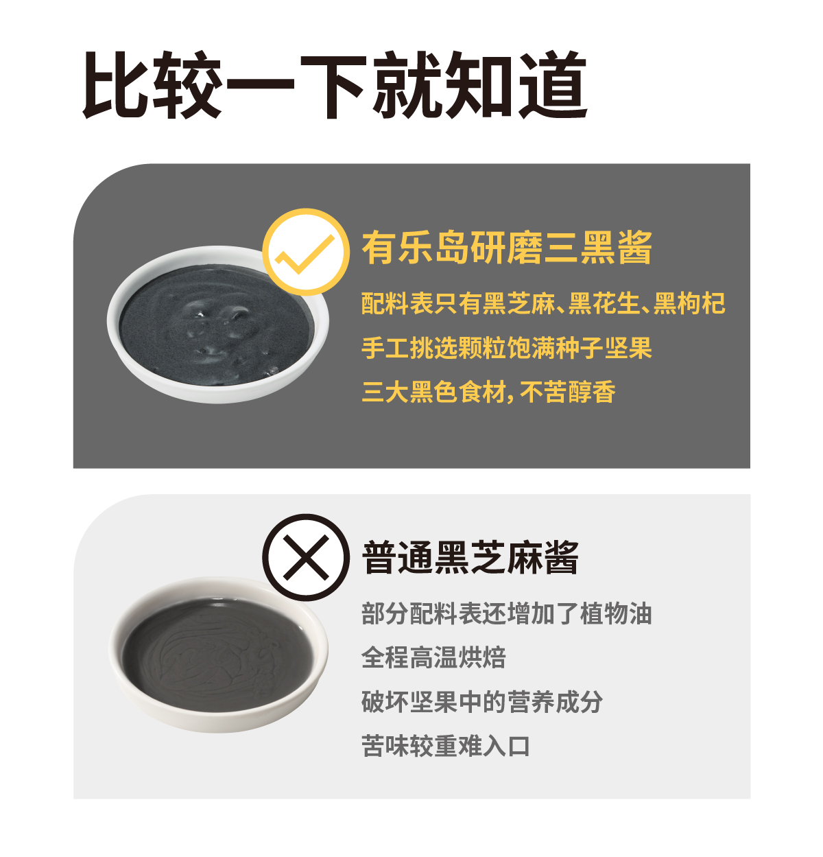 有乐岛 研磨三黑酱140g 配料表只有黑芝麻黑枸杞黑花生 低温研磨 入口不苦 72小时发货
