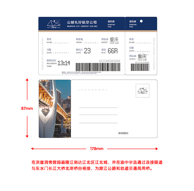 山城机票明信片一张/明信片/重庆原创伴手礼/旅游纪念品