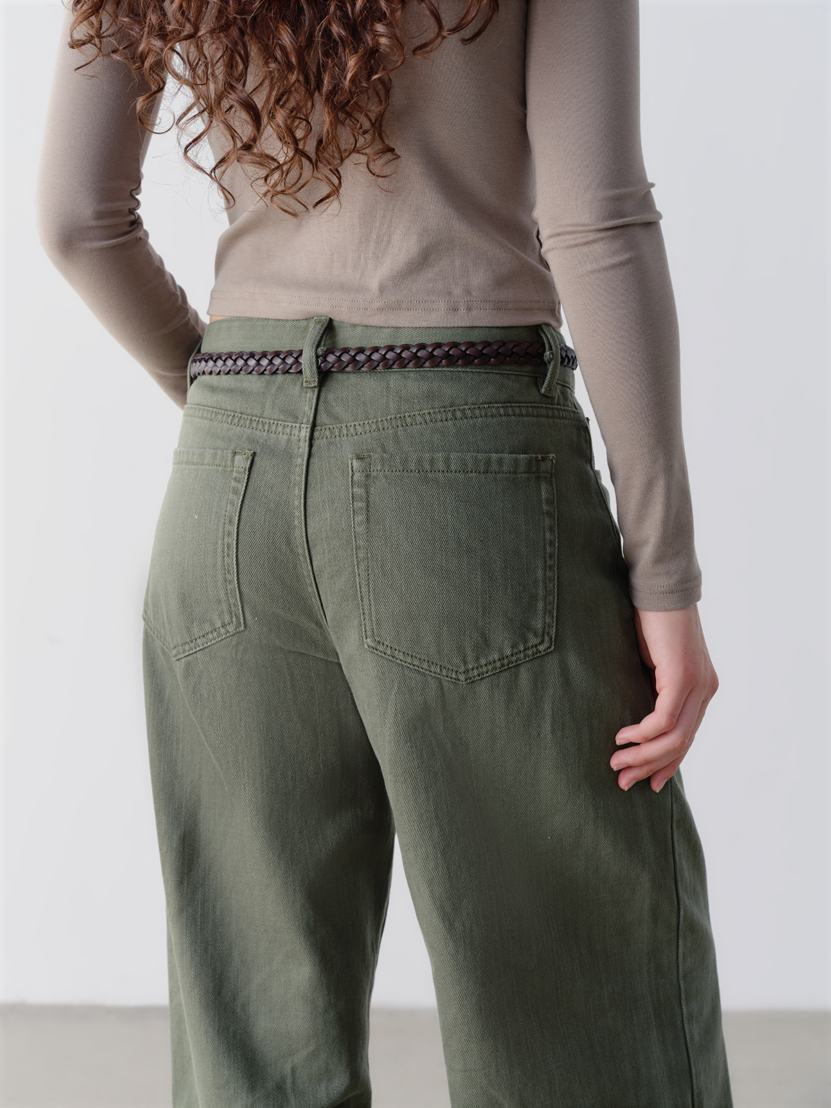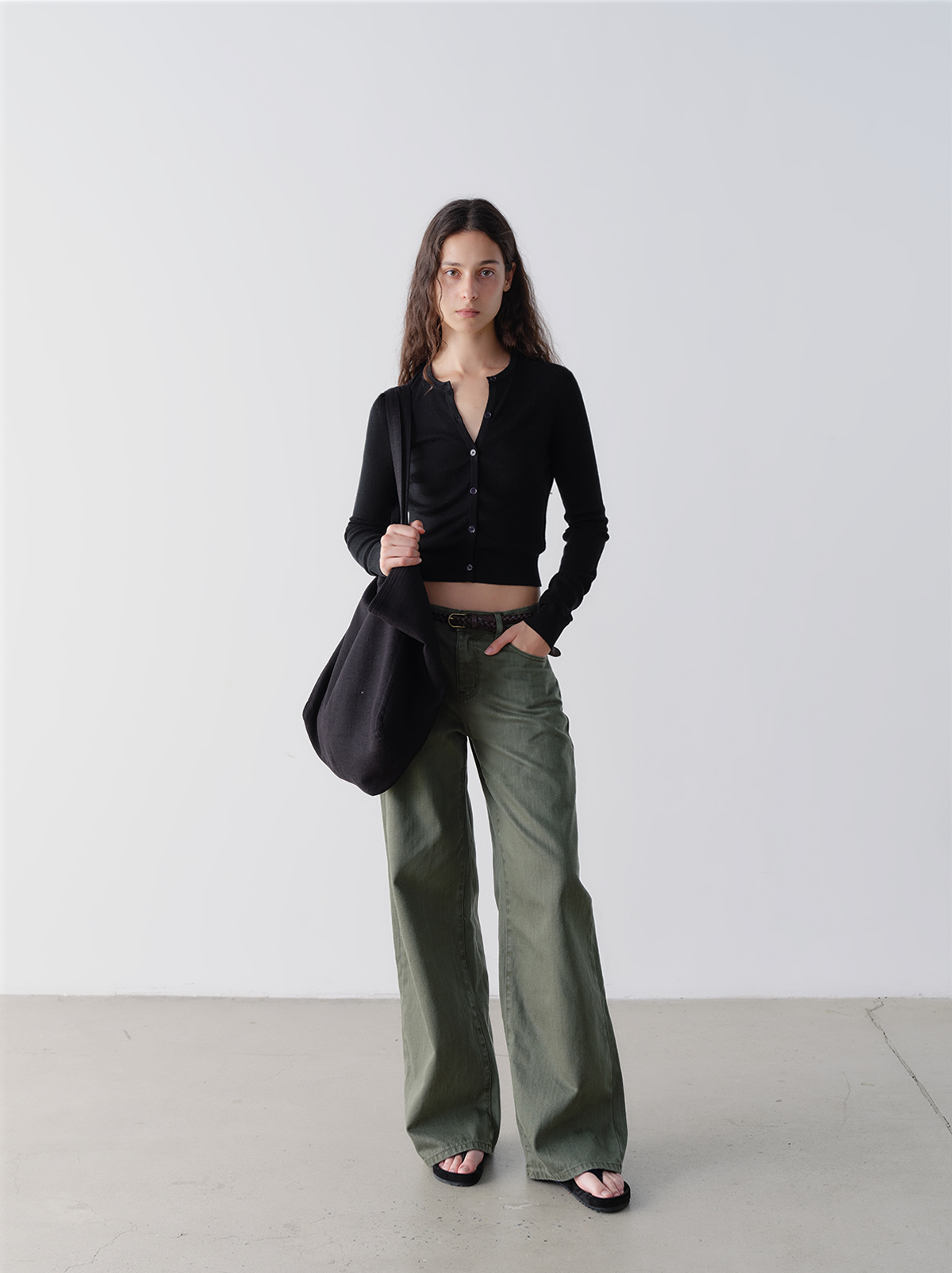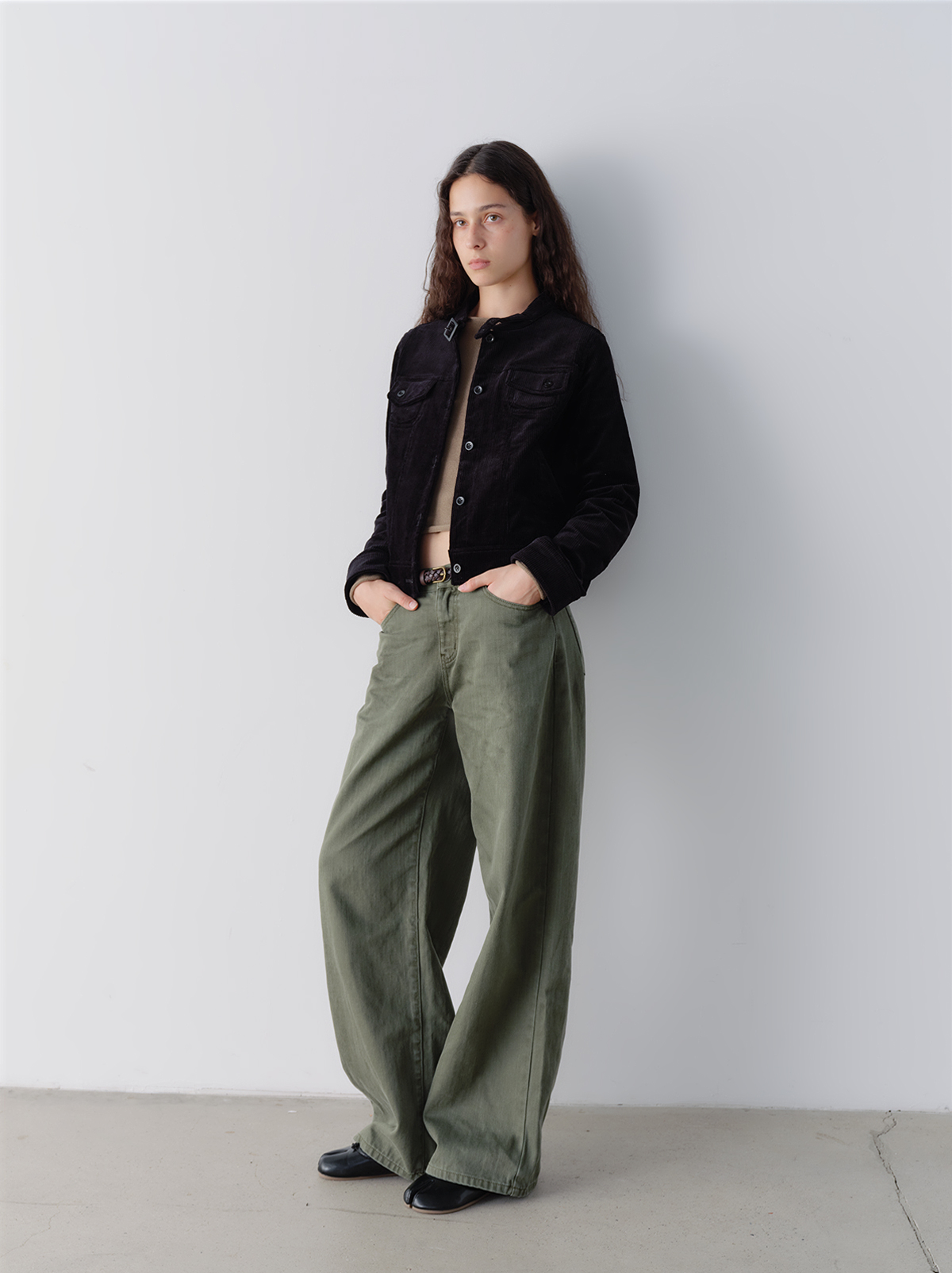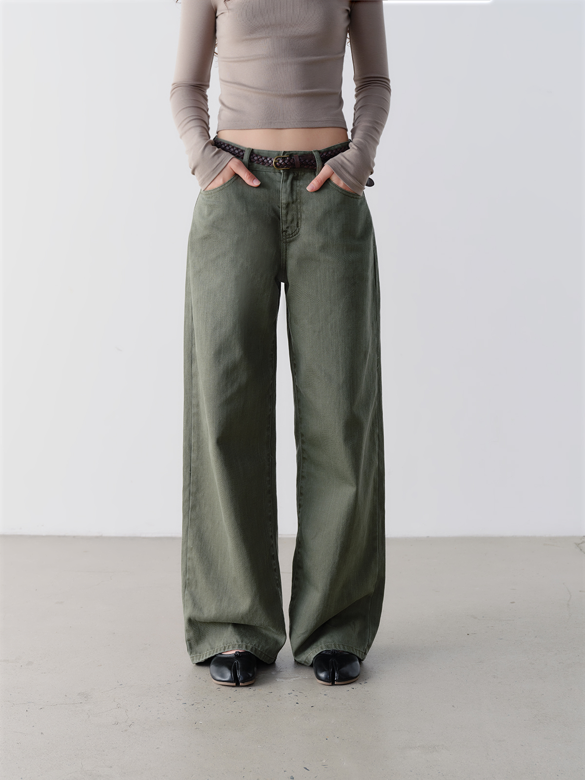 shyshystill/shy202506001/水洗墨绿色调怀旧休闲阔腿牛仔长裤