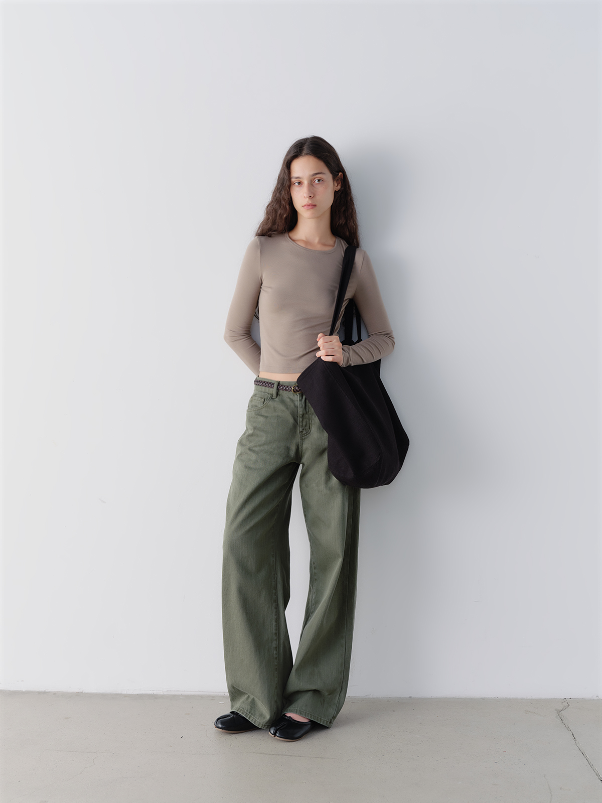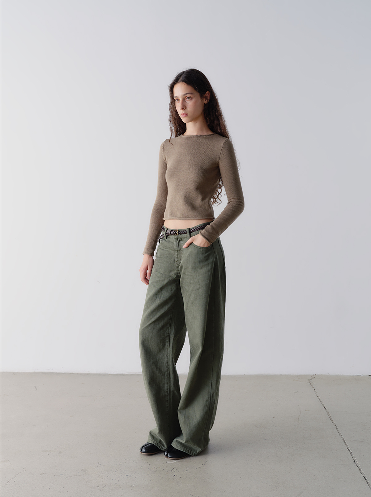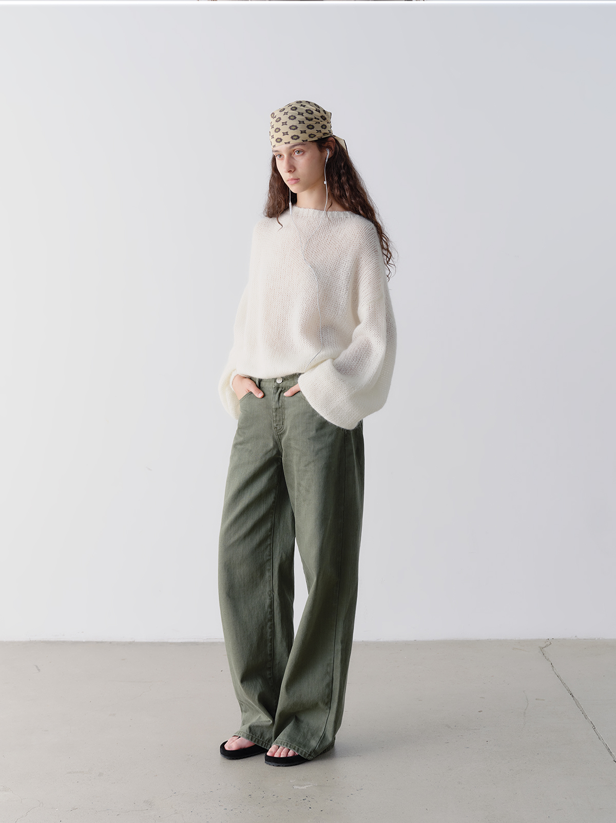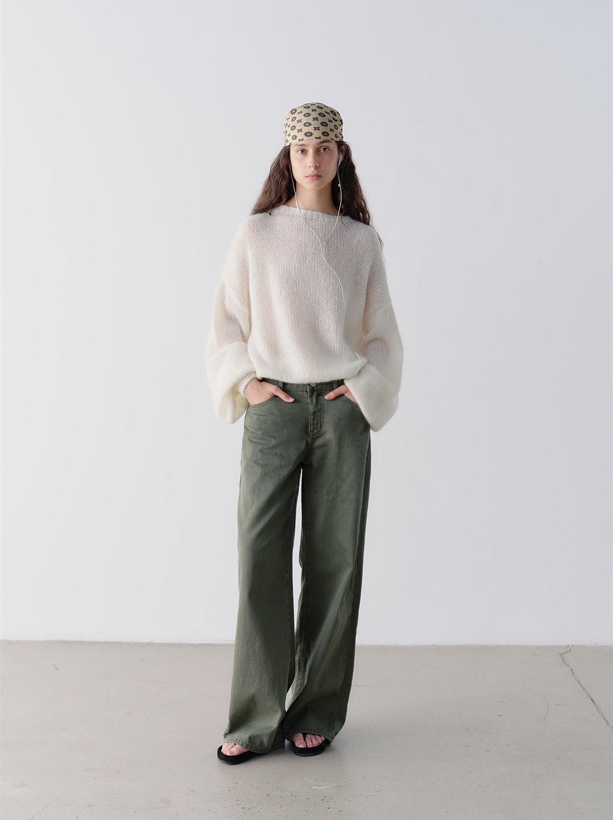 shyshystill/shy202506001/水洗墨绿色调怀旧休闲阔腿牛仔长裤