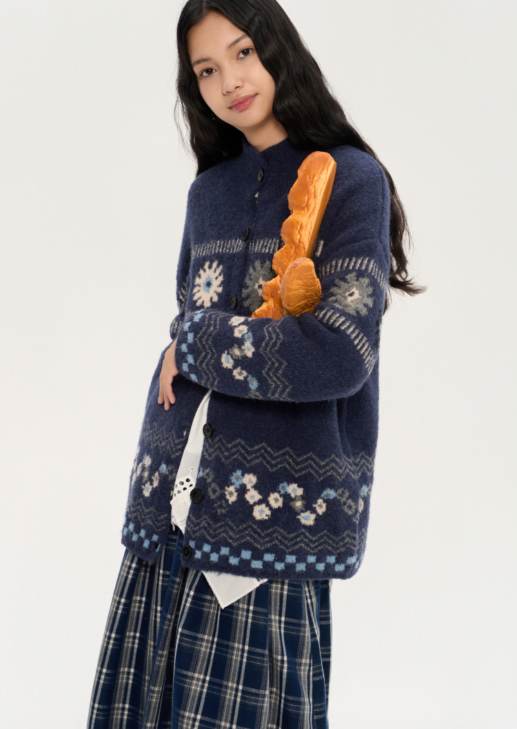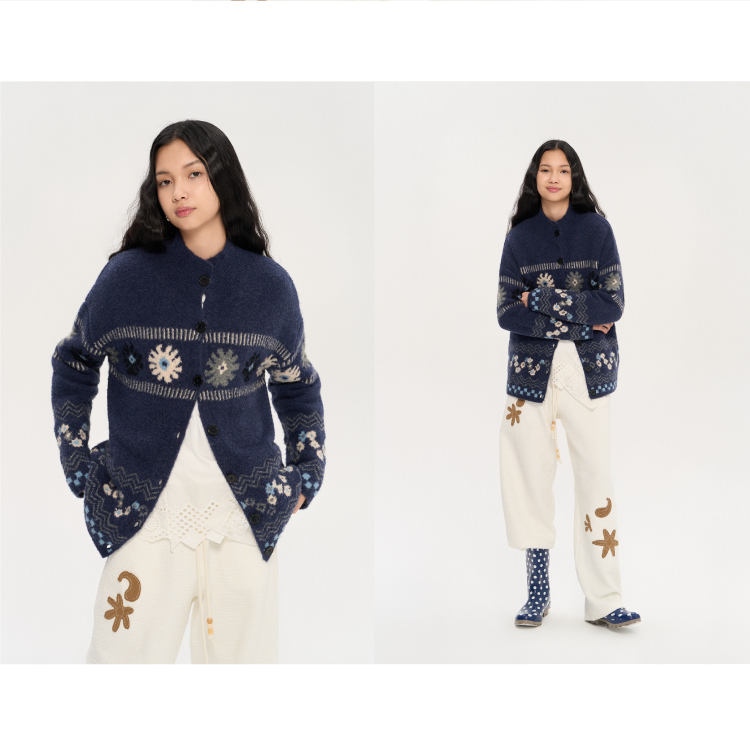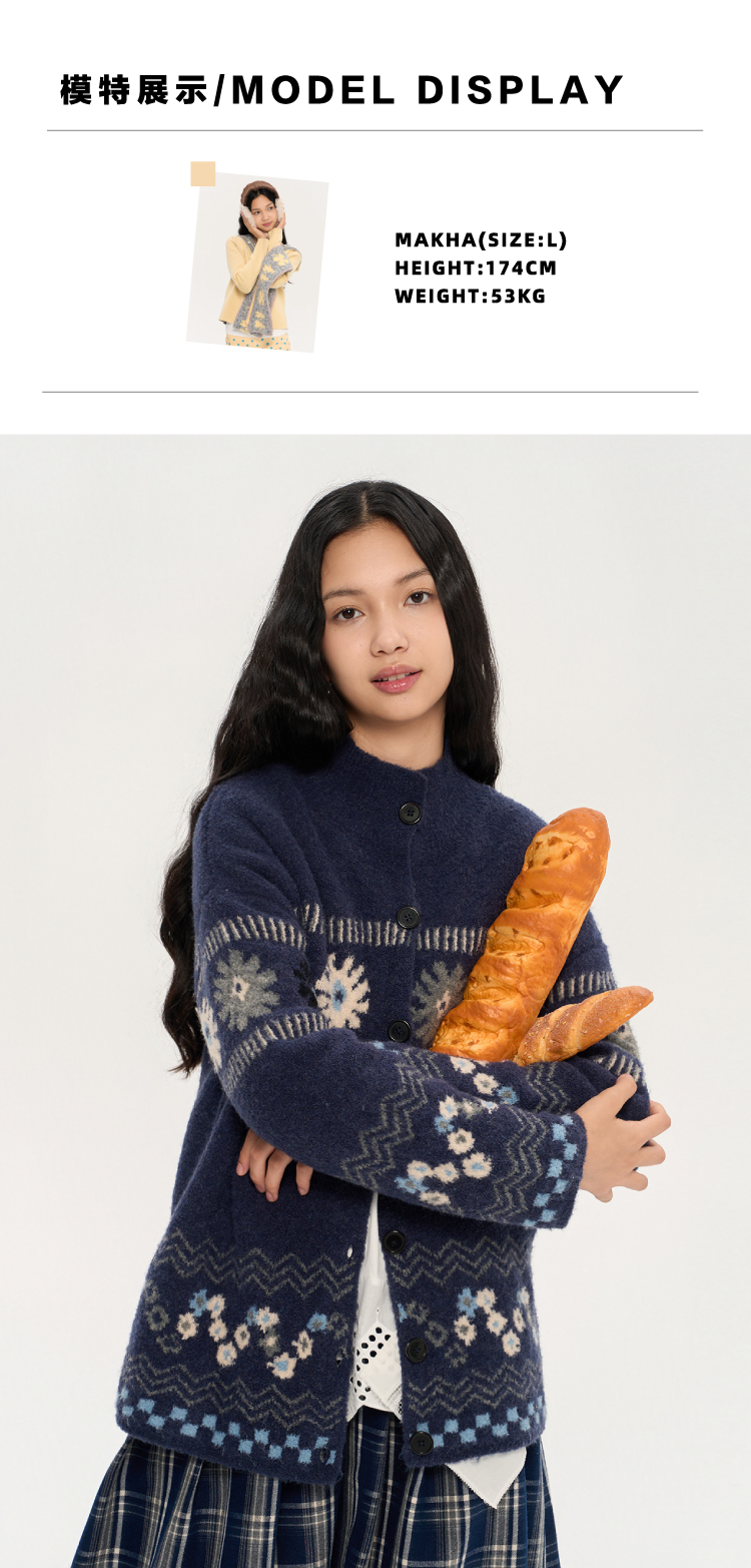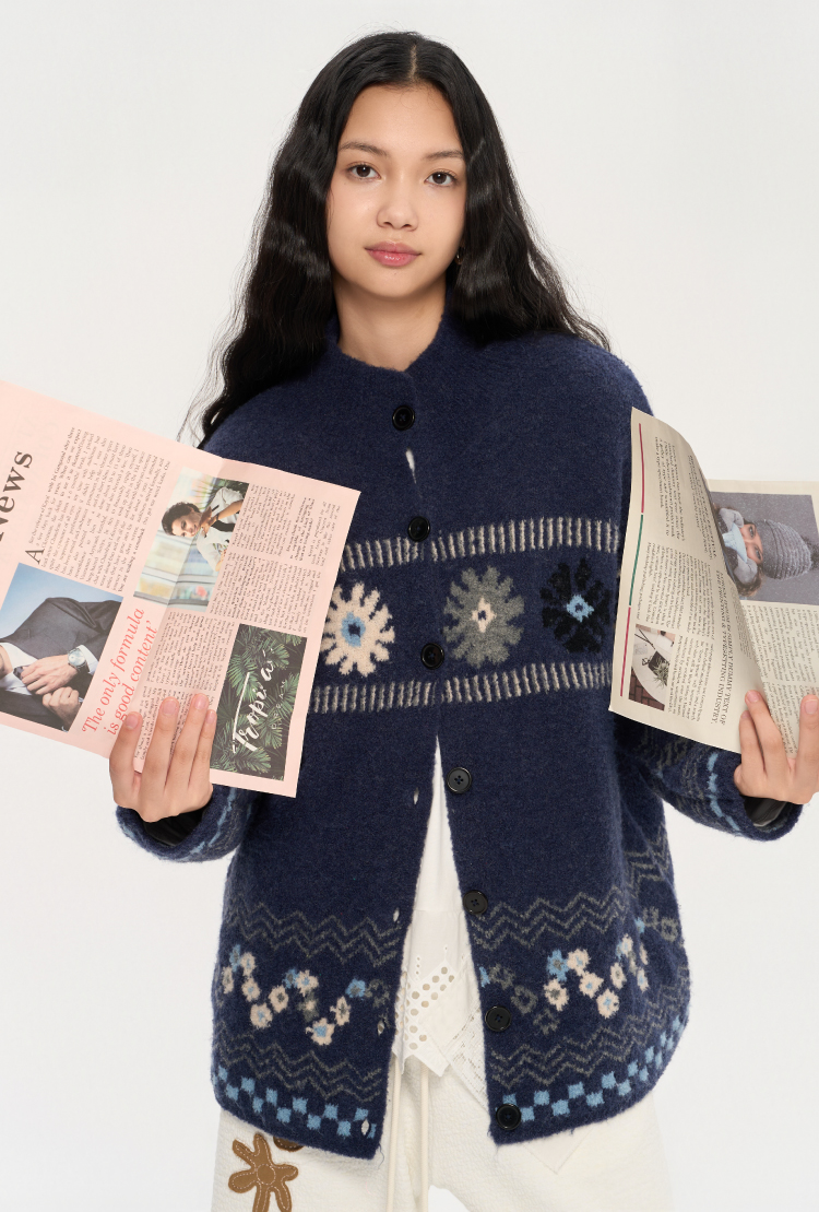 heris/H53104/普鲁士花园提花 厚实圈圈纱 慵懒宽松大毛衣外套
