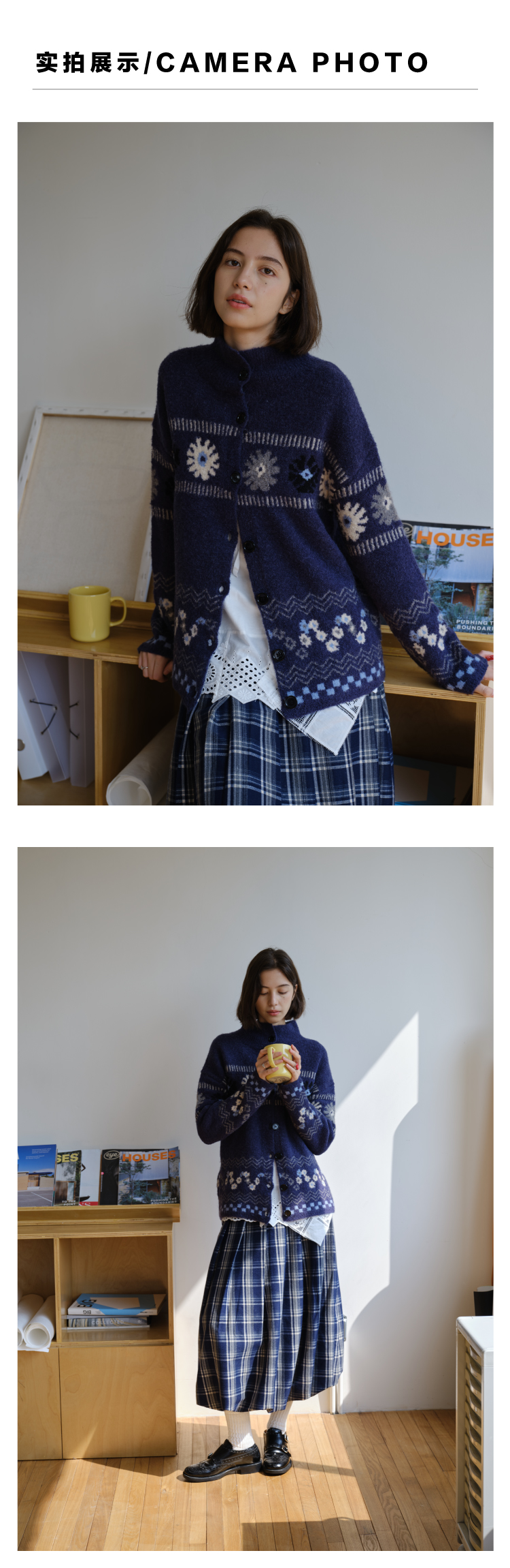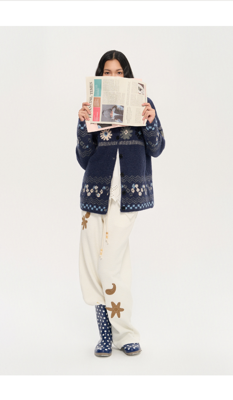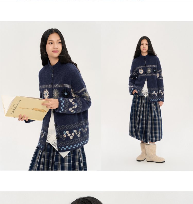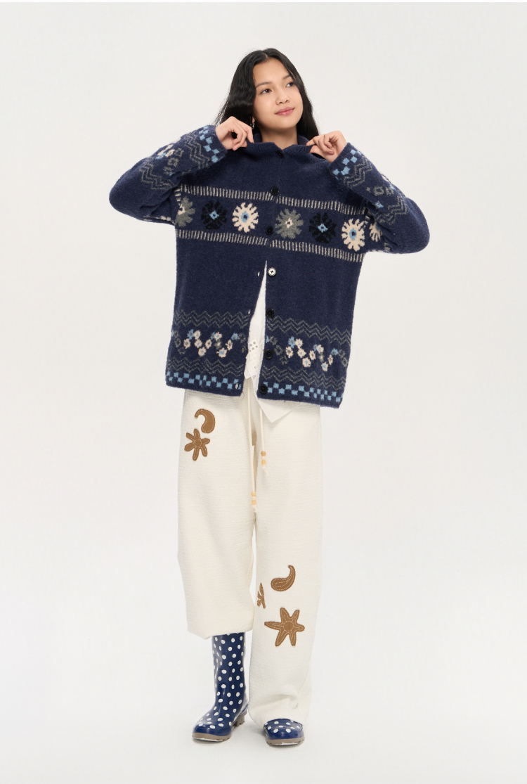 heris/H53104/普鲁士花园提花 厚实圈圈纱 慵懒宽松大毛衣外套