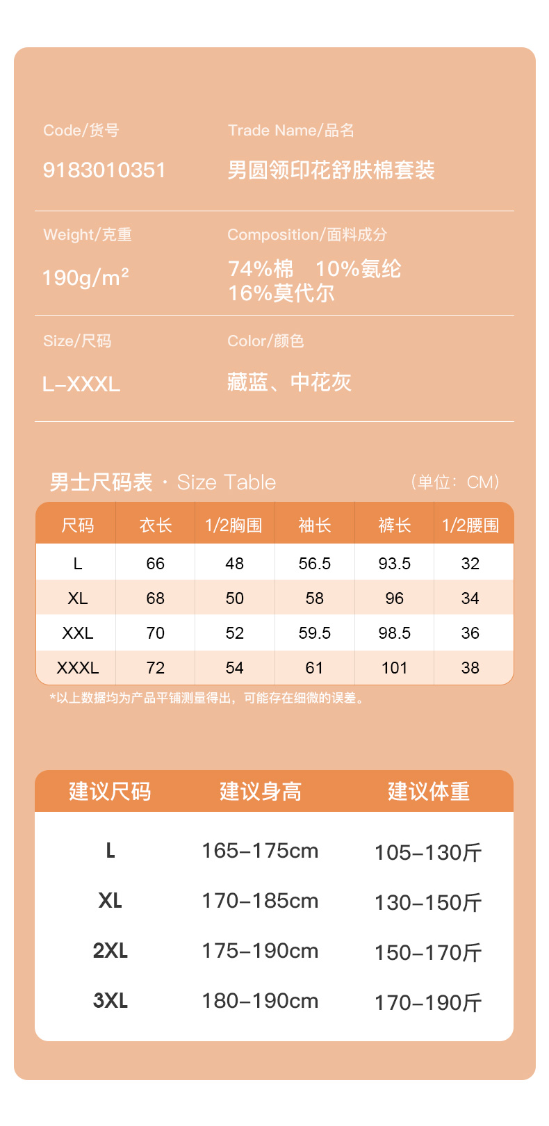 爱帝舒肤棉保暖内衣套男秋衣秋裤套