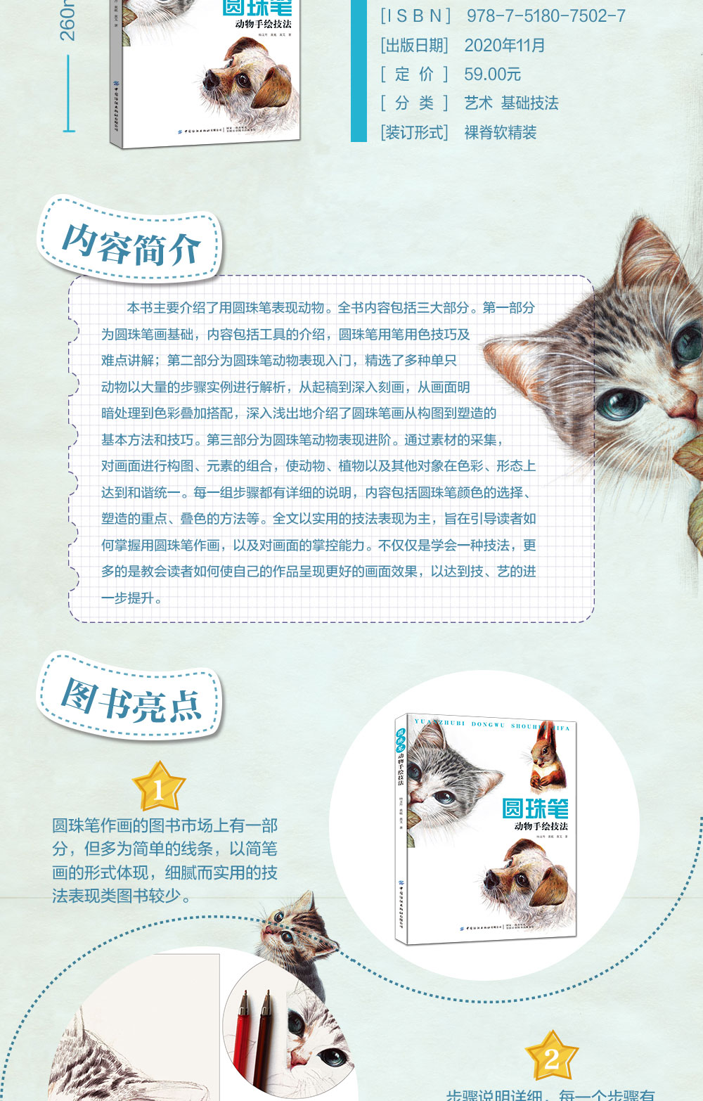 2020新书 圆珠笔动物手绘技法 圆珠笔绘画技法从入门到精通教程书籍 圆珠笔动物绘画方法技巧大全书籍 动物绘画图案大全美术书籍