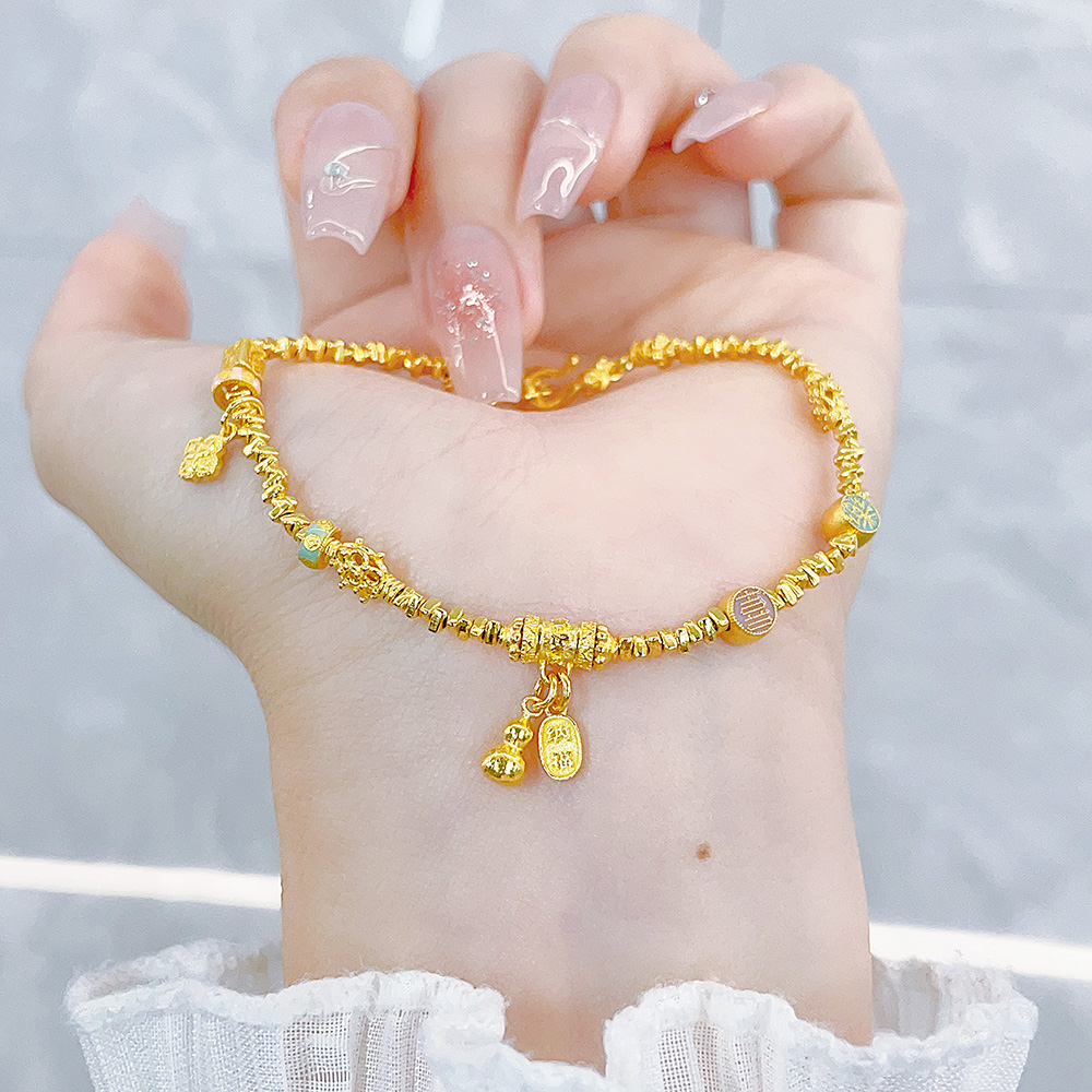 【限时克减150元】足金999 #繁华似锦 #低温珐琅 古法空心珐琅繁花蝶影里葫芦韵喜乐手链(内里为无弹力棉线)(AEQGFSL00332)(预售产品下单后不退款不退货不换货不补差价)