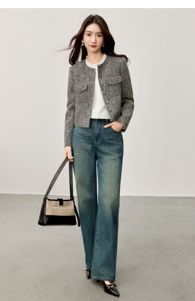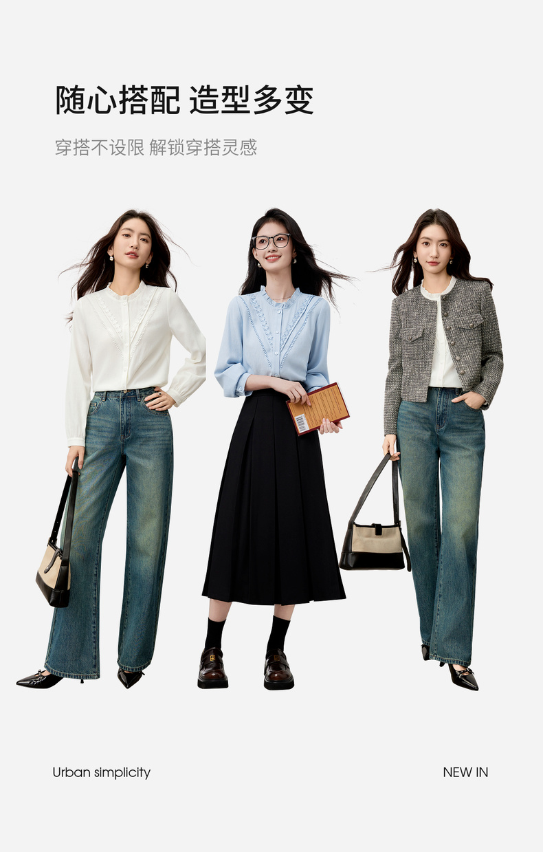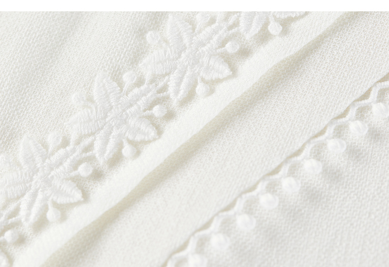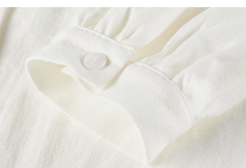 【内购】【含亚麻】优雅通勤木耳边圆领拼接花边长袖衬衫-153CB2513