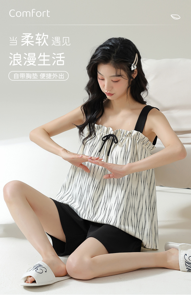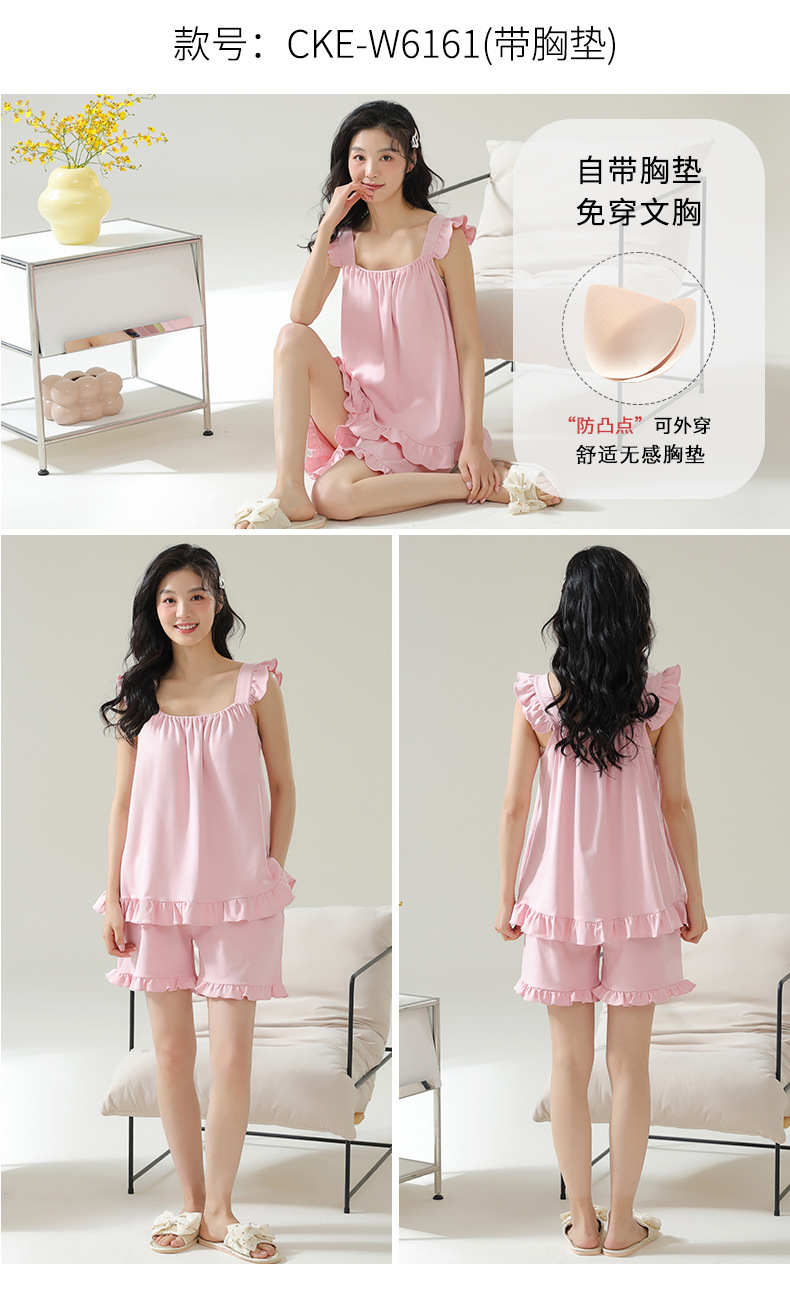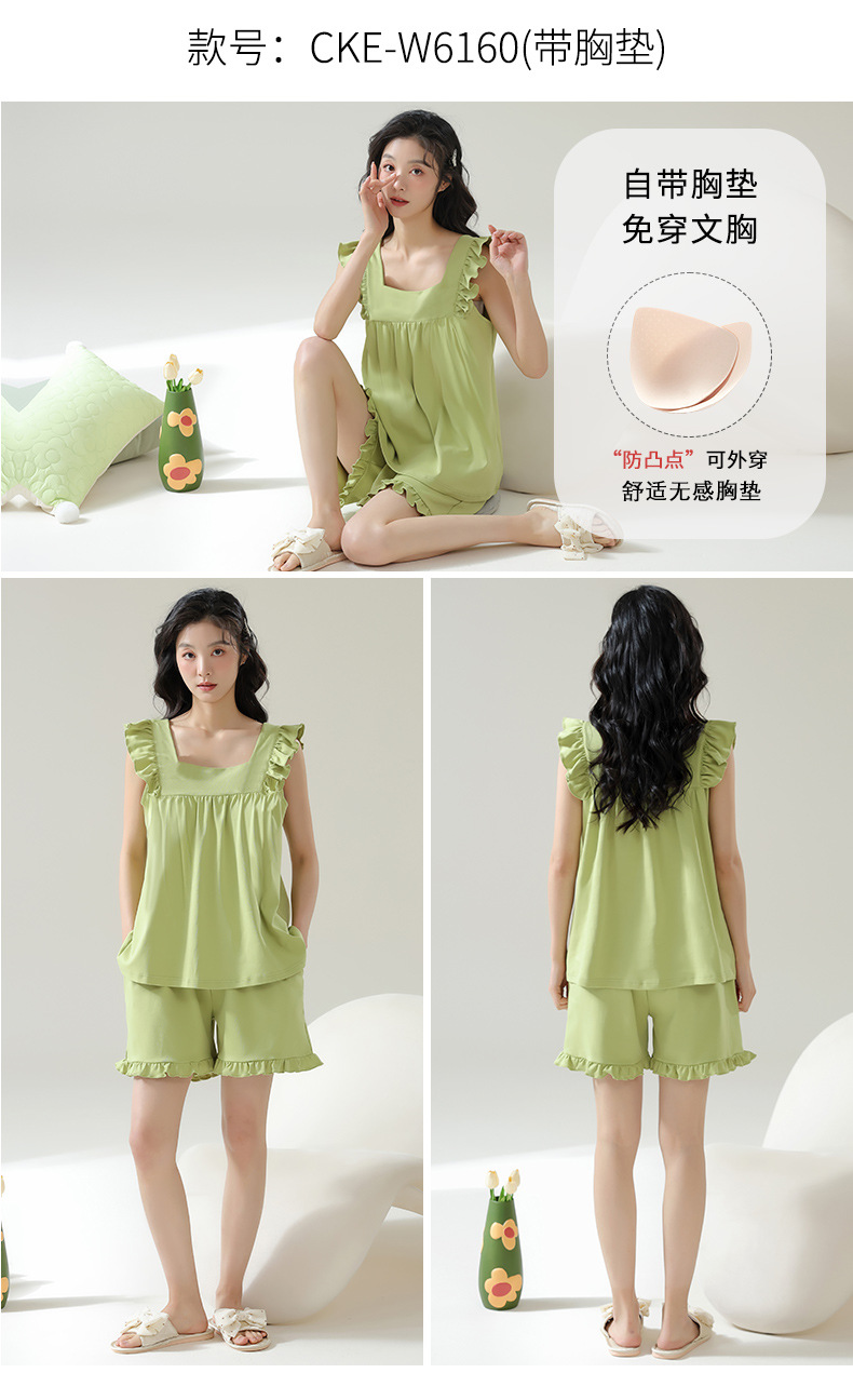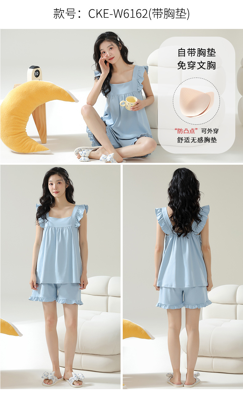 夏季新款【免穿文胸短袖睡衣女 2025年新款清新减龄】女士家居服套装 可外穿睡裙