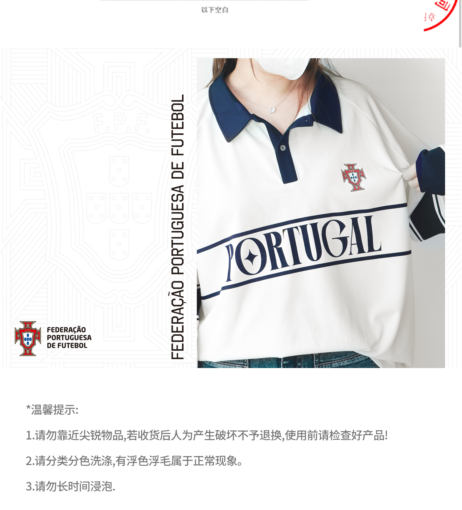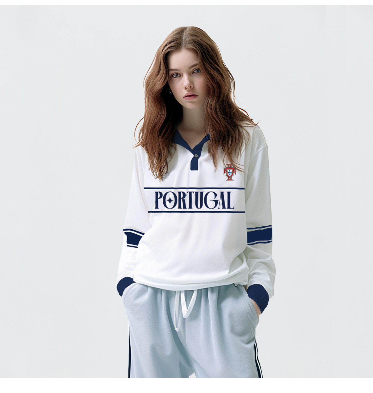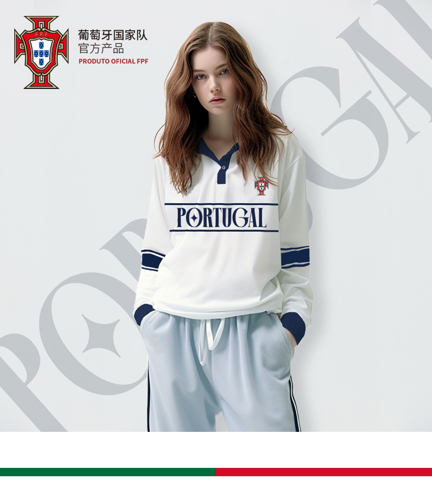 【官方正版】葡萄牙国家队 | 白色复古长袖POLO衫潮流C罗