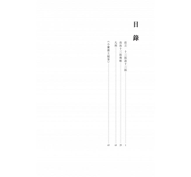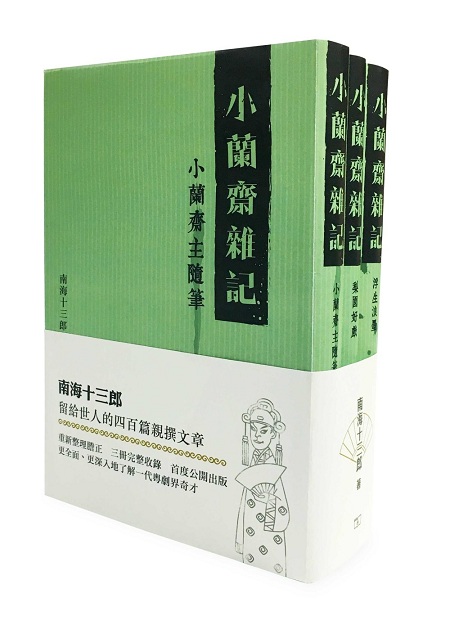 《小蘭齋雜記》收集並整理了南海十三郎由一九六四至一九六五年親筆撰寫的四百多篇報章專欄文章,當時的欄目分別為《小蘭齋主隨筆》、《後台好戲》、《梨園趣談》和《浮生浪墨》,所有文章按刊登日期先後刊載。