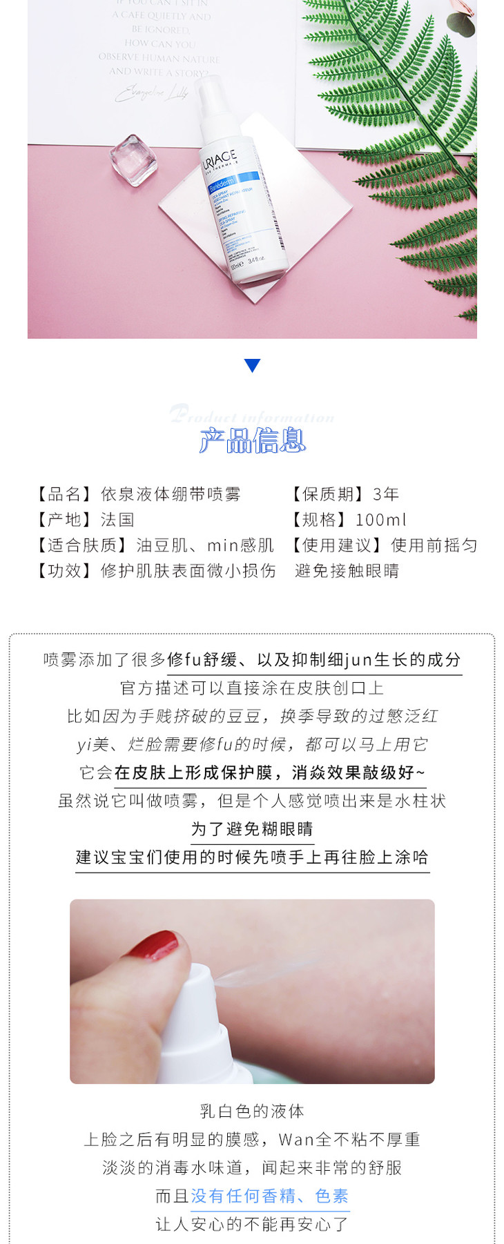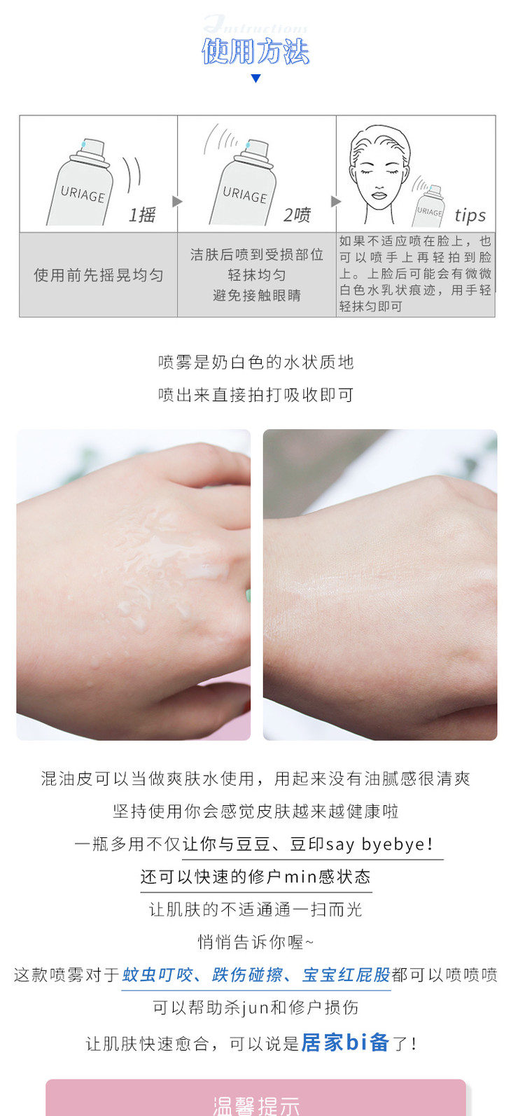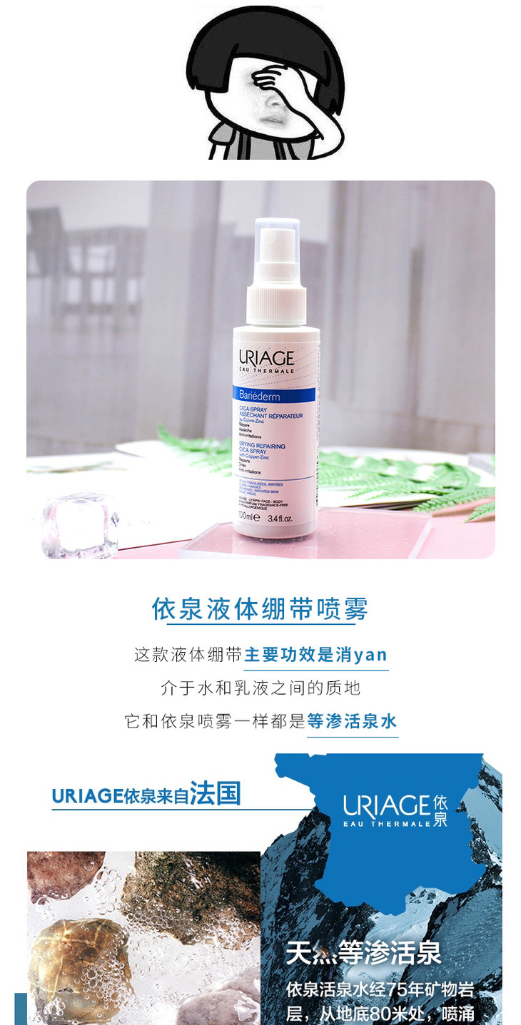 法国URIAGE依泉喷雾 舒缓补水保湿爽肤水 定妆晒后修护 便捷户外携带100ML/瓶