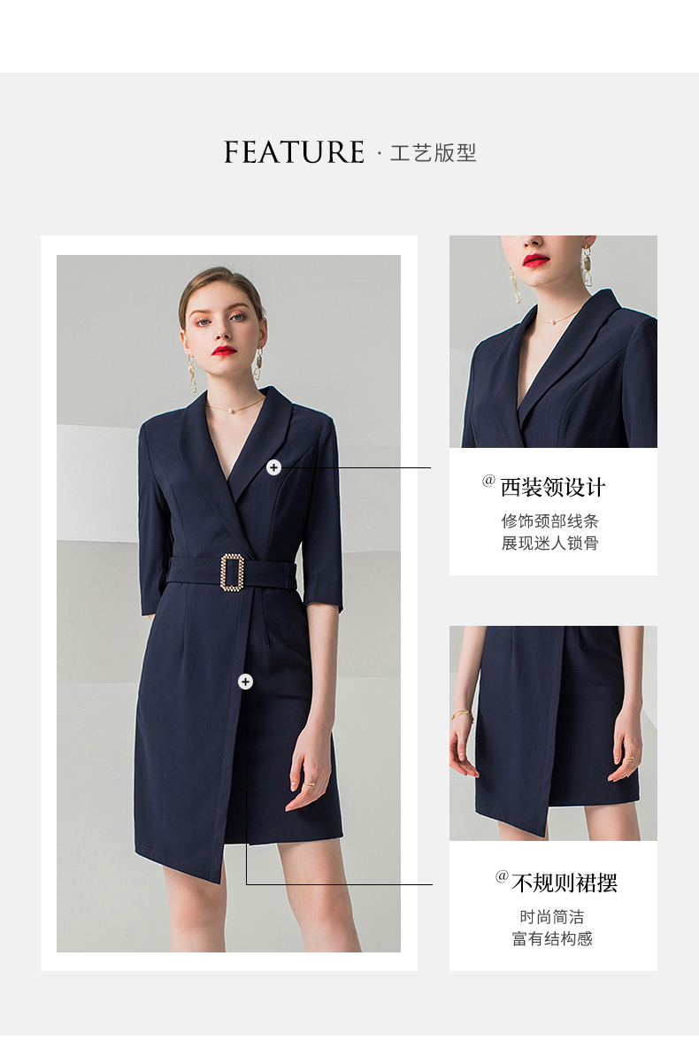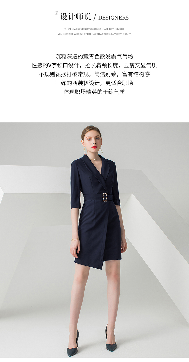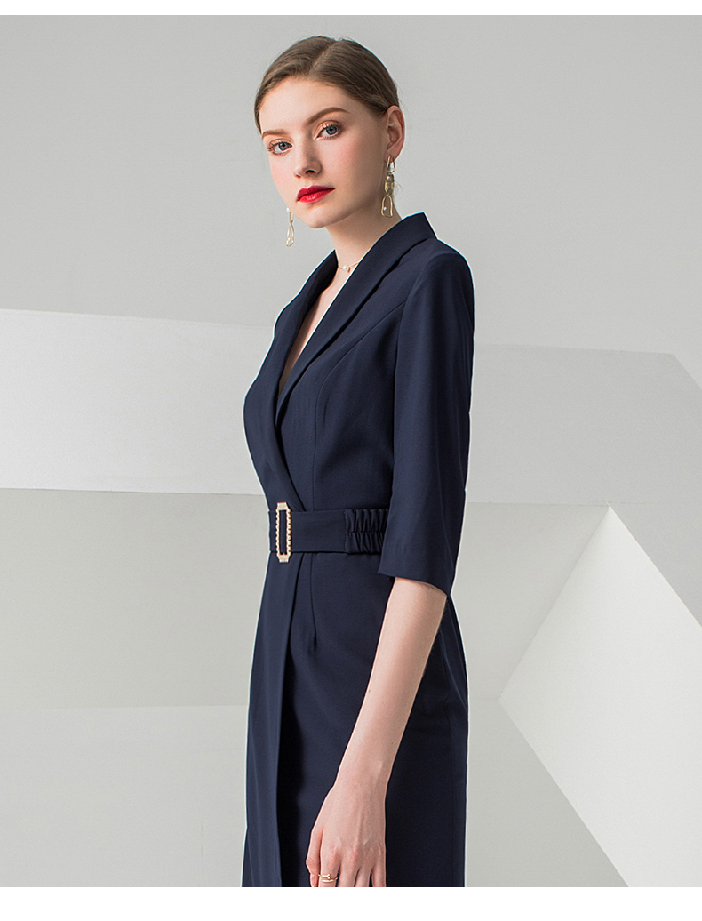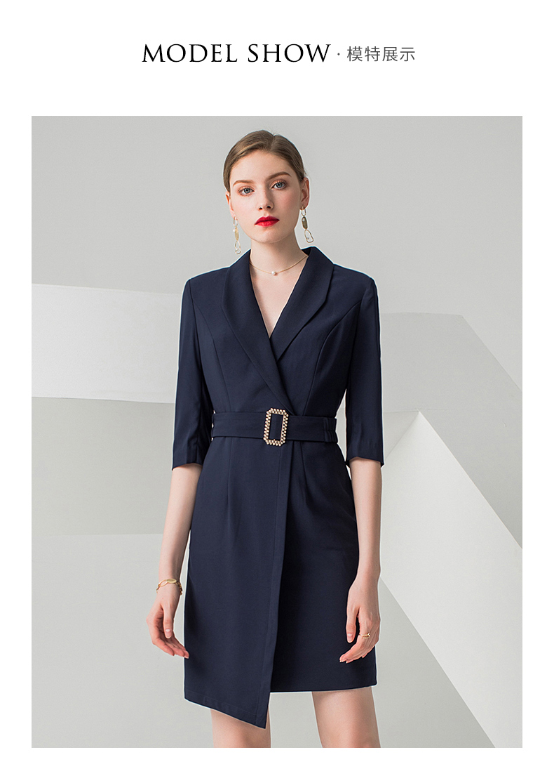 IWY/高端职业连衣裙女时尚气质中裙藏青OL 女裙