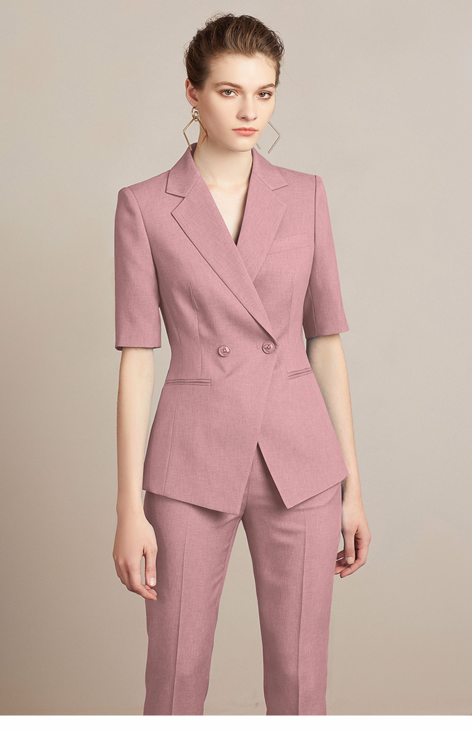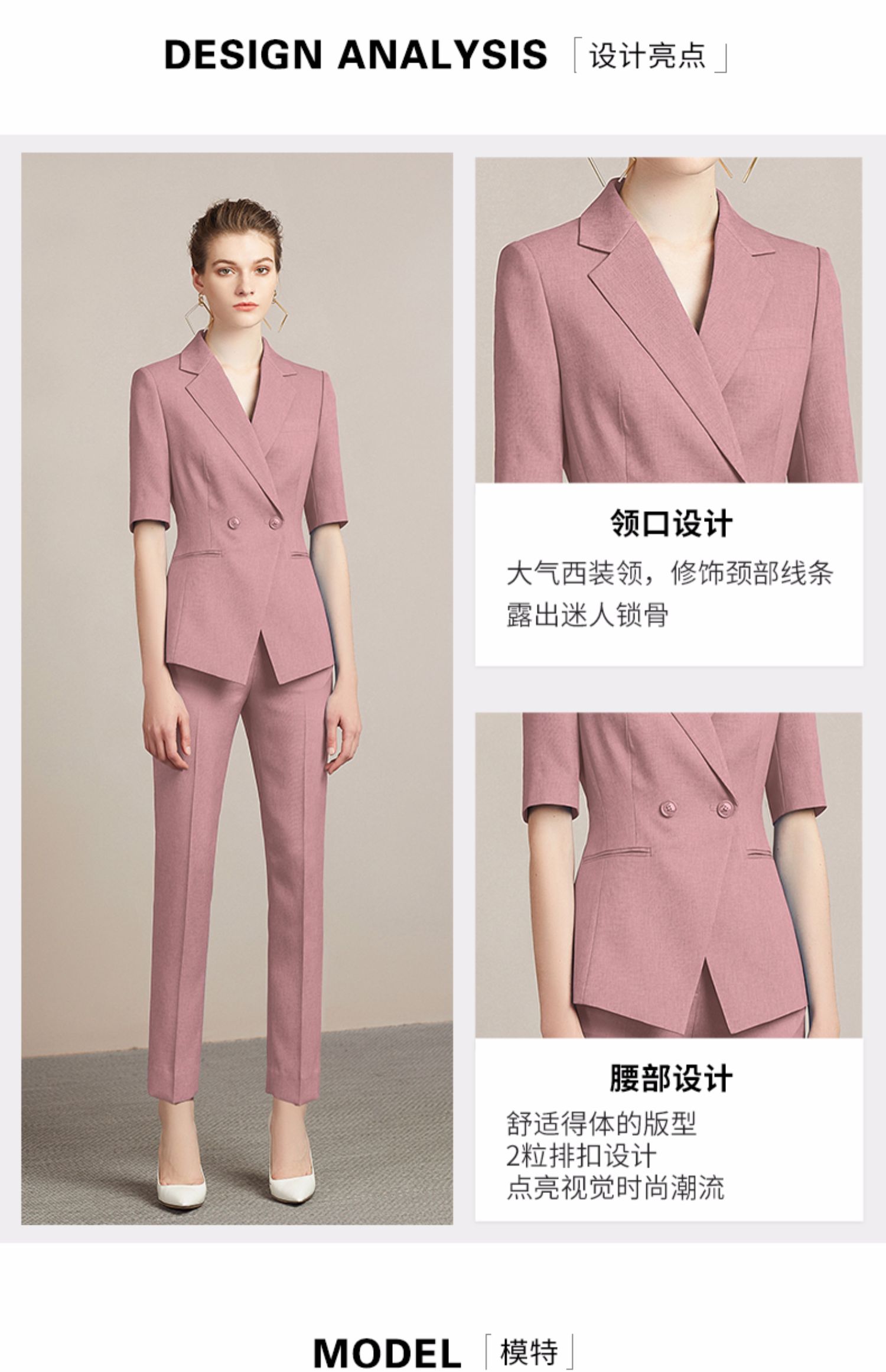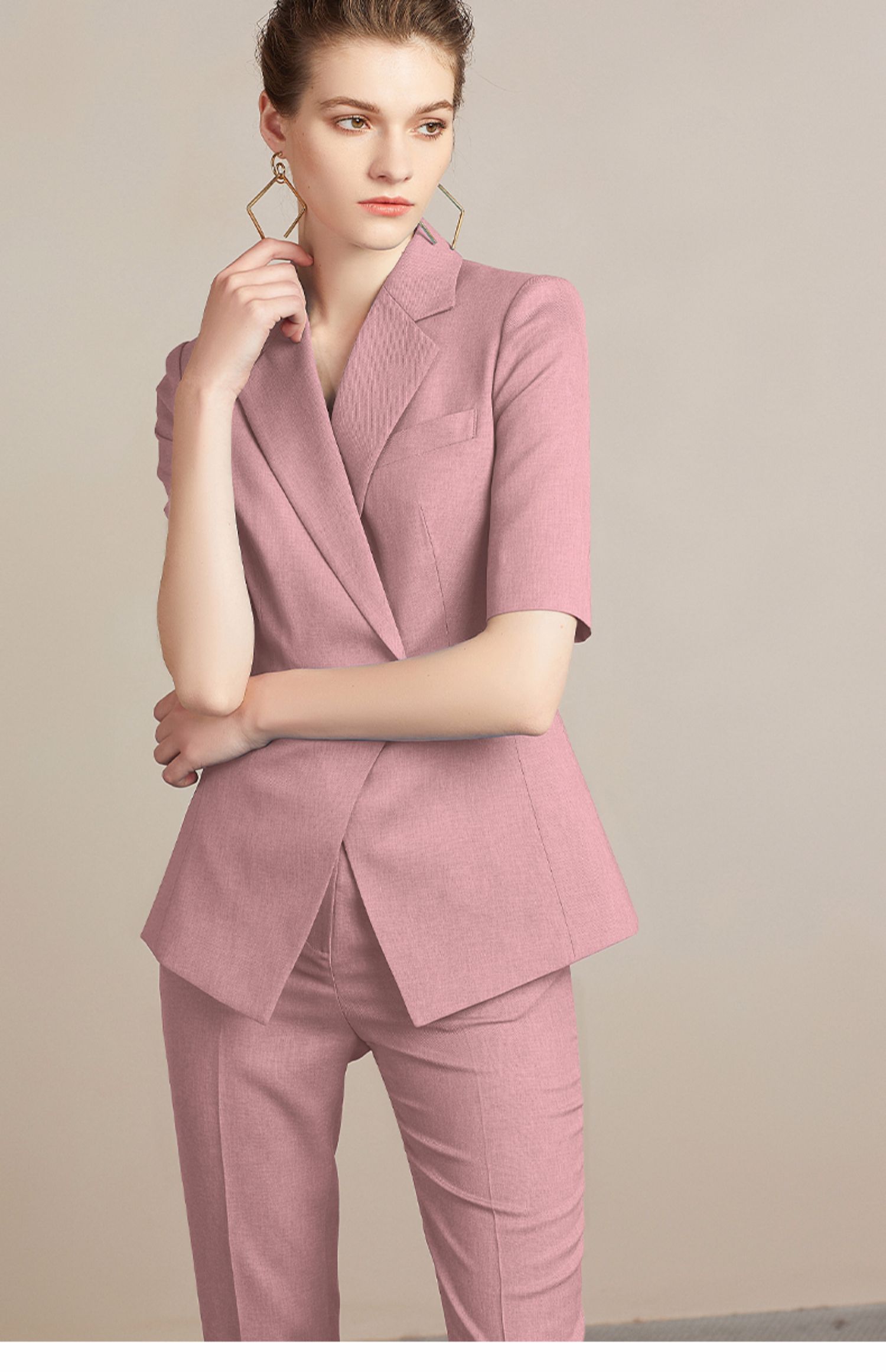 IWY/粉色面试套装女时尚高端简约OL西装工作服气质通勤职业正装212096P1+C1-粉色