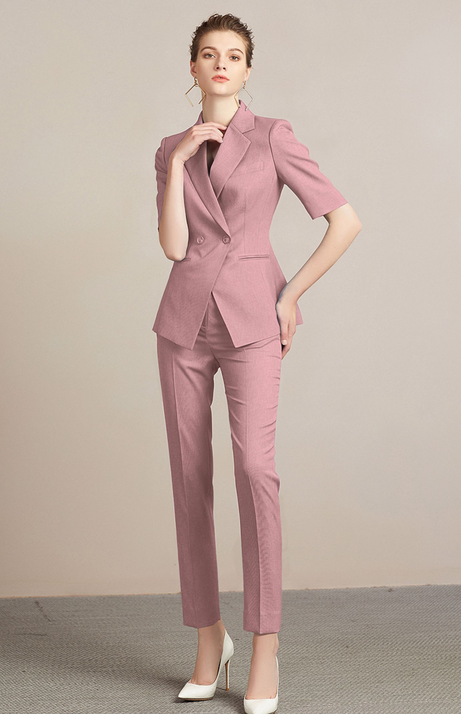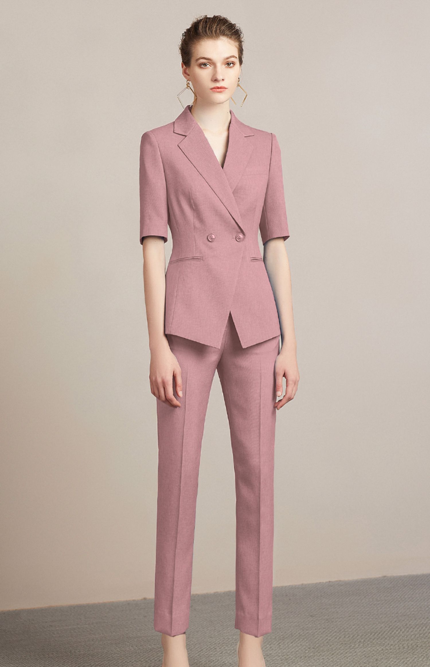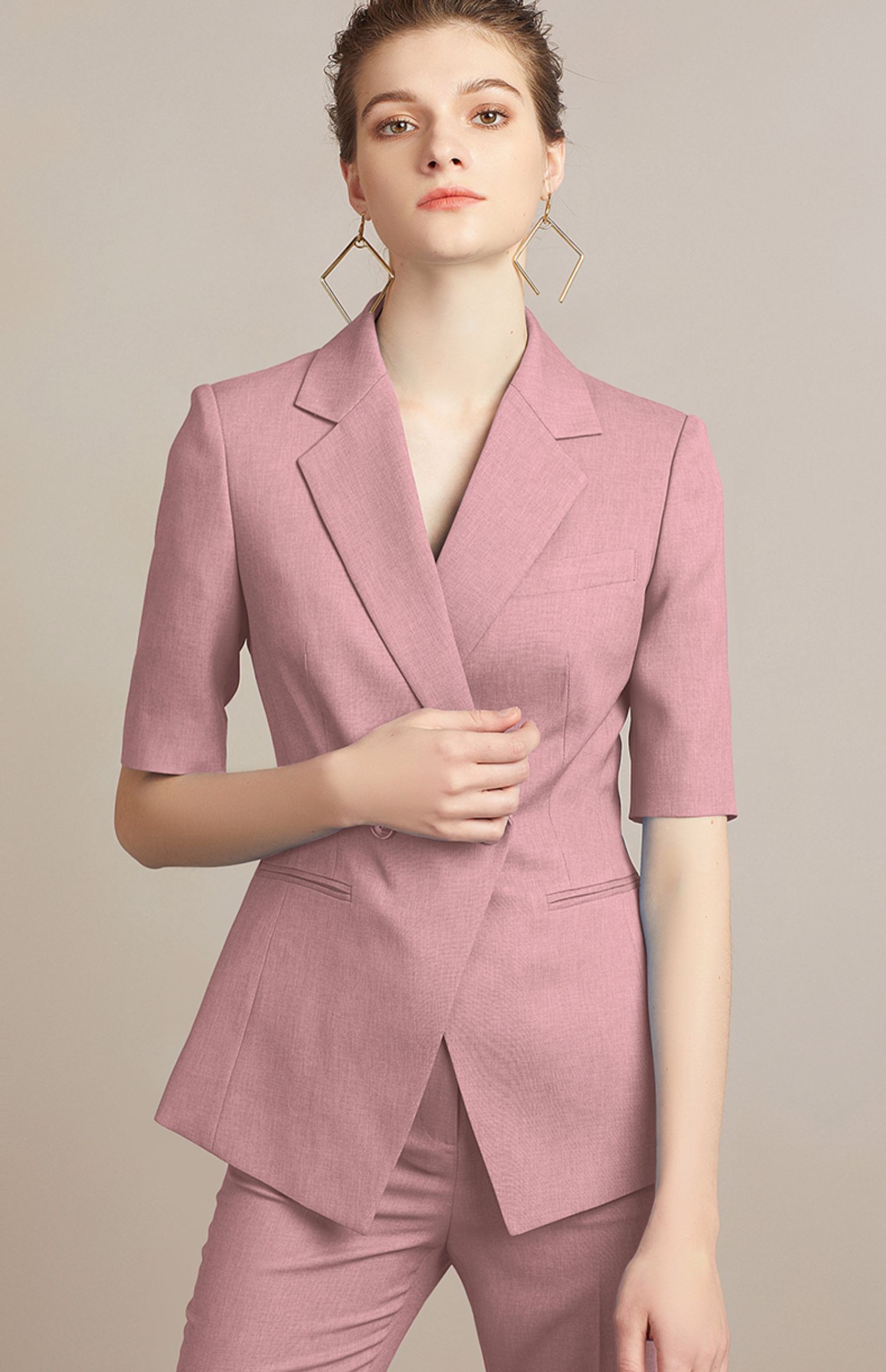 IWY/粉色面试套装女时尚高端简约OL西装工作服气质通勤职业正装212096P1+C1-粉色
