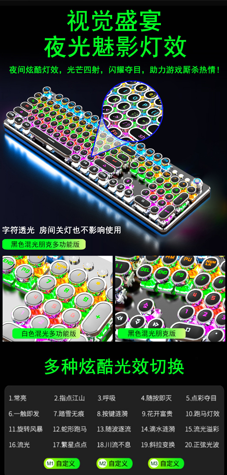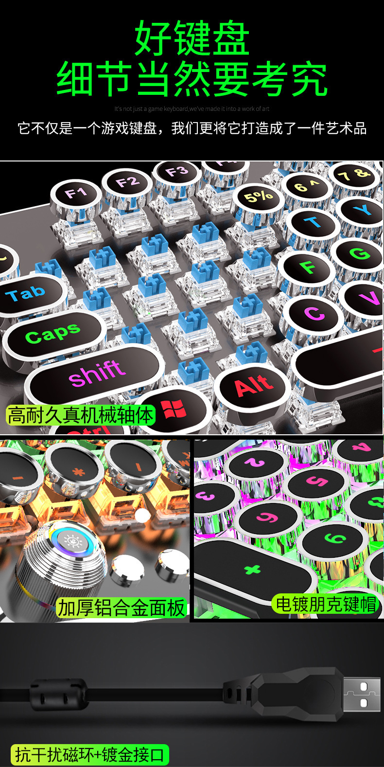 【化繁为简!一键双模式】复古朋克旋钮 发光键帽机械键盘 青轴电脑游戏有线宏键盘,它不仅是一个游戏键盘,我们更将它打造成了一件艺术品。ry