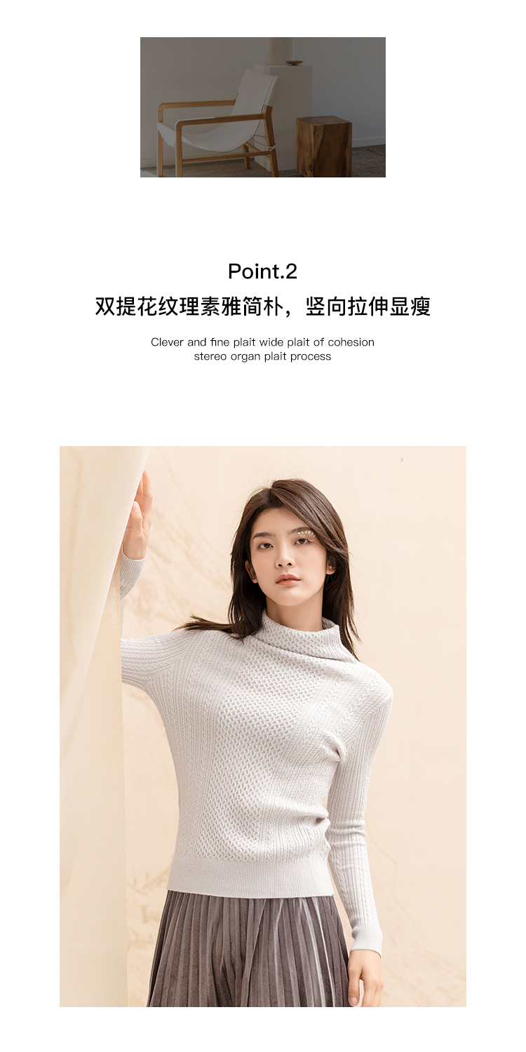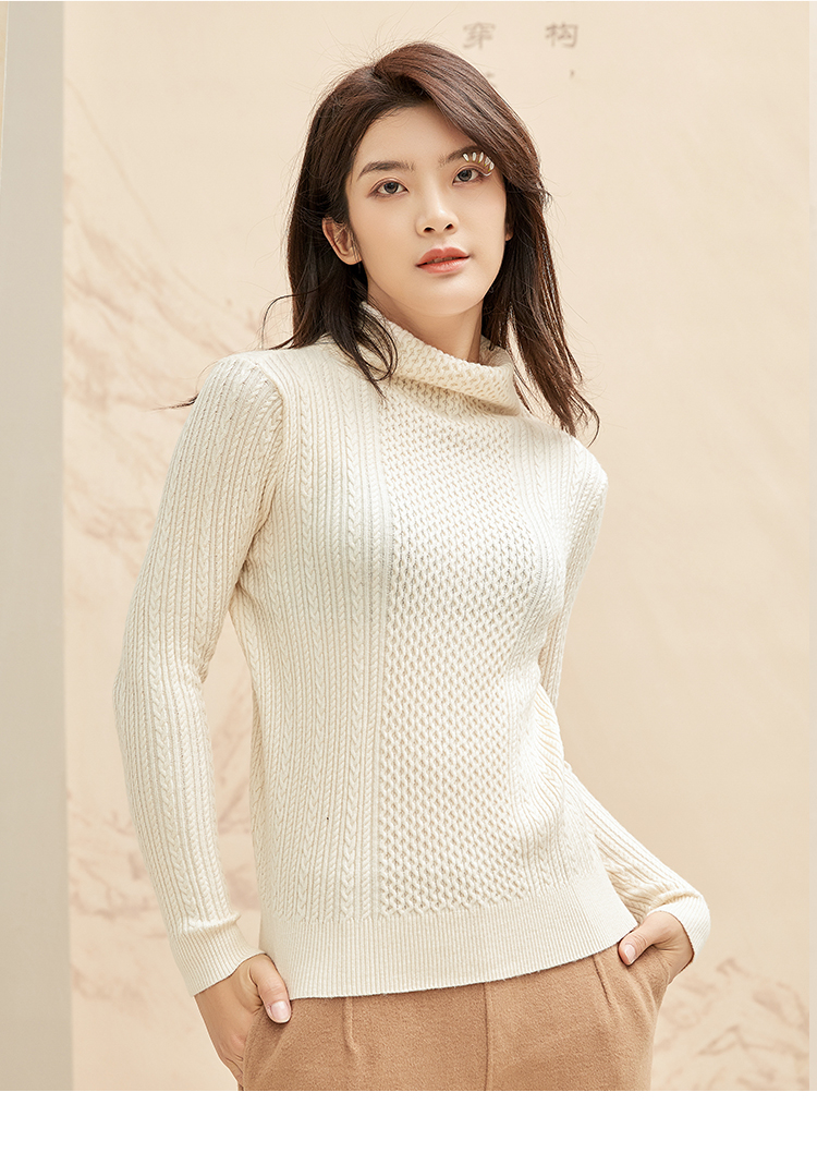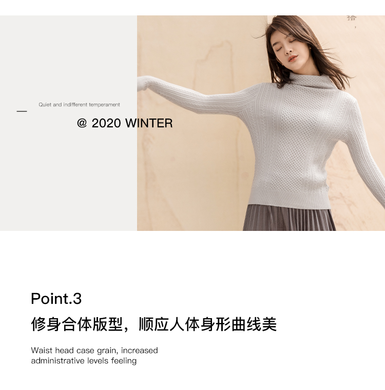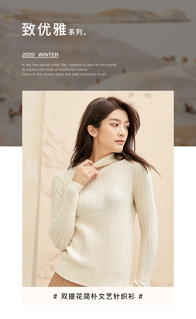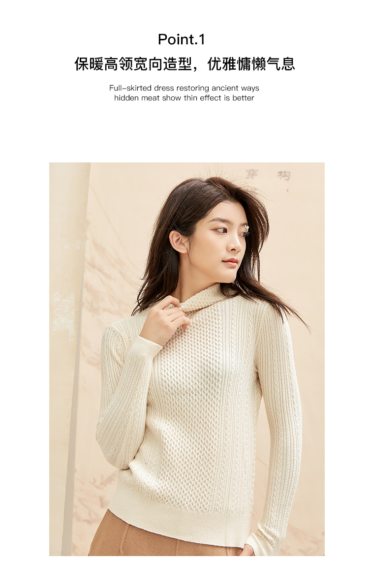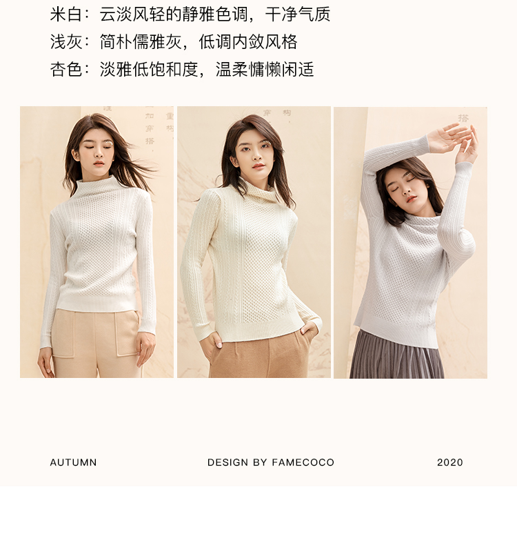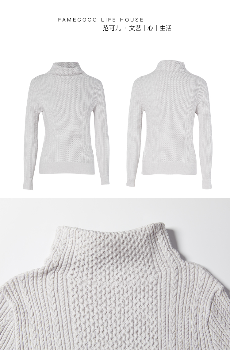 Famecoco范可儿高领毛衣复古修身时尚麻花针织衫F198DB026
