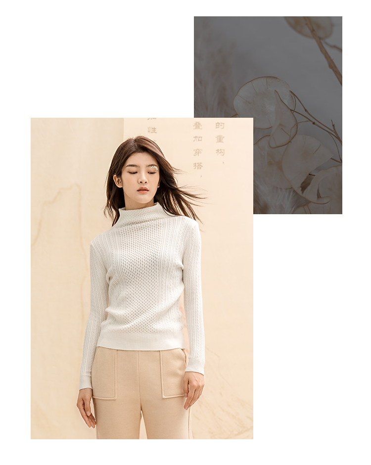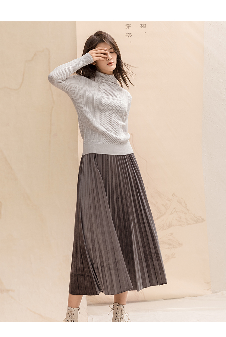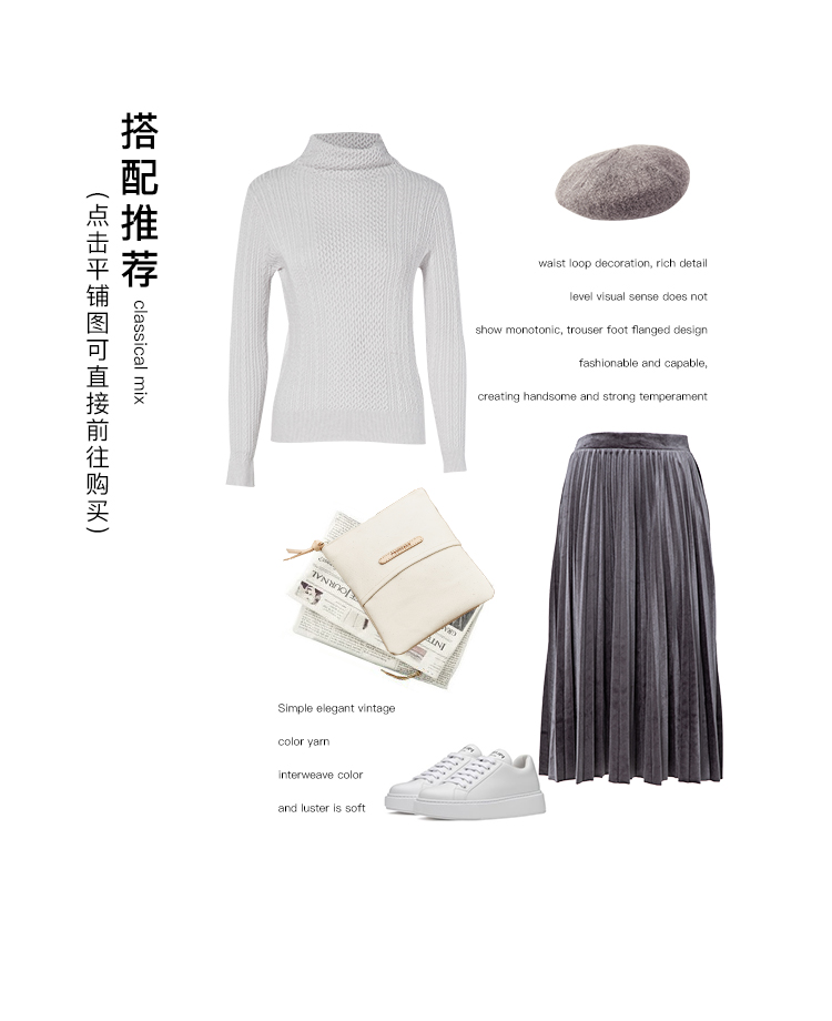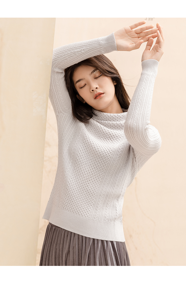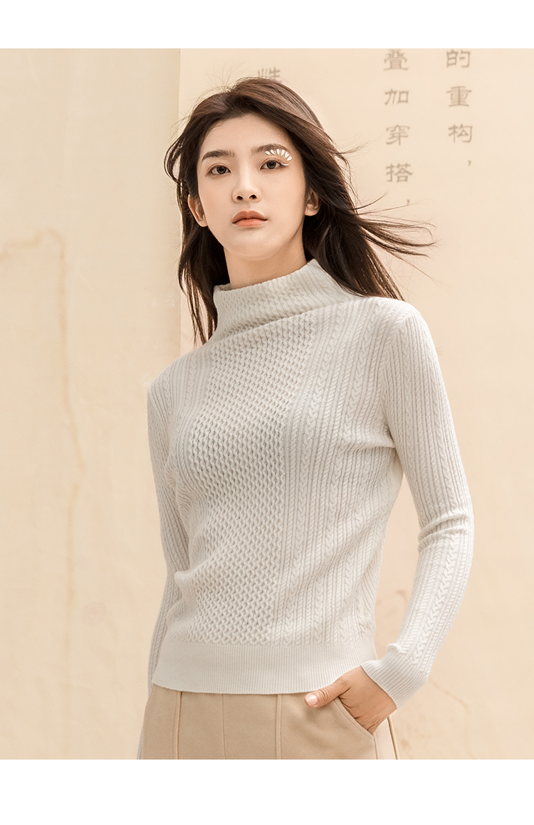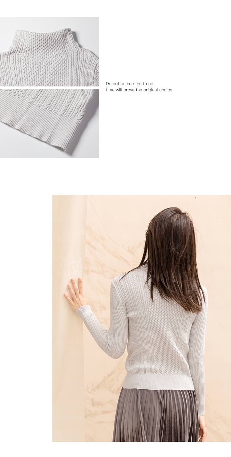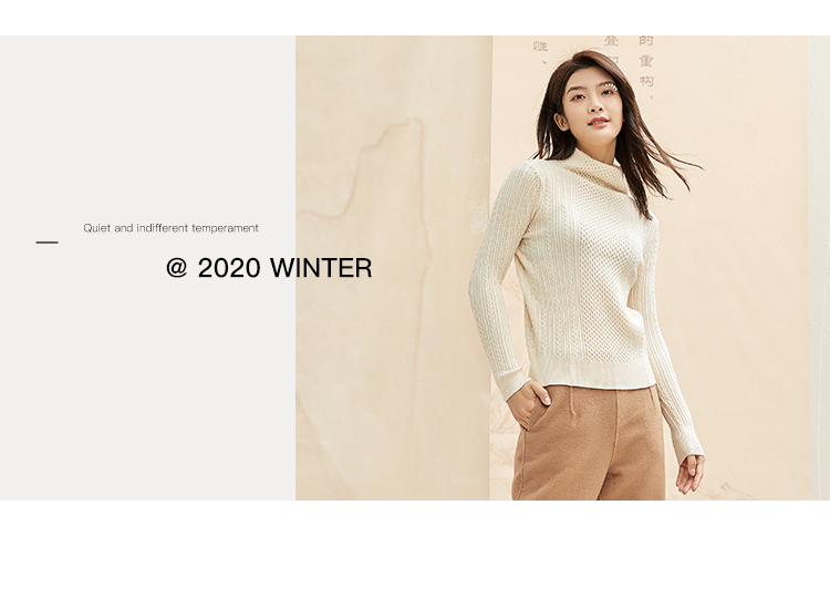 Famecoco范可儿高领毛衣复古修身时尚麻花针织衫F198DB026