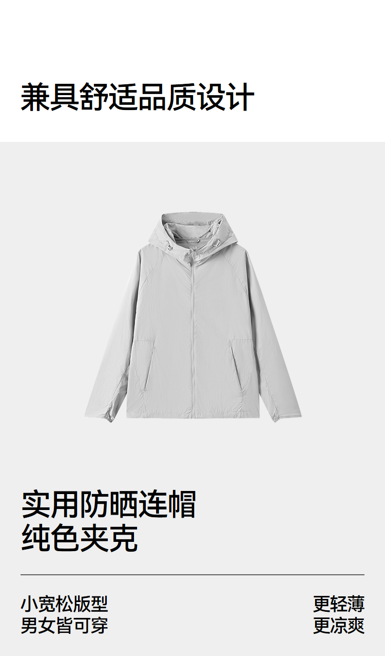 防晒外套|森马夹克男夏季纯色连帽上衣2026新款情侣凉感插肩袖服