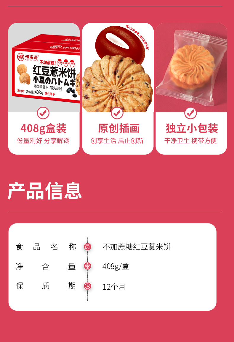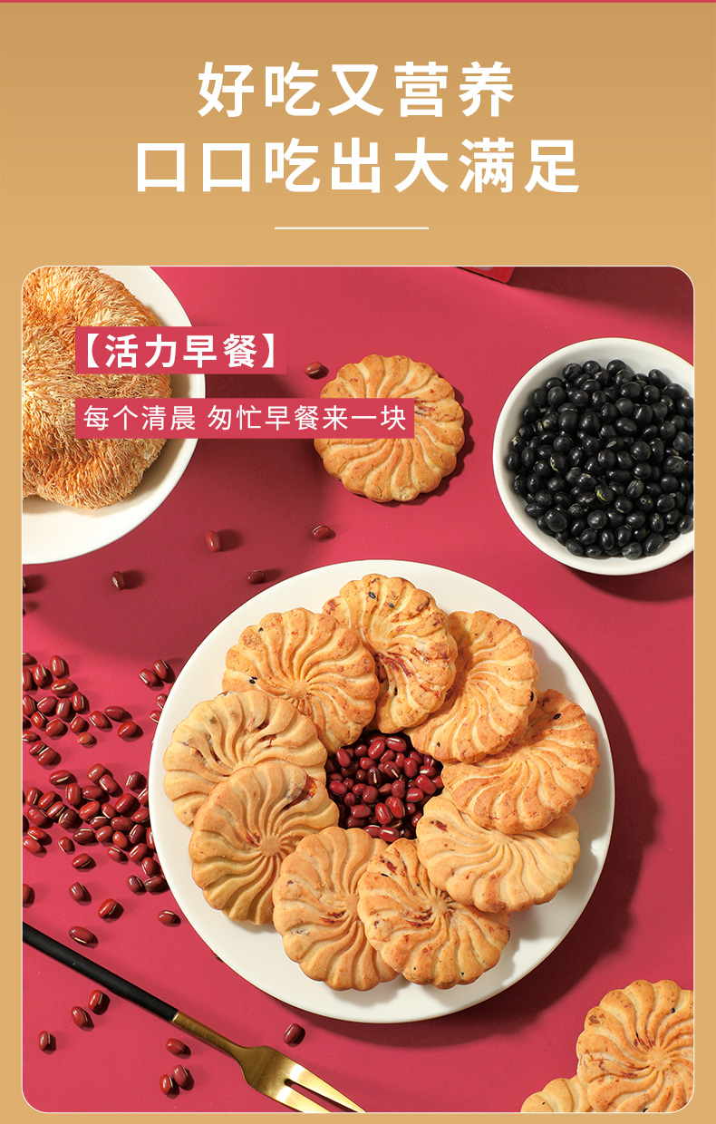 味滋源红豆薏米饼干408g代餐干全麦燕麦粗粮早餐饱腹整箱休闲零食品【分销】