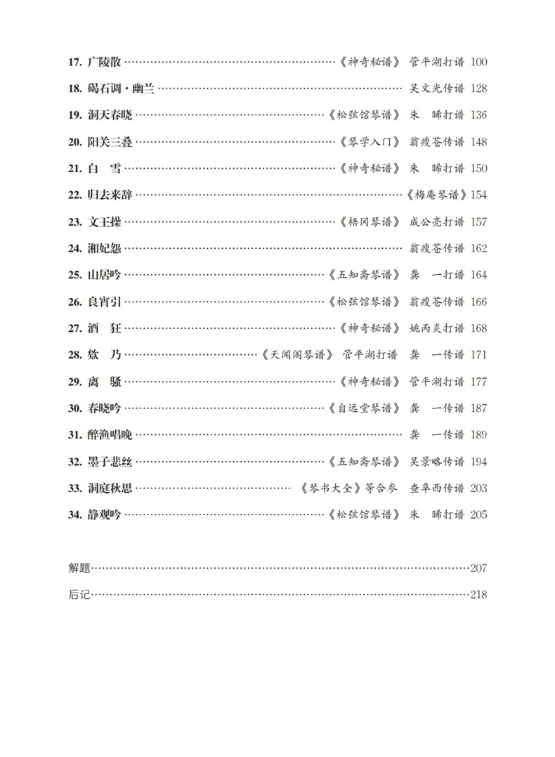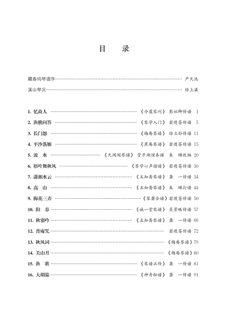本书是由著名古琴演奏家、虞山琴派国家级代表性传承人朱晞编著的一本古琴谱,以五线谱加减字谱的形式呈现。全书共34首古琴经典曲目,如《忆故人》《流水》《梅花三弄》《潇湘水云》等。琴谱前收录了两篇重要的虞山派琴论——《藏春坞琴谱序》和《溪山琴况》,琴谱后收录了作者撰写的乐曲解题。本书34首琴曲均配有作者的演奏音频。
