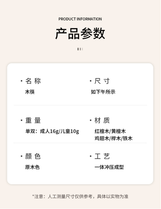 这款筷子,取材自然进口原木,无漆无蜡,经质量监督局检测合格,请放心使用,安全值得信赖。 每一双筷子的纹理都是独一无二的。