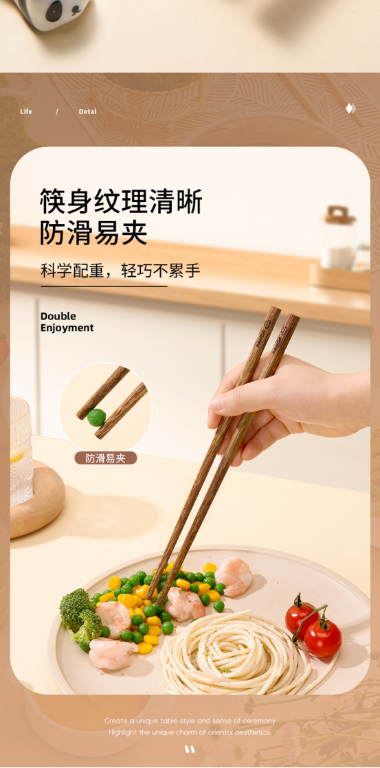 筷子界的天花板 从刚需到轻奢❗️健康党 + 颜值控都尖叫😍😍 ✅独特纹理|无异味|防臭抗菌 ✅握感舒适 夹取各种食物不费力 ✅手工打磨 光滑无毛刺