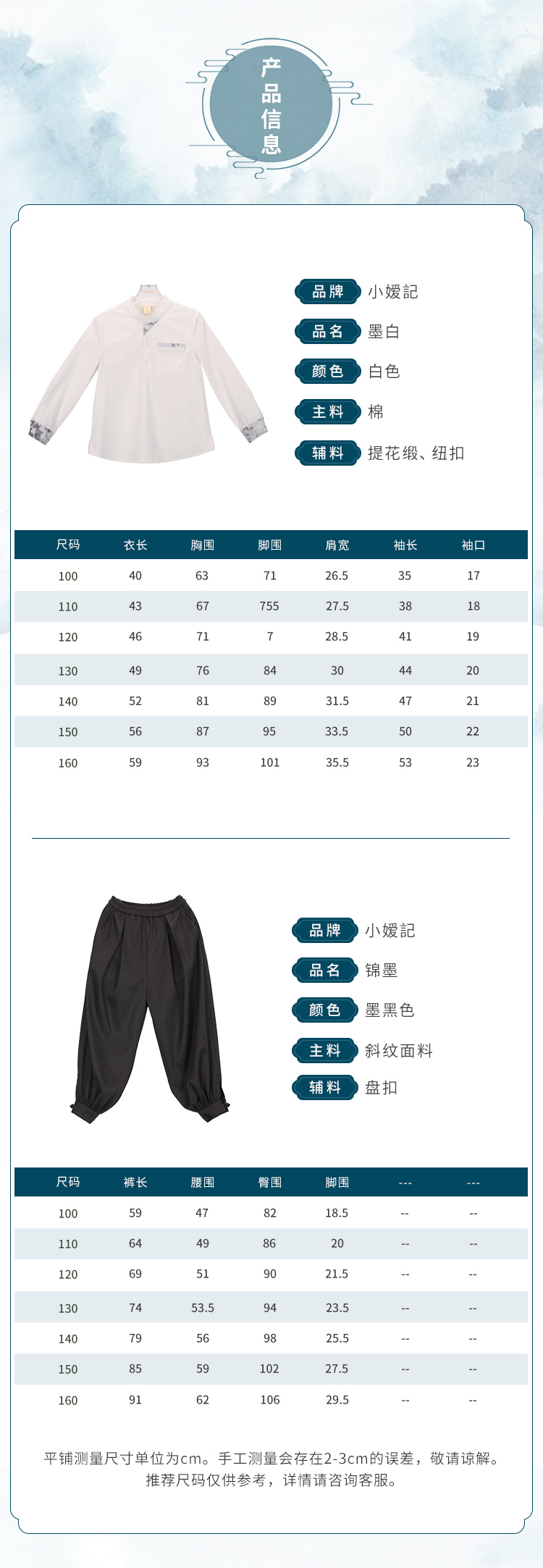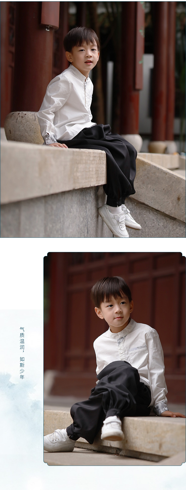 非质量问题不退换哦!小嫒记 男童秋冬新款墨白衬衫 锦墨裤子