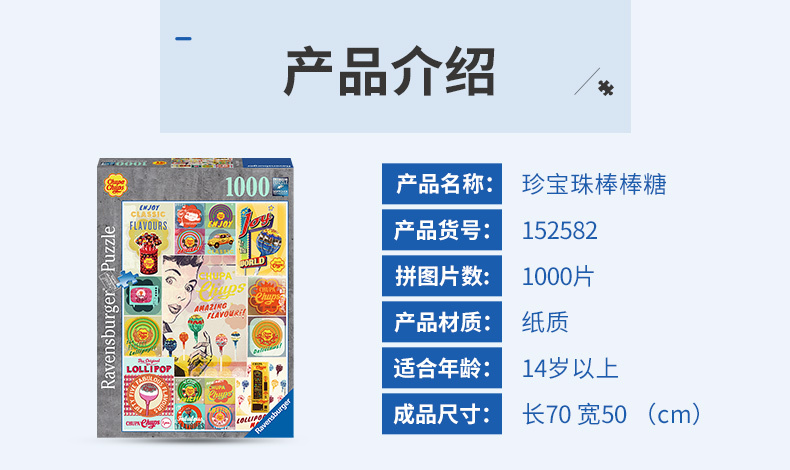Ravensburger拼图 平面拼图1000片珍宝珠棒棒糖RAVC152582