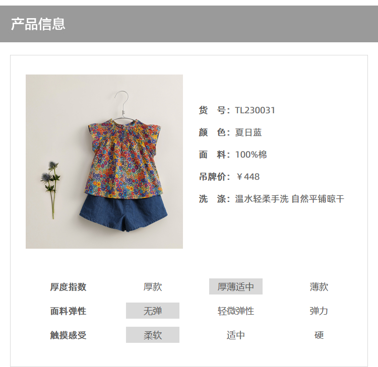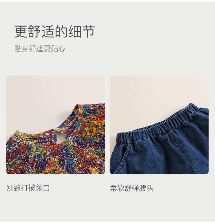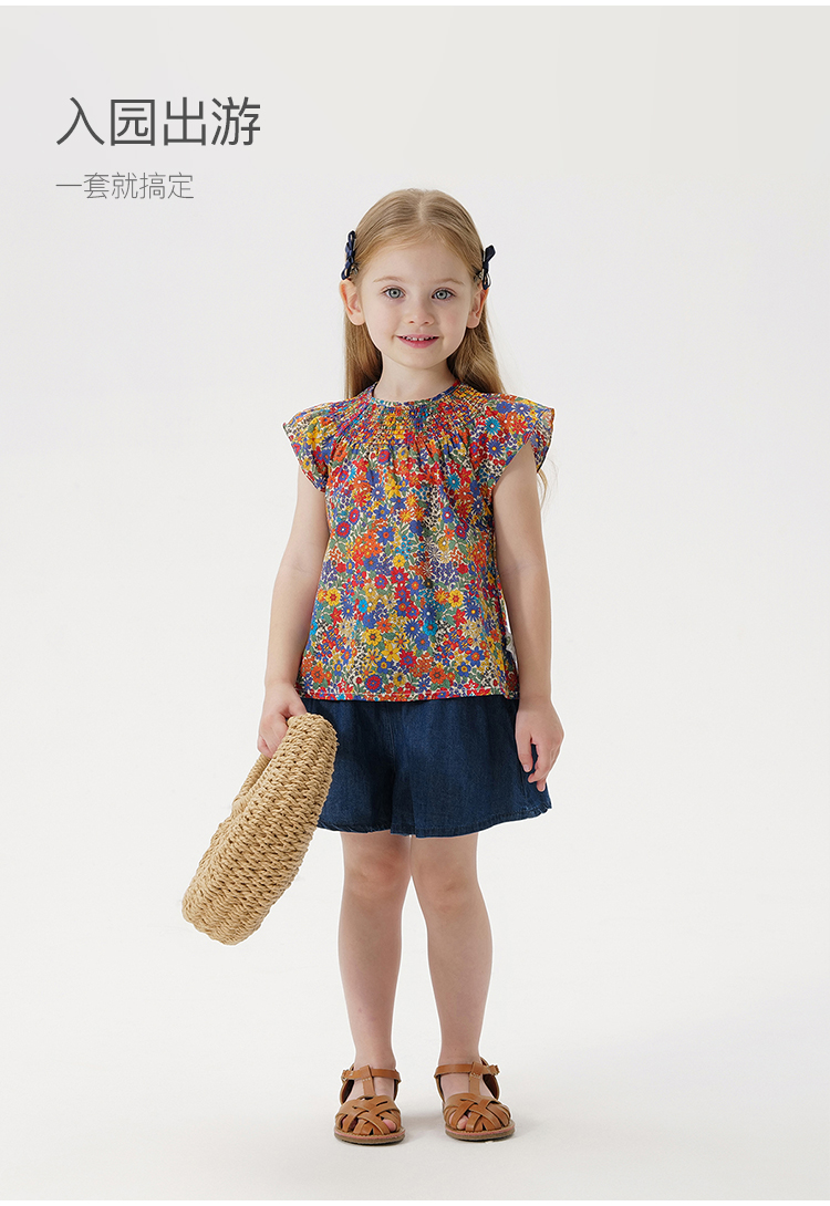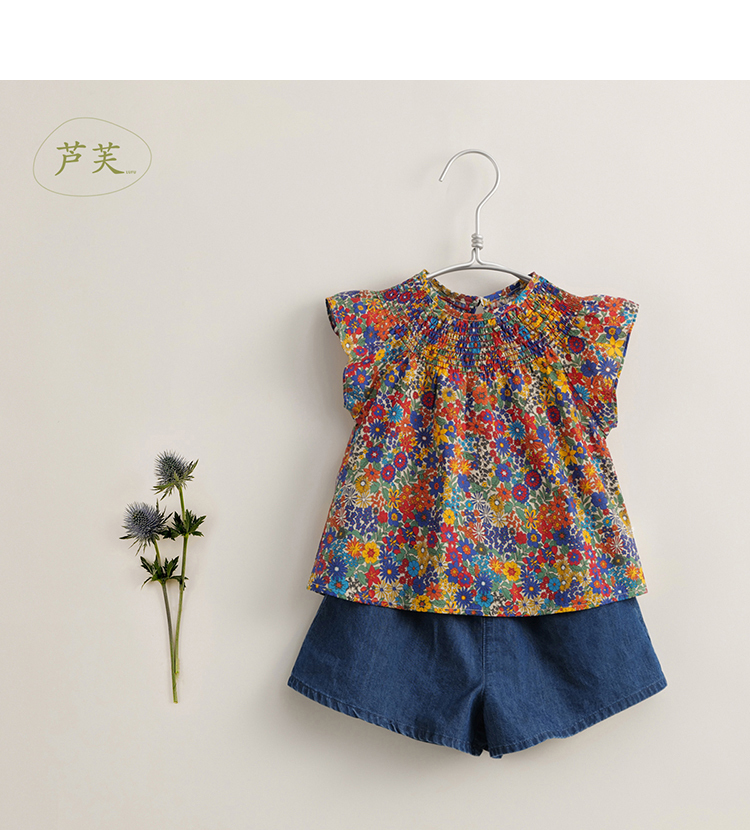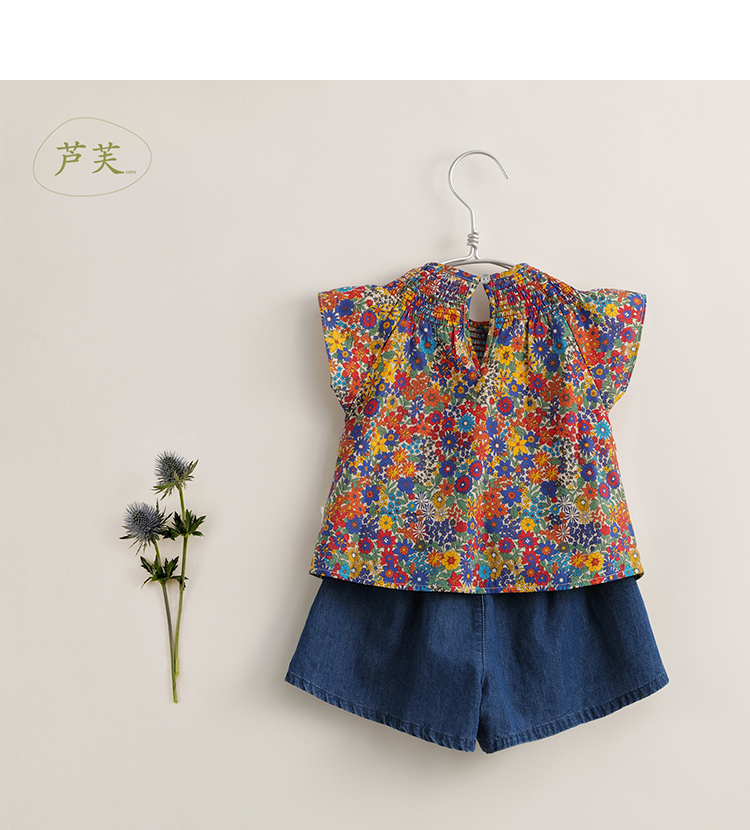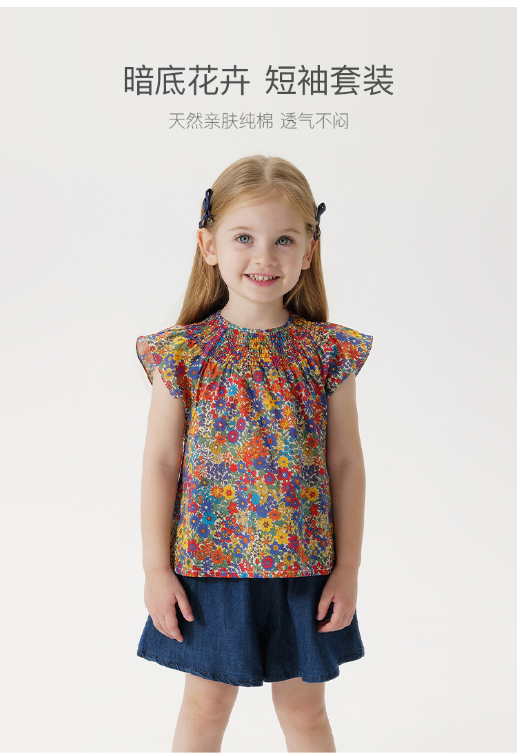 【马克珍妮 芦芙】夏装新款 女童盛夏花园纯棉短袖套装230031