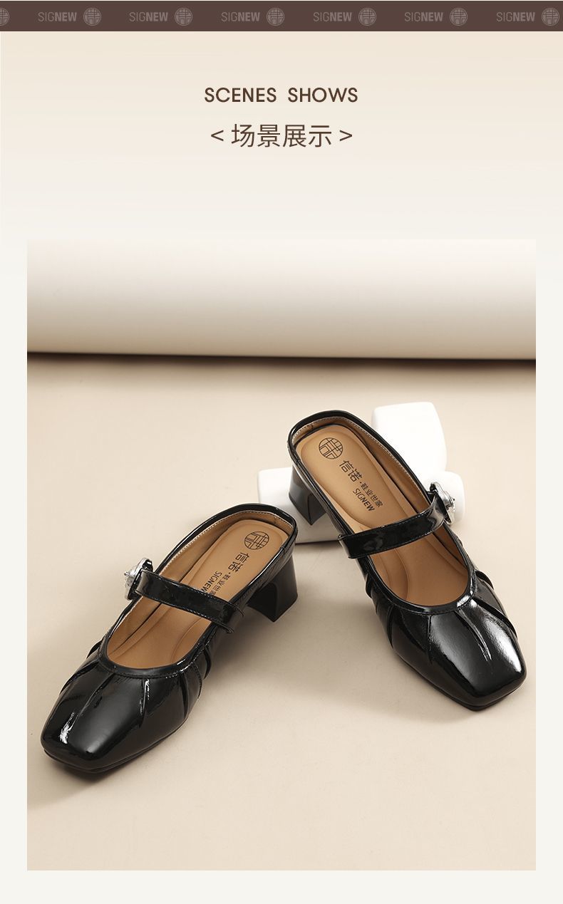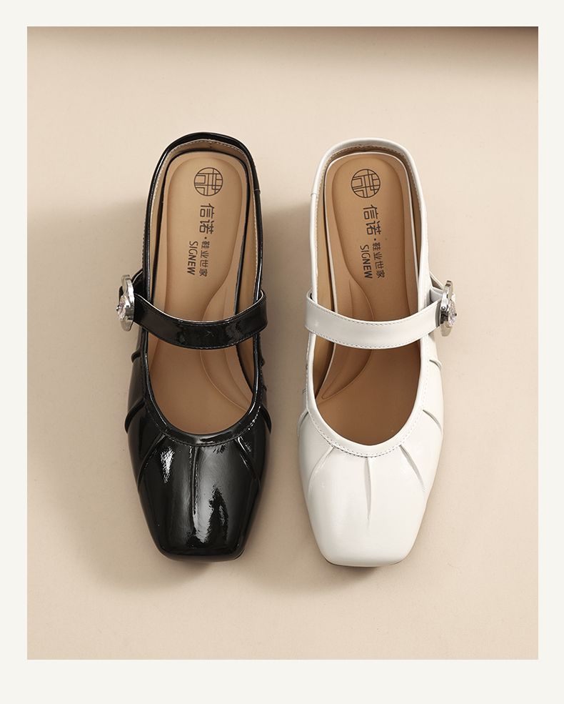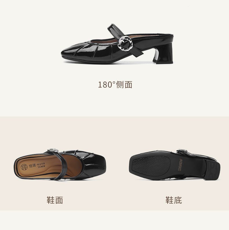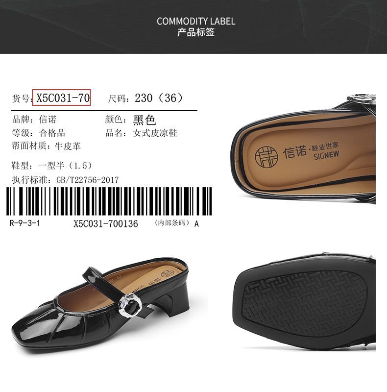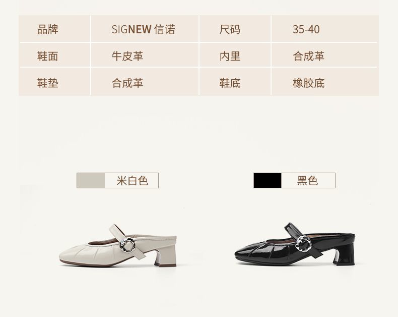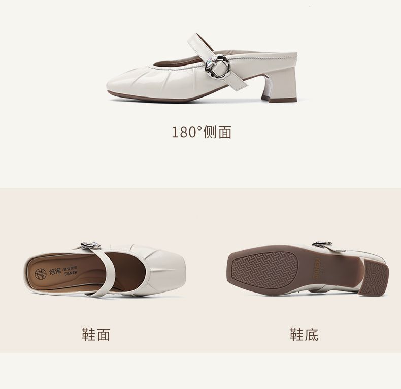 信诺真皮舒适包头半拖鞋女2025夏新款法式轻便一脚蹬玛丽珍凉拖鞋X5C031-70