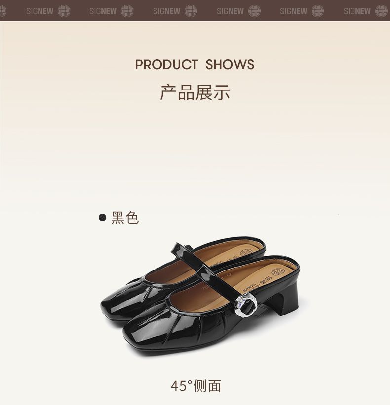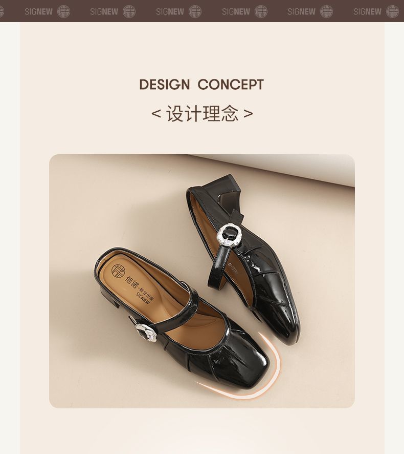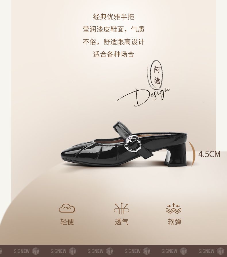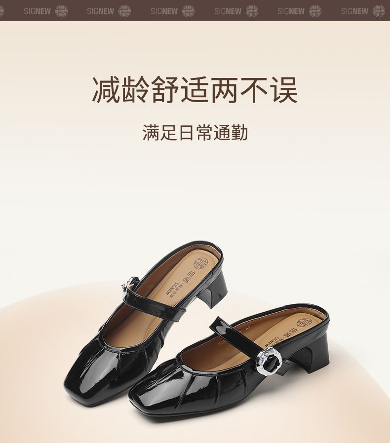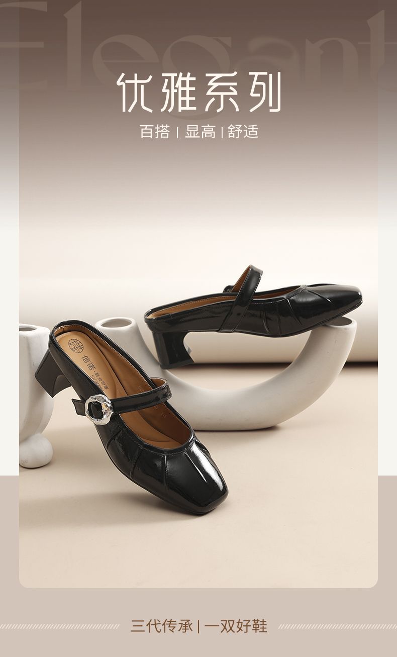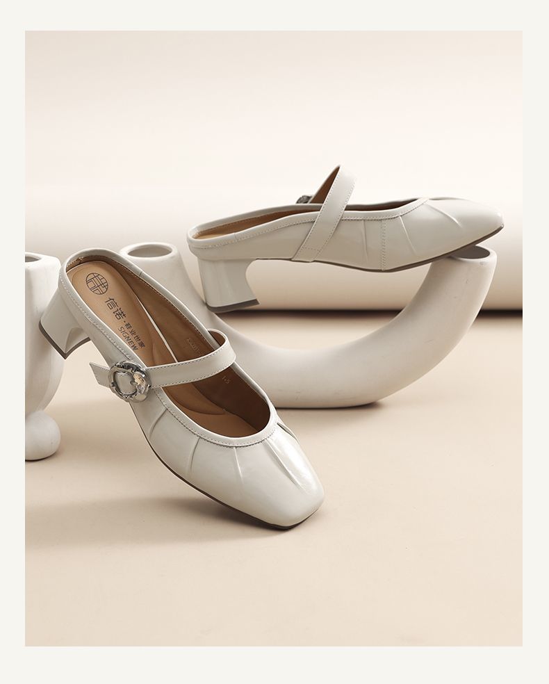 信诺真皮舒适包头半拖鞋女2025夏新款法式轻便一脚蹬玛丽珍凉拖鞋X5C031-70