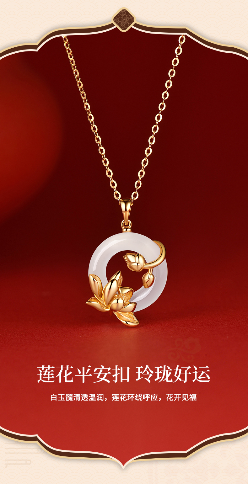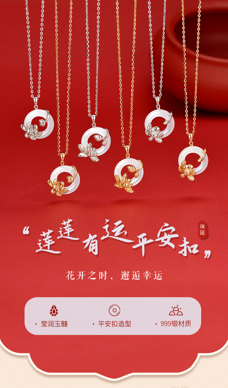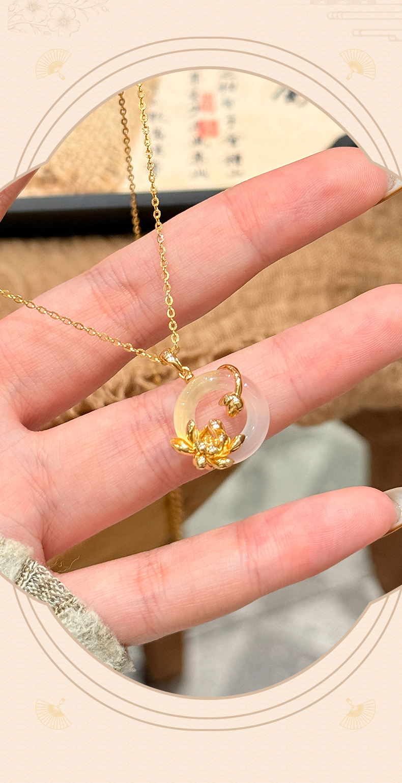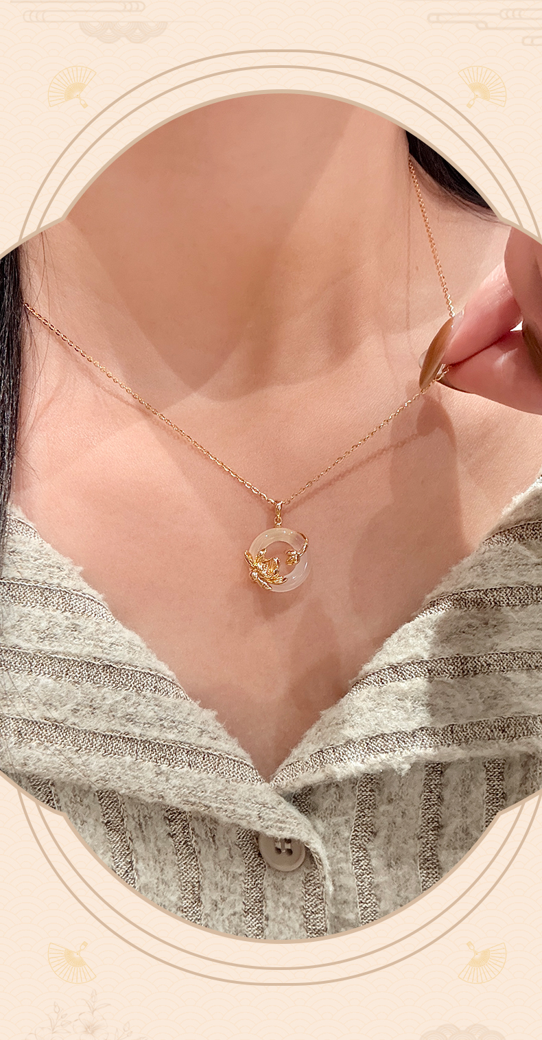卡蒂罗KADER 好运莲莲平安扣 999足银新中式国风招财锁骨链双色可选 万事顺遂 小众轻奢表达爱意 玉髓 项链 女款