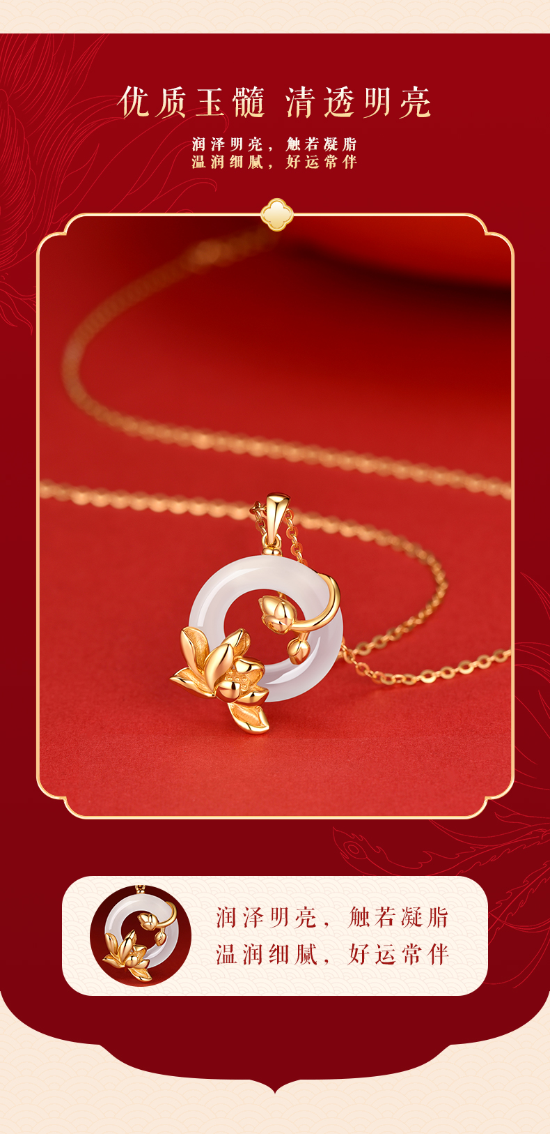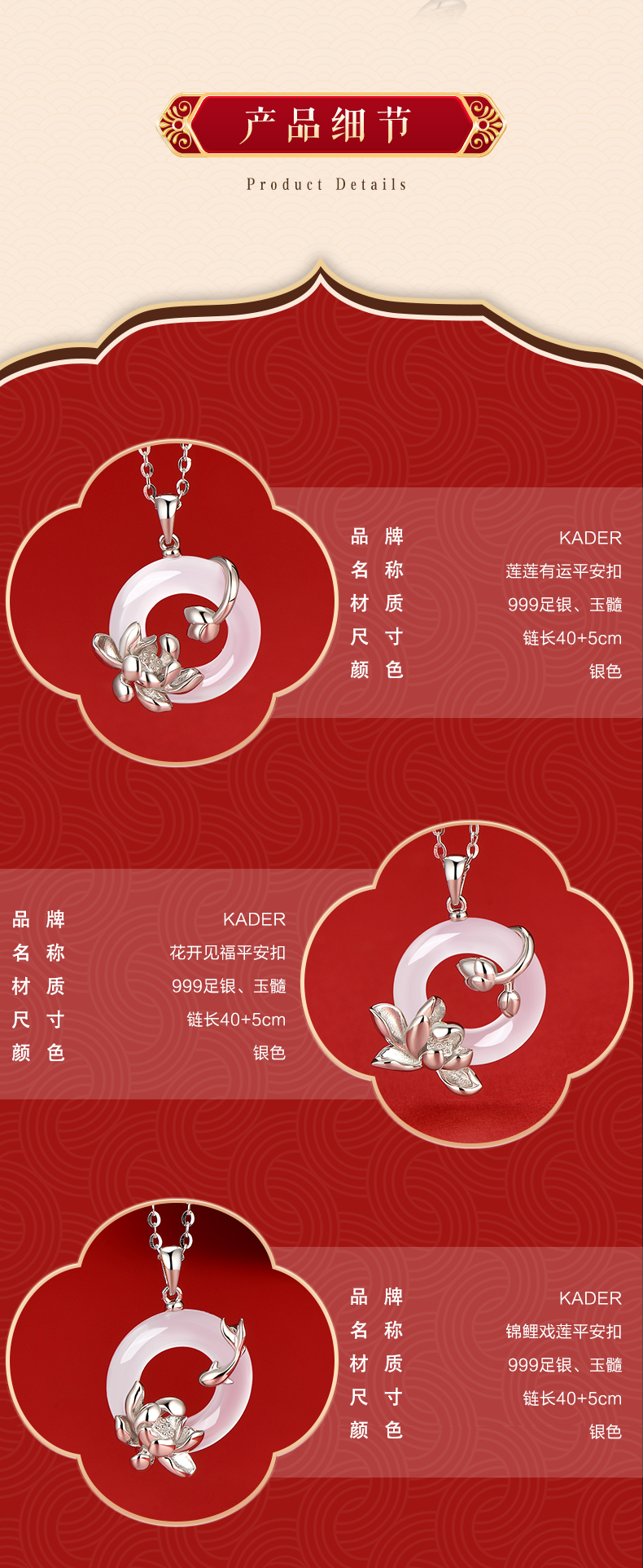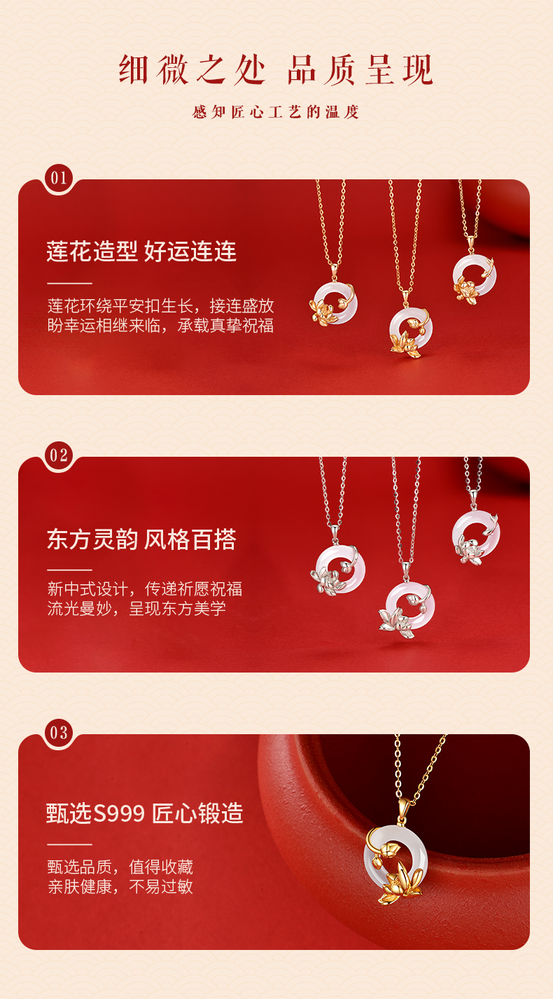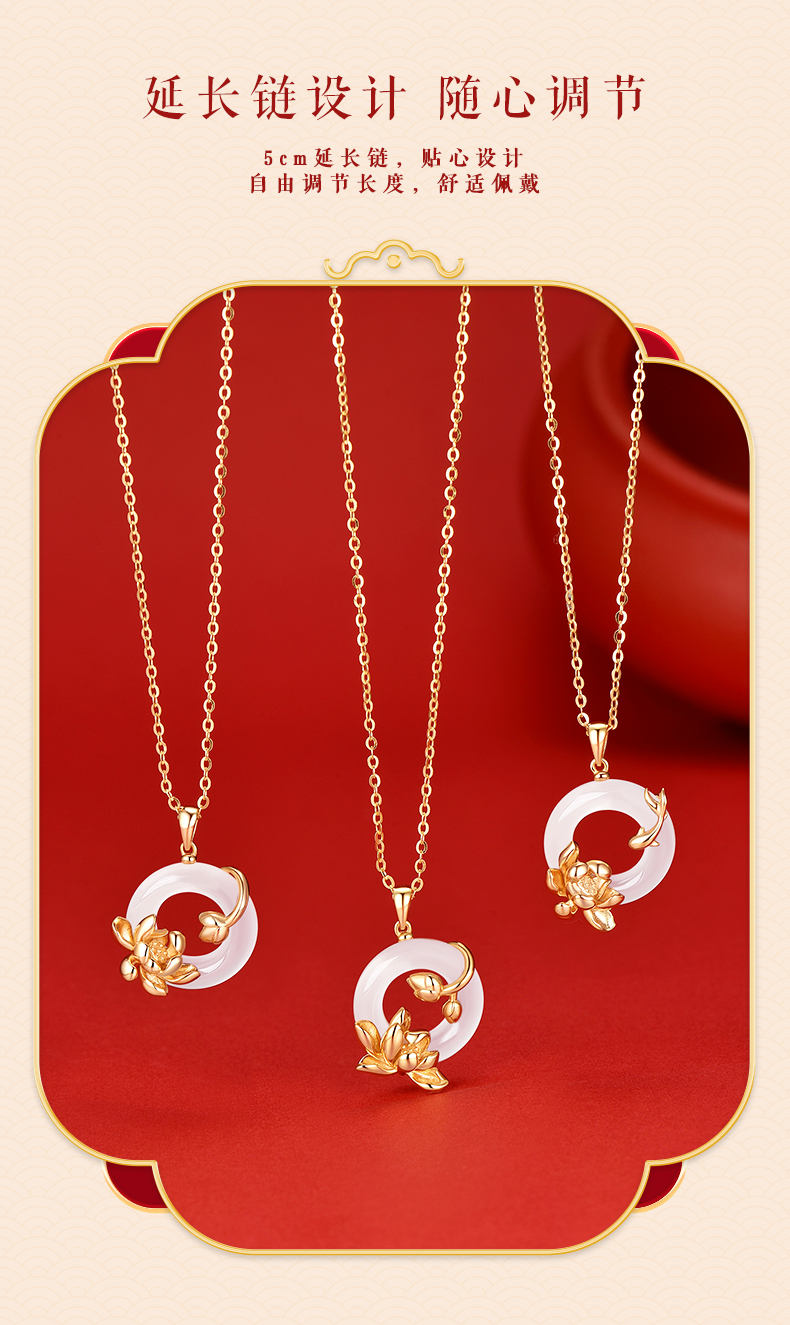 卡蒂罗KADER 好运莲莲平安扣 999足银新中式国风招财锁骨链双色可选 万事顺遂 小众轻奢表达爱意 玉髓 项链 女款