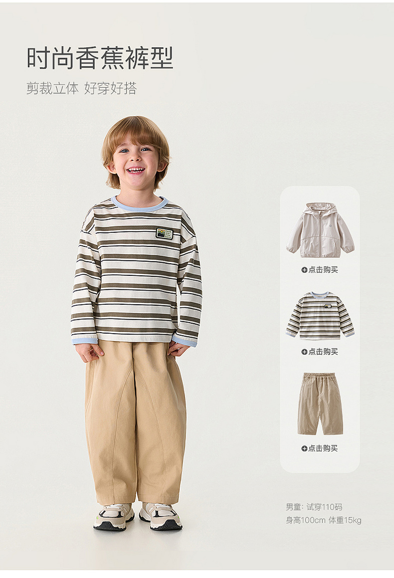 马克珍妮休闲松弛男童莱赛尔香蕉裤2026年夏装新款560356