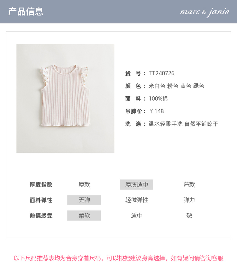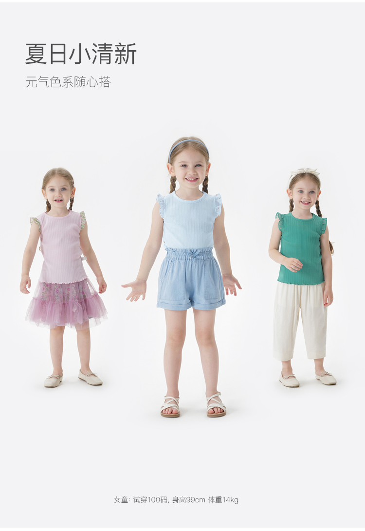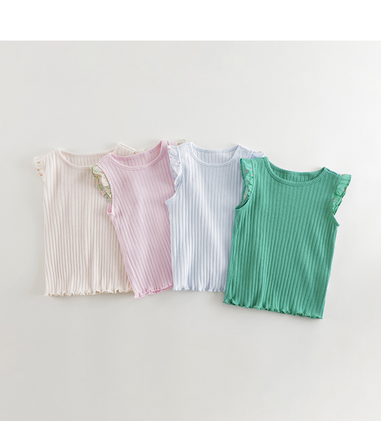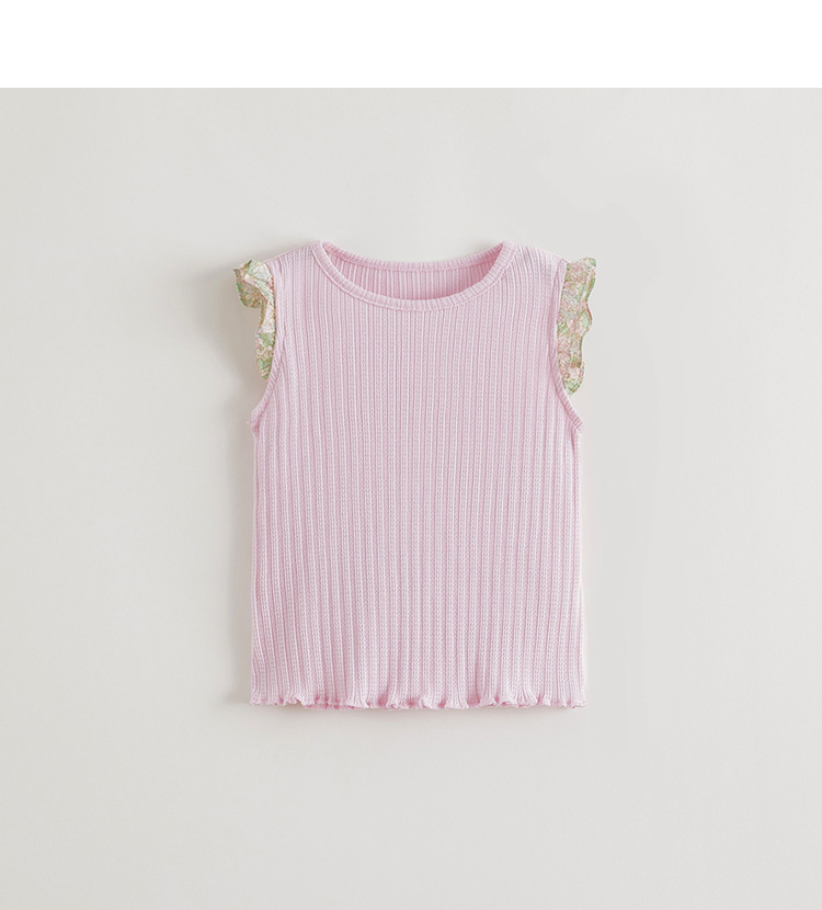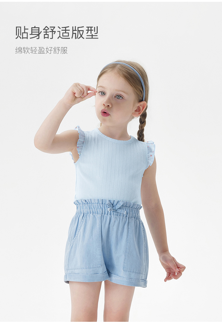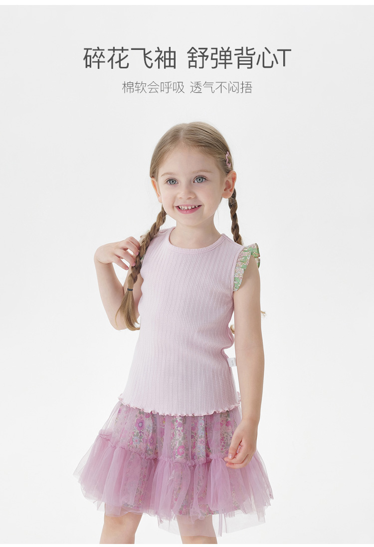 马克珍妮女童小飞袖弹力罗纹背心 儿童上衣2025年夏装新款550901
