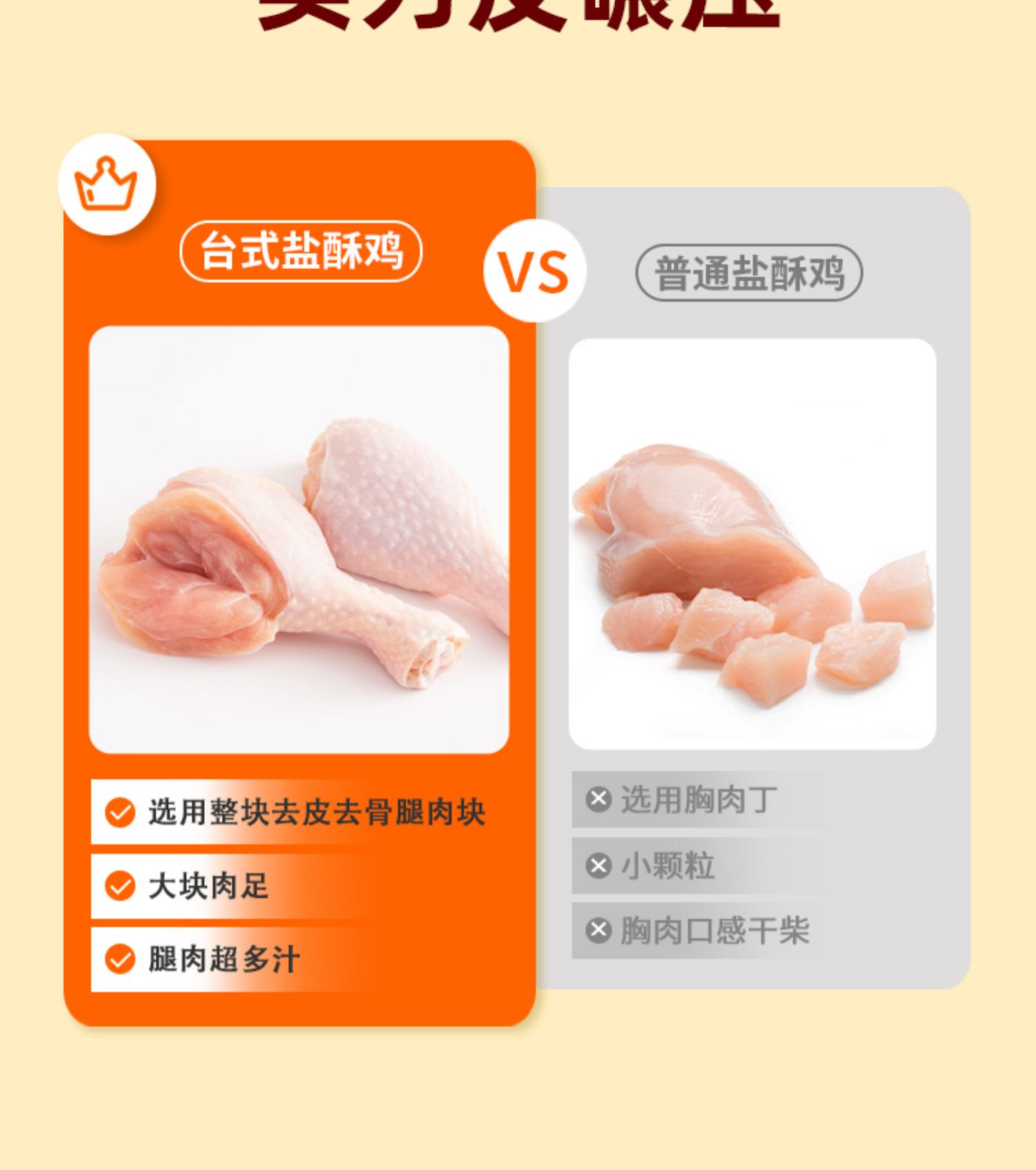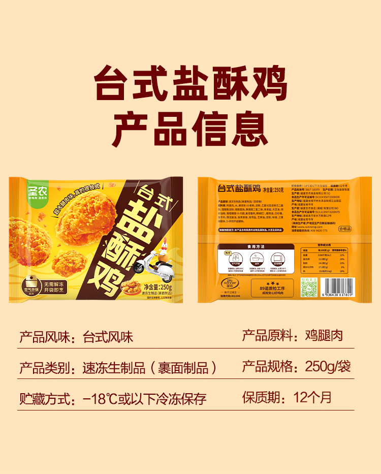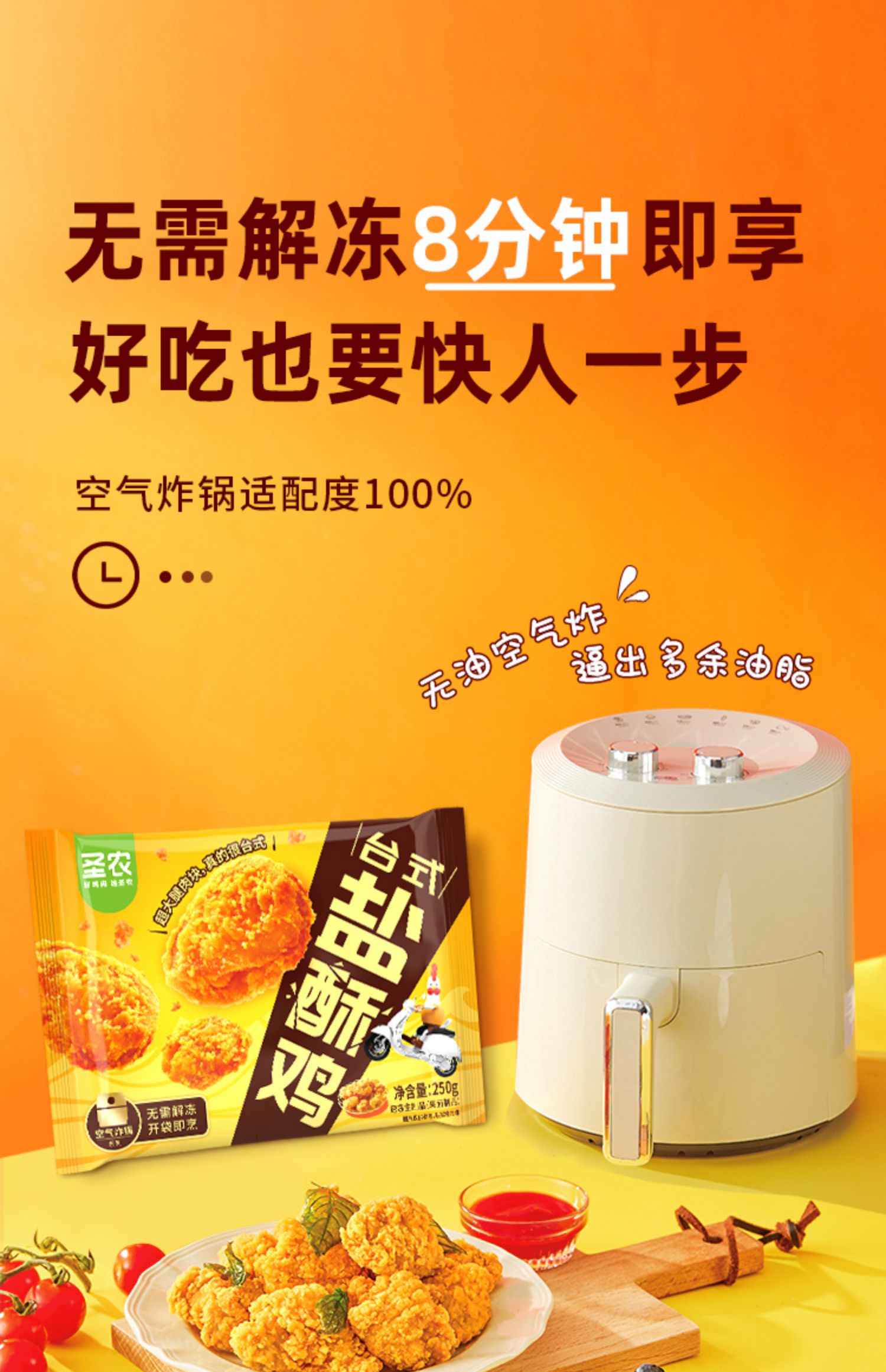圣农台式盐酥鸡爆汁劲脆鸡腿肉冷冻半成品休闲小食250g*6包