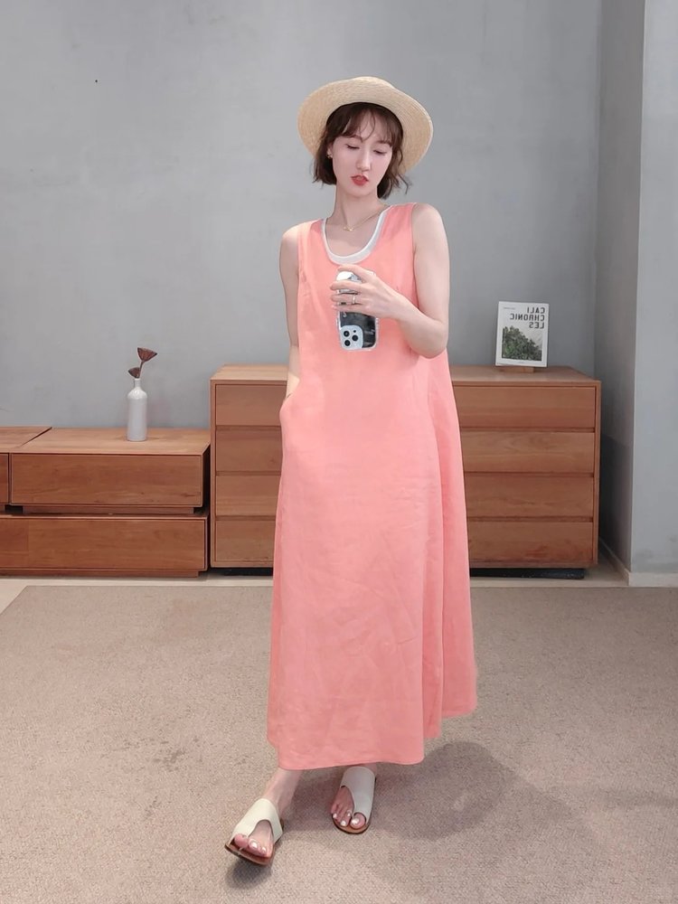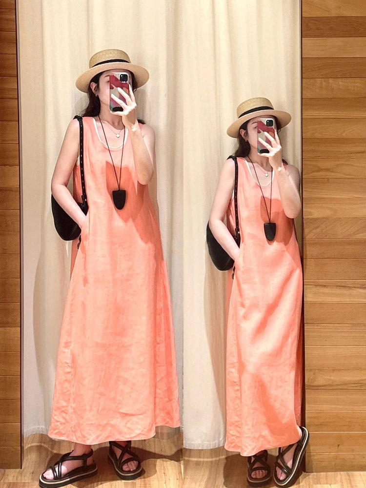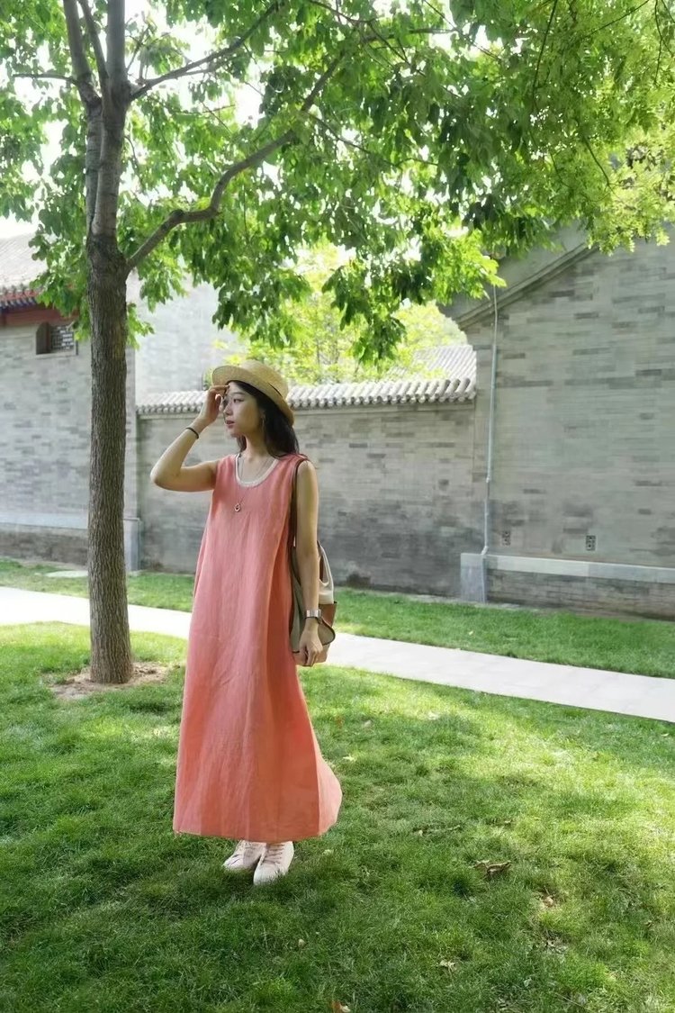 【小禾同款|三文鱼日出茧形裙|会呼吸的麻艺杰作】